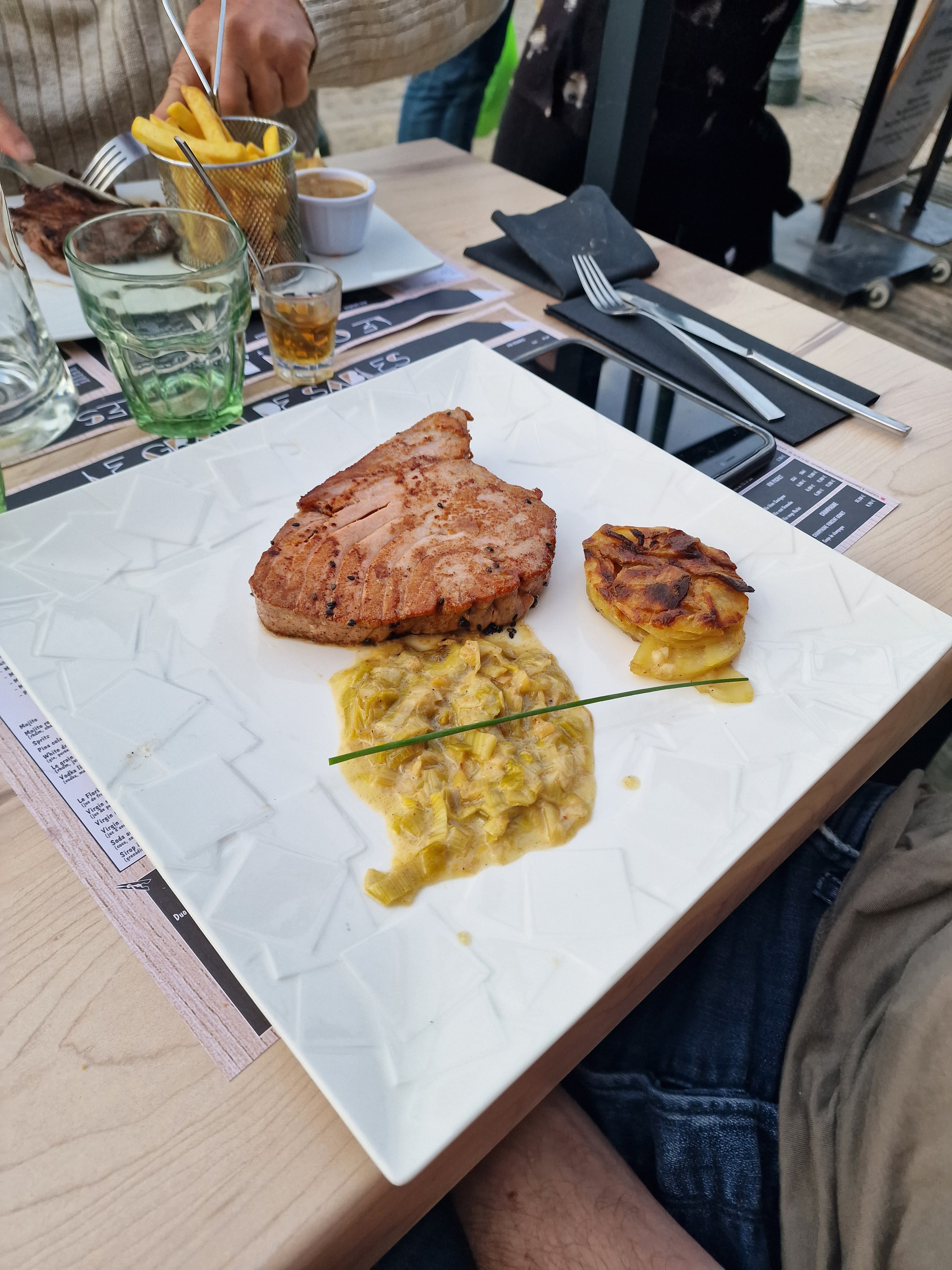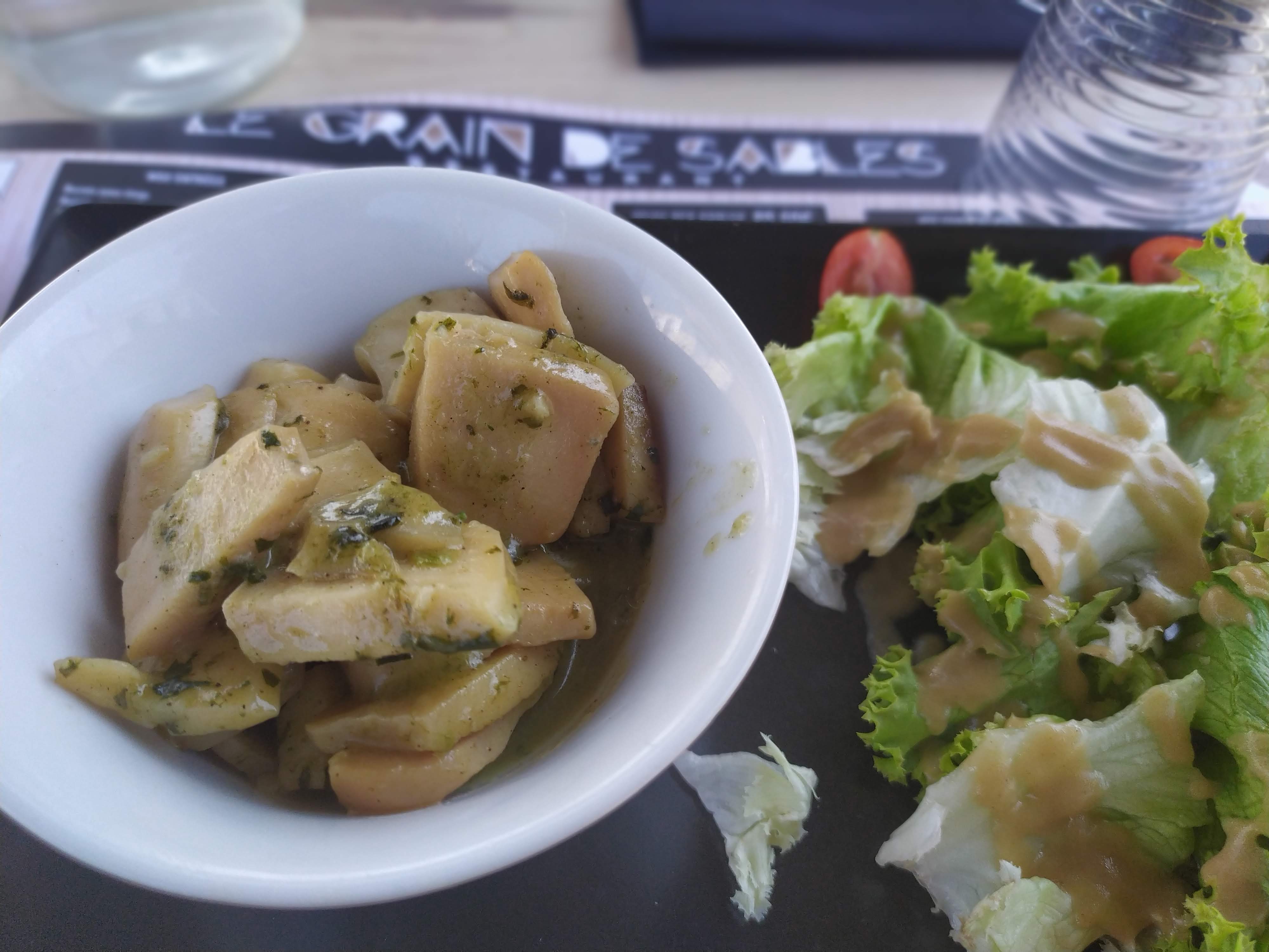 Je mets 2 étoiles pour le plat qui était quand même bon, cependant je trouve regrettable le manque de professionnalisme du personnel... Au moment de l'apéro, morceaux de verre dans les cacahouètes que j'ai bien senti sous la dent, pas une excuse de leur part, pas un désolé... C'est dommage a la veille d'une saison d'été... Beaucoup d'oubli au moment du service... Pas de couverts, ensuite pas de verre à eau il fallait tout réclamer. Après cette première expérience, je ne recommande pas... Cependant je recommande à l'enseigne de s'appeler plutôt Grain de verre que Grain de sable !