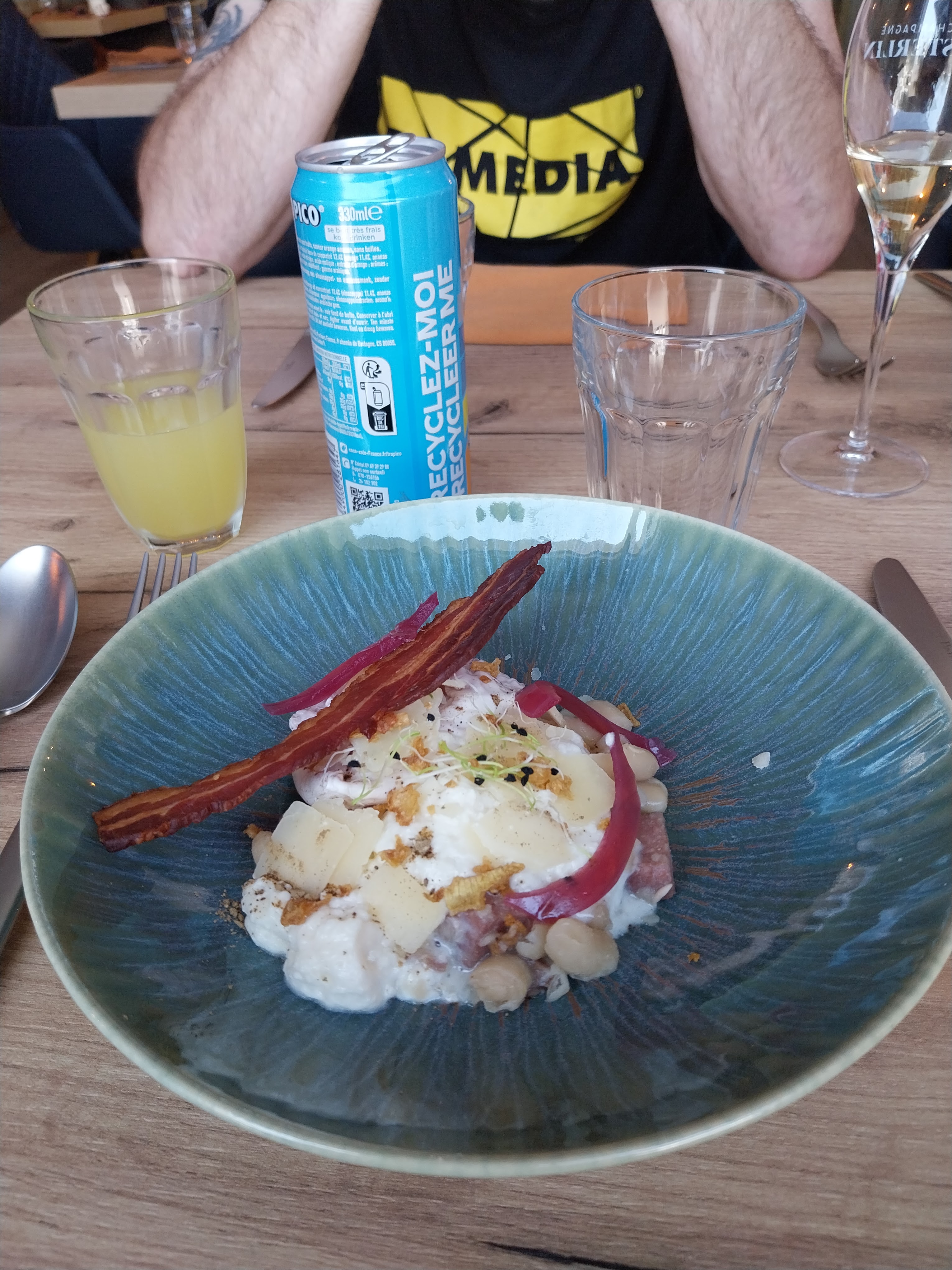 Déception 😢 Nous avons commandé du vin qui n’est jamais venu, sur 6, 4 ont mangé froid, le cochon de 7h n’en a que le nom, tout comme le baba au cognac (on cherche encore le cognac) et la tarte chocolat tonka idem… les plats sont insipides (tout comme le cognac et la fève de tonka, le cuisto ne sait plus ou il a rangé les épices)…. Passez votre chemin… Et courage aux serveuses qui n’y sont pour rien et sont charmantes