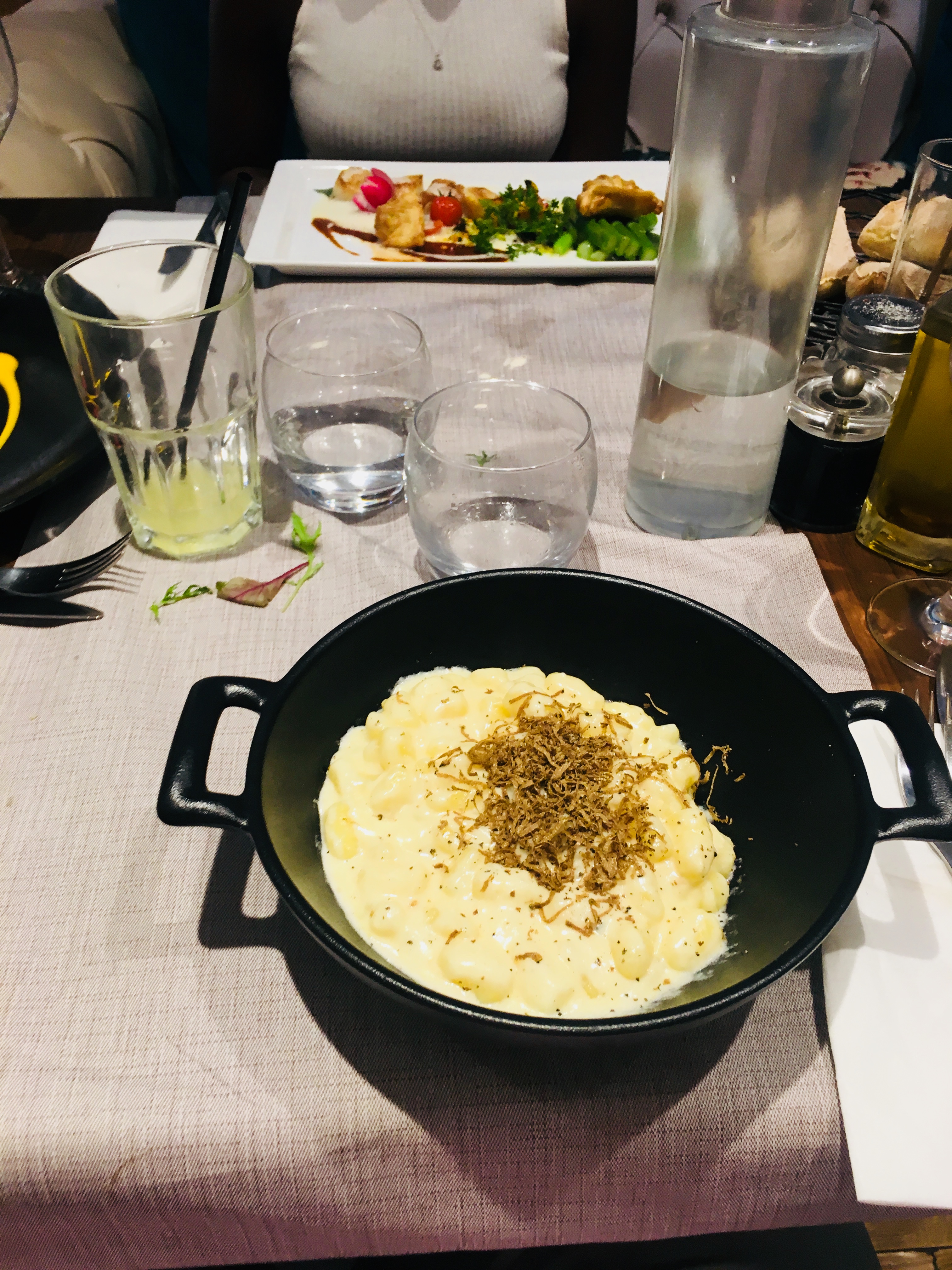 Le service est attentionné et la décoration est tendance. Malheureusement, la nourriture elle-même est médiocre. Les raviolis aux truffes étaient accompagnés d’un impressionnant monticule de truffes rasées mais ne pouvaient cacher le manque de saveur et les bords non cuits. Le risotto aux pétoncles était correct mais trop aldente et les saveurs n'étaient pas en harmonie. La nourriture était très riche mais manquait de saveur. Dans l'ensemble, ce n'était pas mal et j'ai apprécié l'ambiance, mais j'irais ailleurs si le goût de la nourriture de qualité est roi.