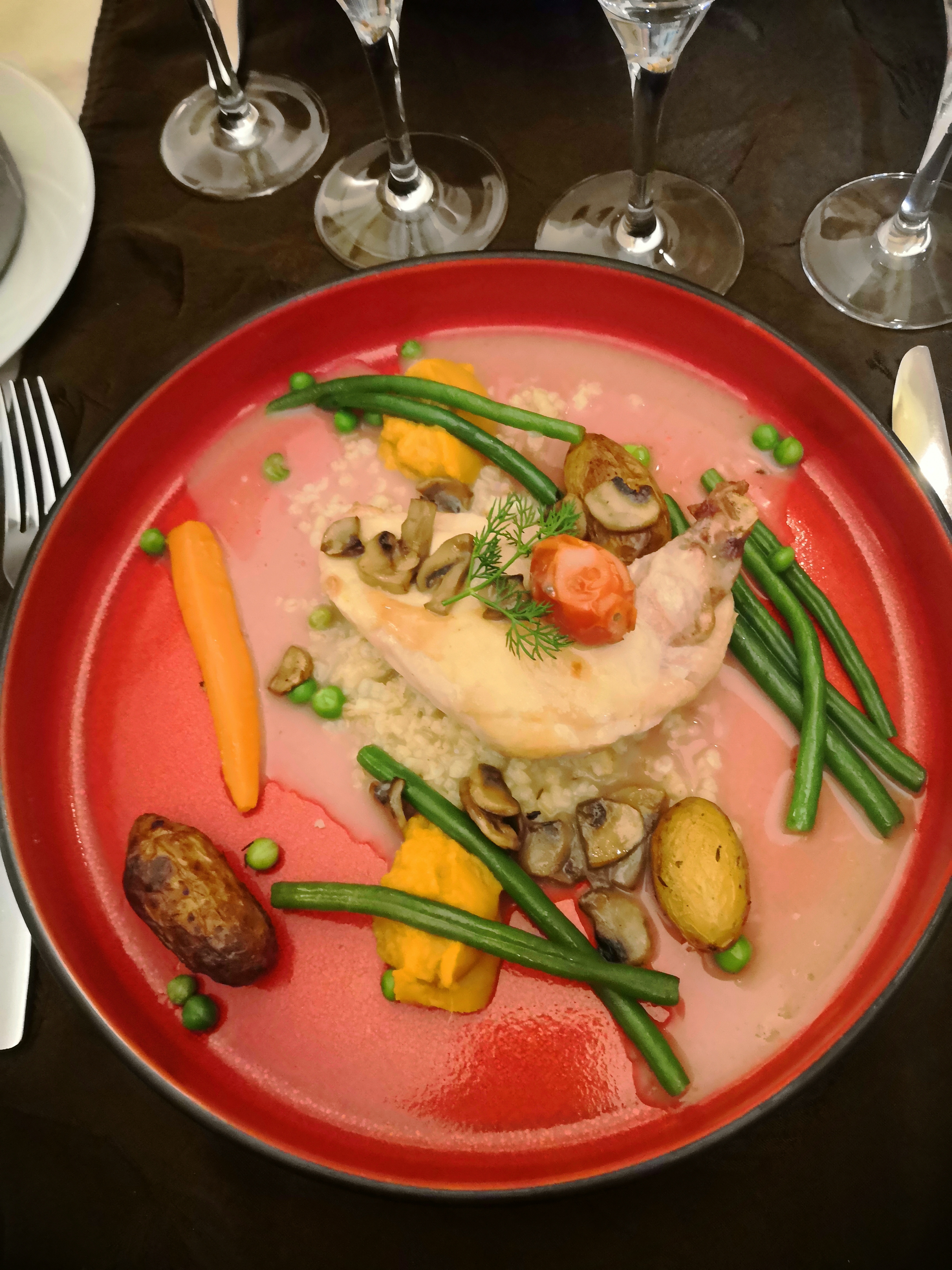 Rien à redire,tout est parfait et surtout très très bon. .Digne d un grand chef. Le poulet au vin jaune et ses morilles ,un.vrai régale.