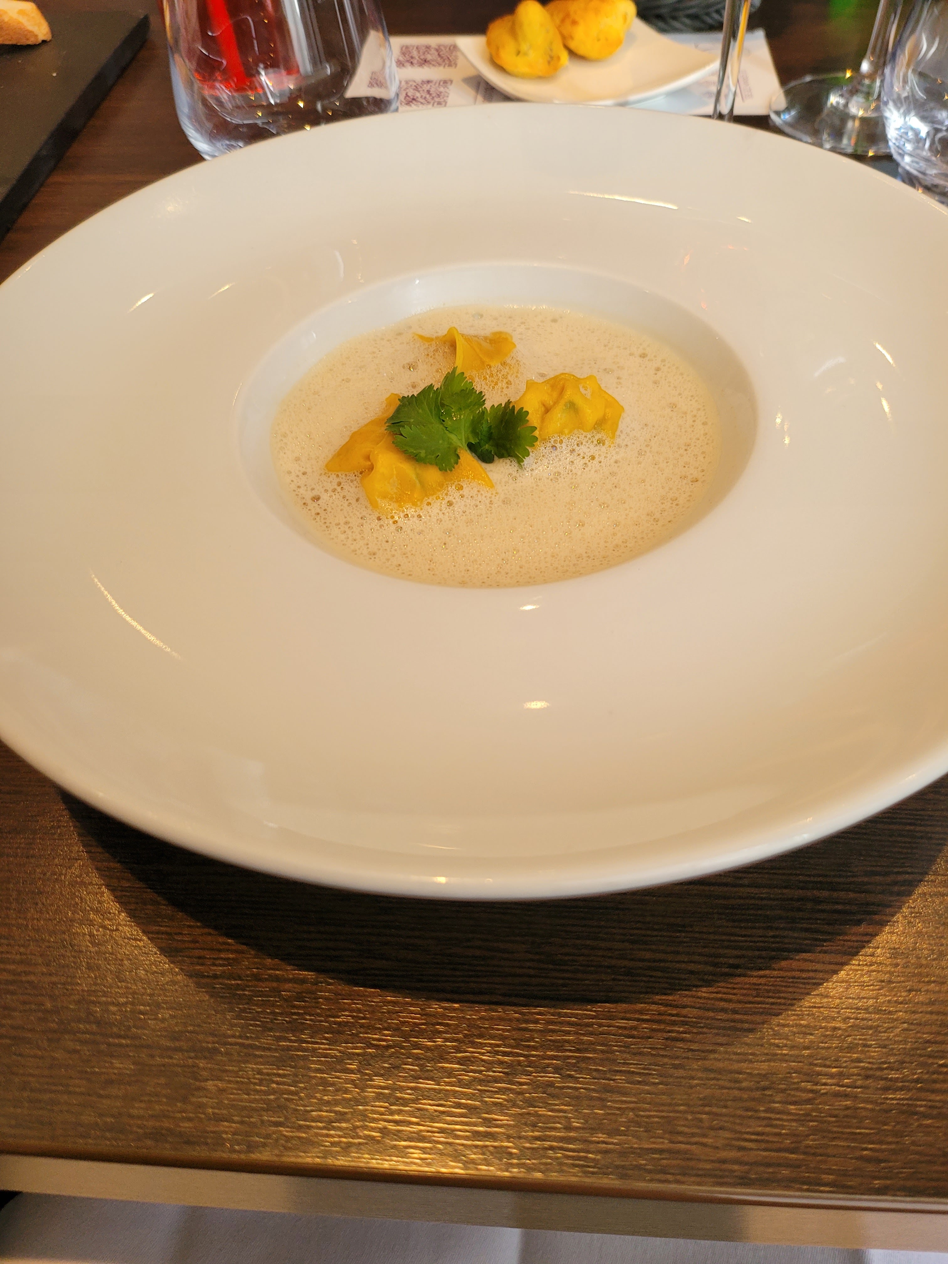Nous avons passé un tres agréable moment. L'accueil etait parfait et les plats (foie gras et risotto) un delice. Un gros plus pour le dessert de ravioli d'agrumes. Je recommande vivement