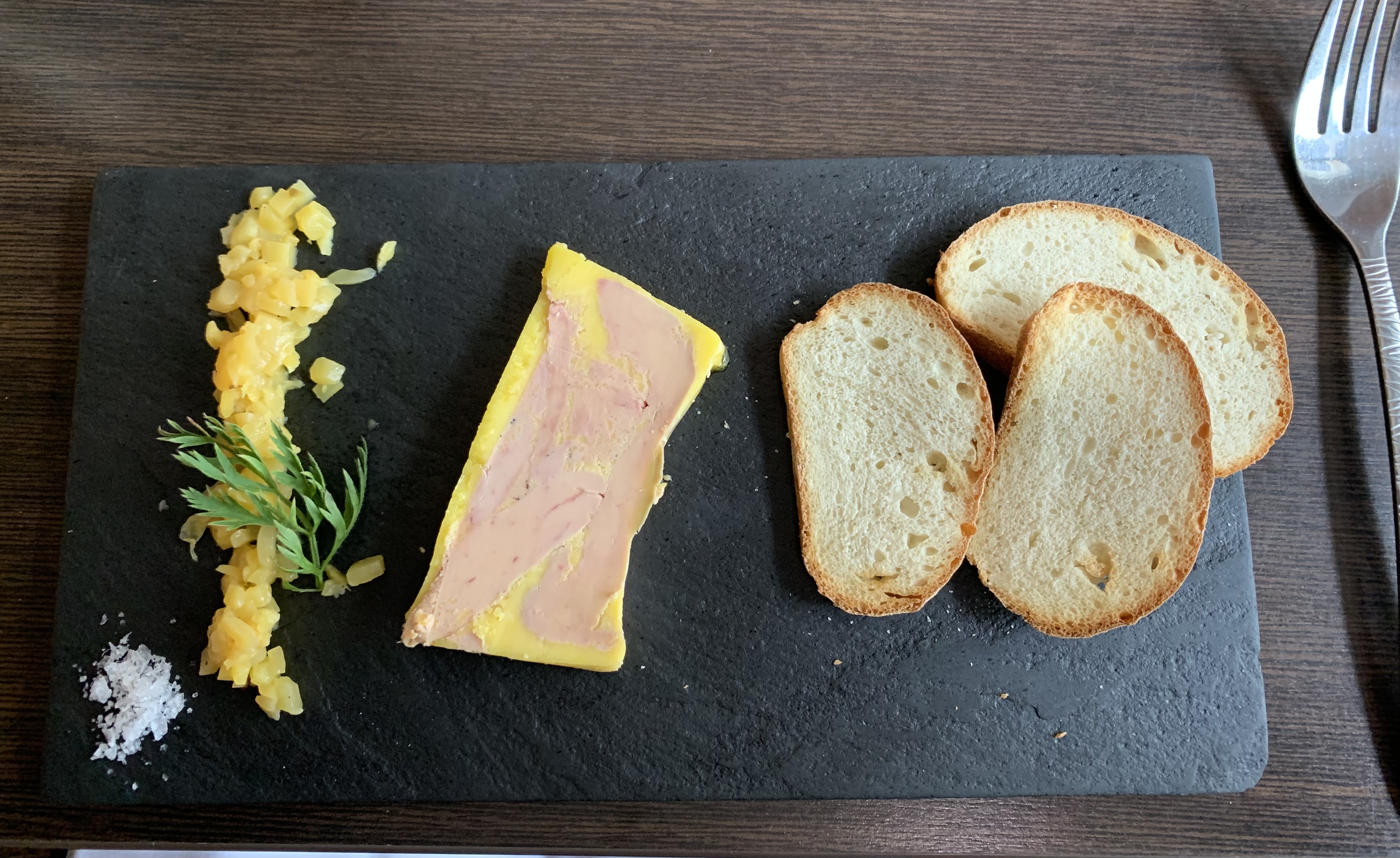 Fromages à la carte 8 € 3 minuscules morceaux!..surprise salade accompagnement foie gras 2€ par personne 4 petites feuilles dans un caquelon note un peu salé ne pas aller pour déjeuner
