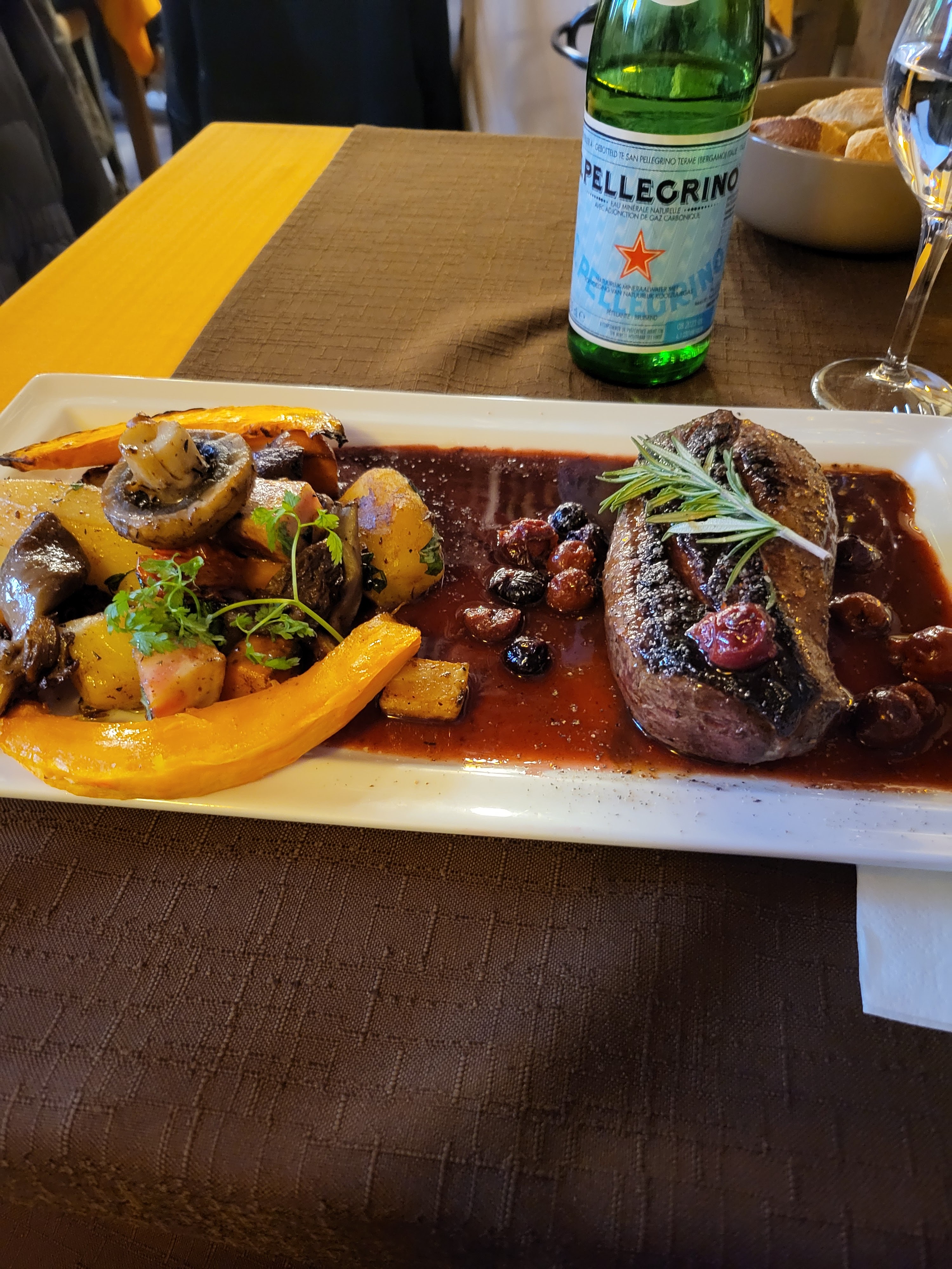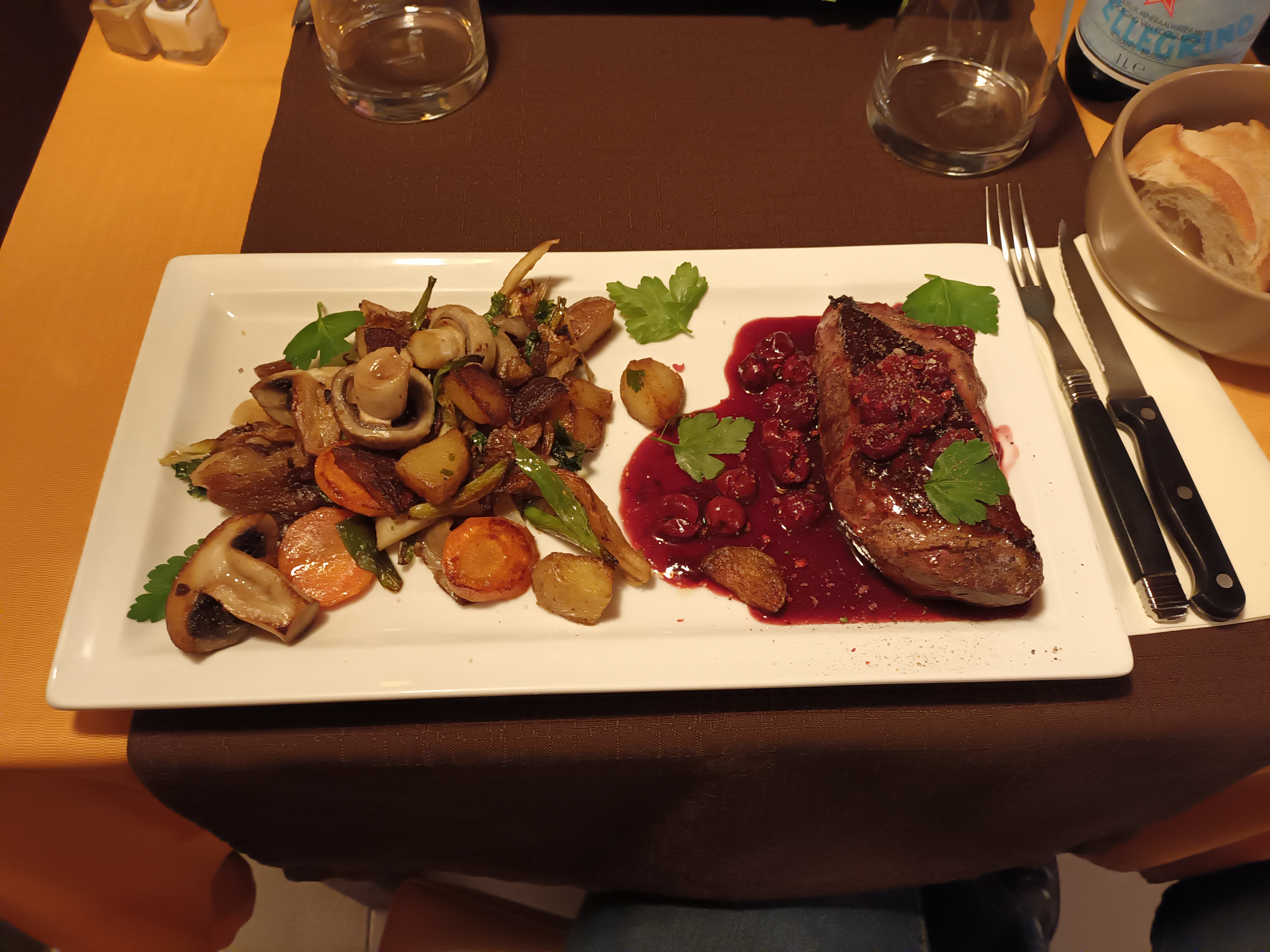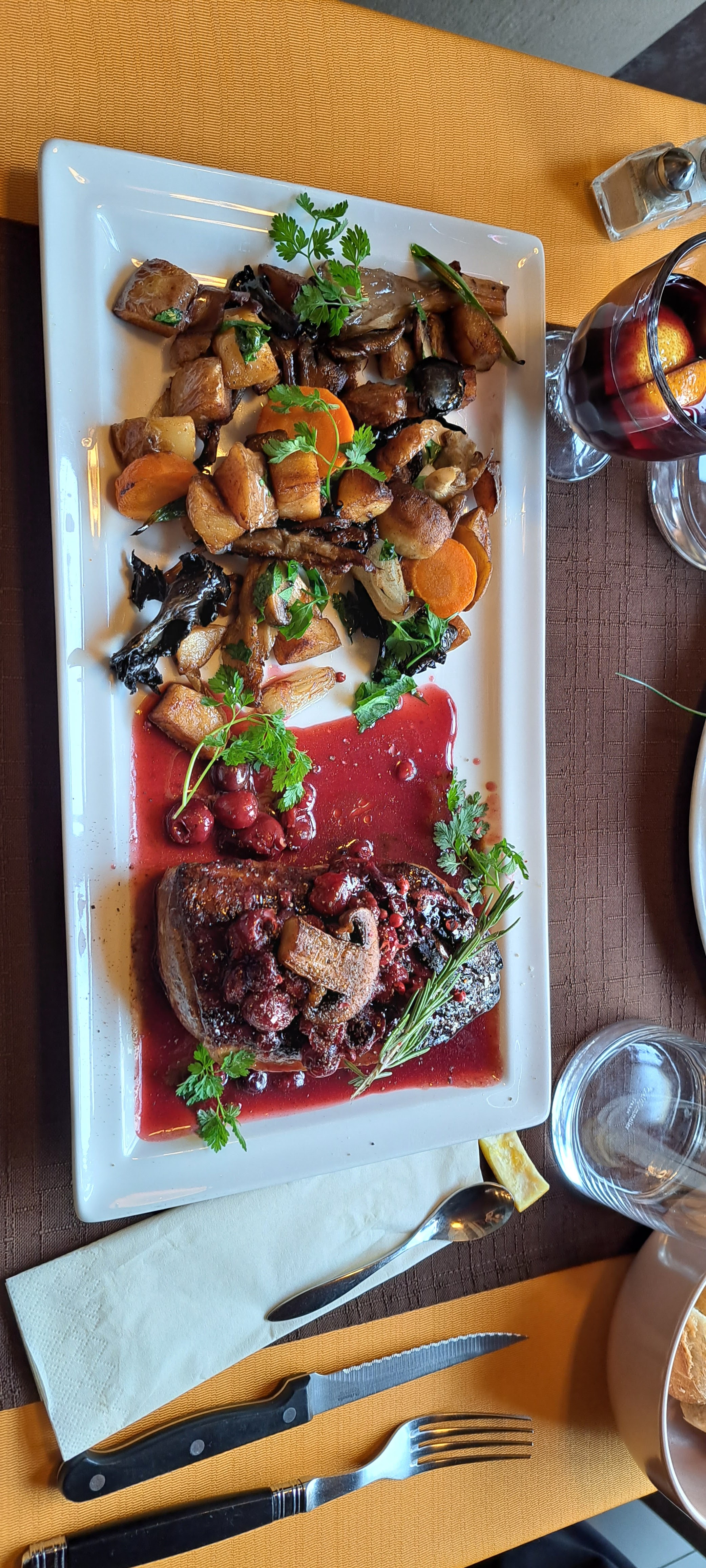 Magret de canard un délice. Et serveuse super agréable grâce à qui monsieur a laché son téléphone 😉 à refaire pour essayer d'autres plats!
