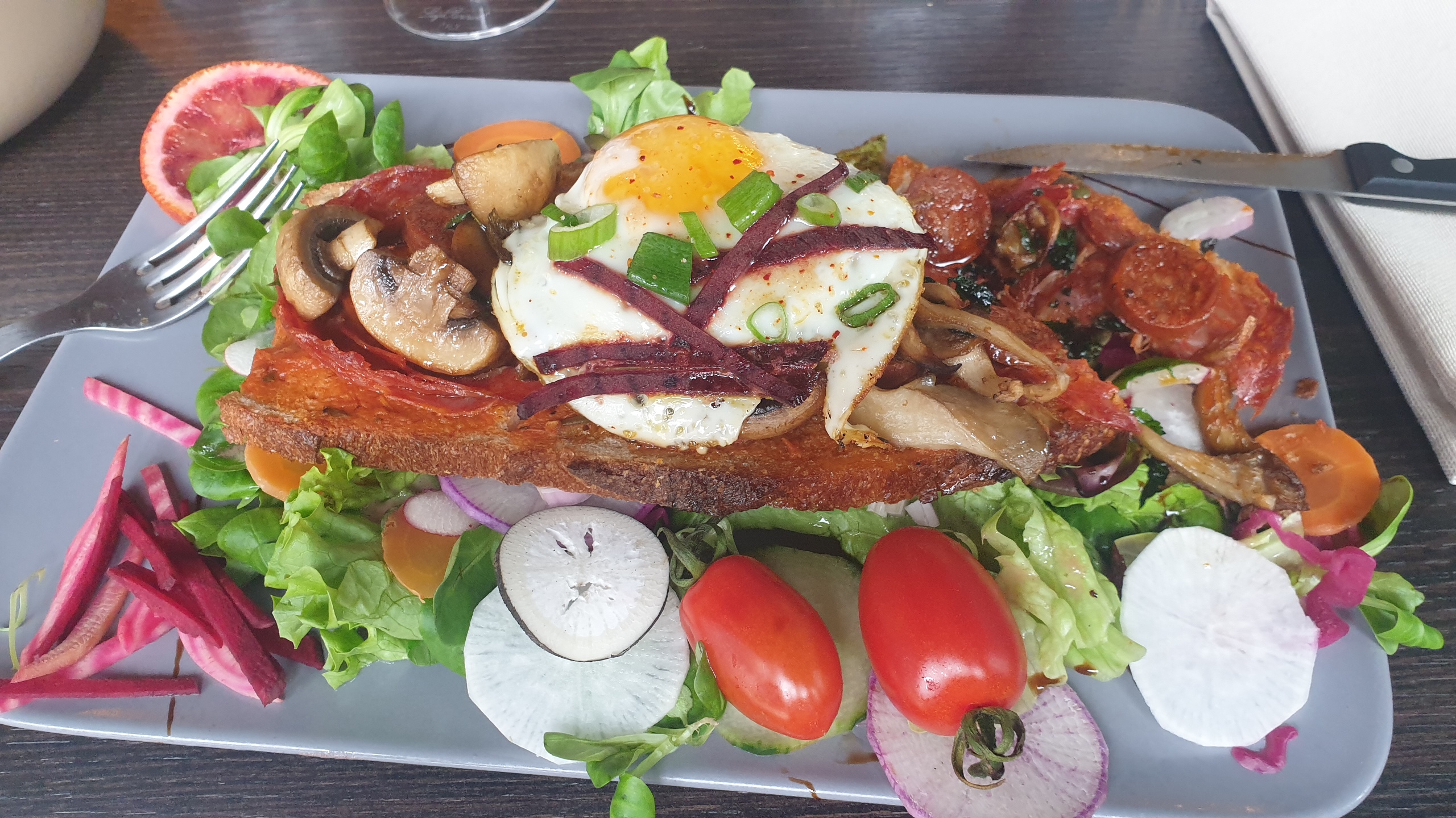 Halte gourmande à tester. Très belle terrasse, choix de vins intéressant et beaucoup de légumes dans les assiettes. Un plat chaud végétarien en plus des tartines serait un vrai plus.