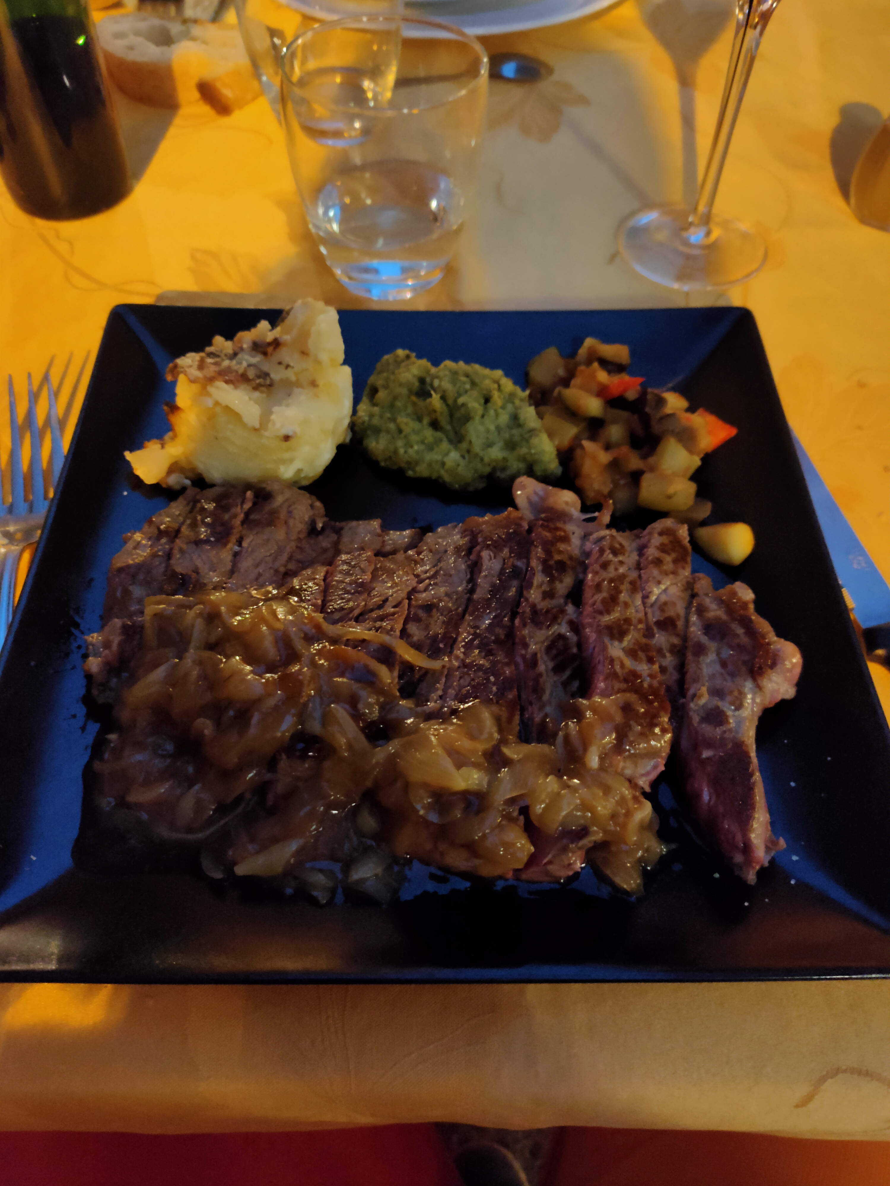 Une très bonne viande mais une entrée et un dessert dans la moyenne. Un bon moment quand même.