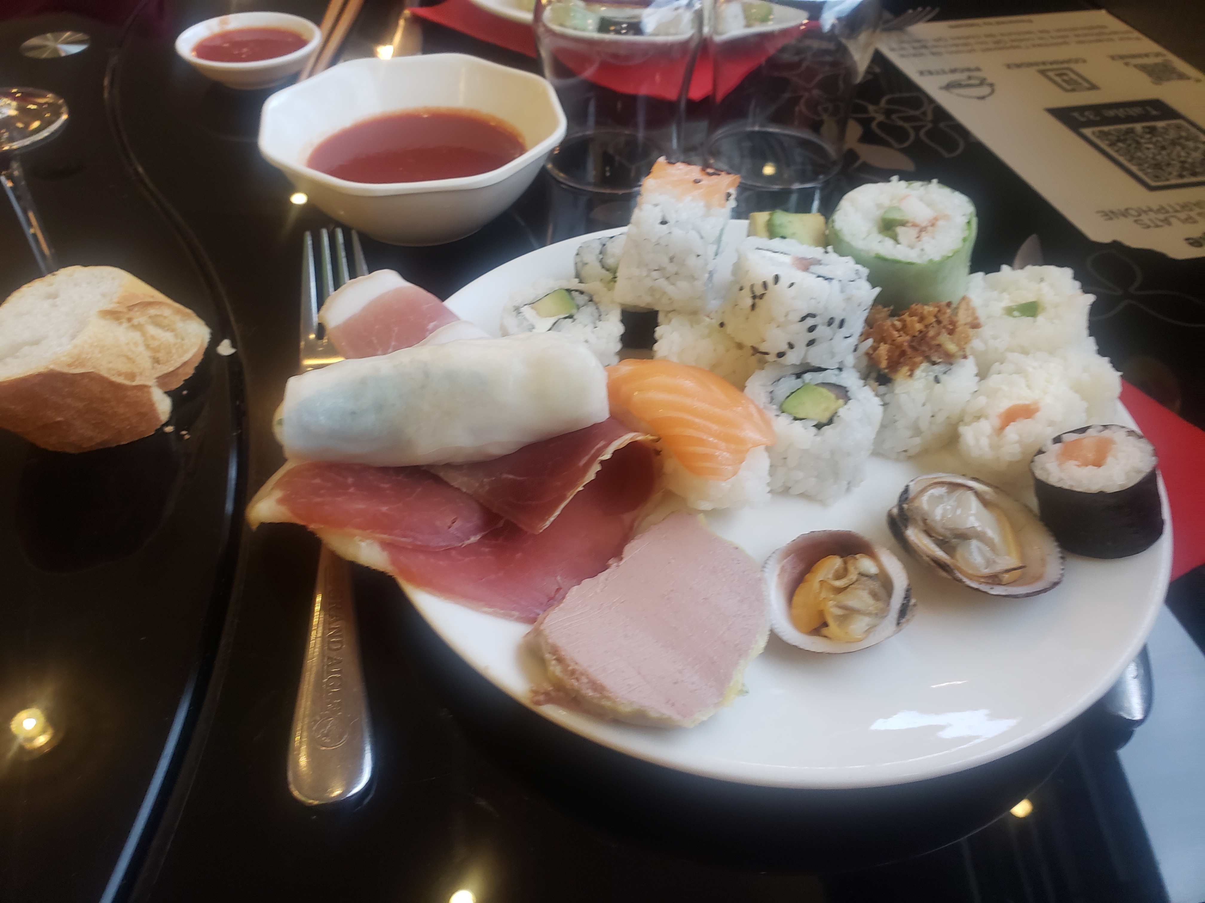 Nous sommes arrivés à 20h40, il n'y avait quasiment plus rien à manger et pas remplacé. Les moules n'avaient aucun goût. Les sushis et maquis non plus. Nous allons d'habitude au Wafu, nous avons voulu changer, ça aura été la seule et unique fois car nous sommes vraiment déçus.