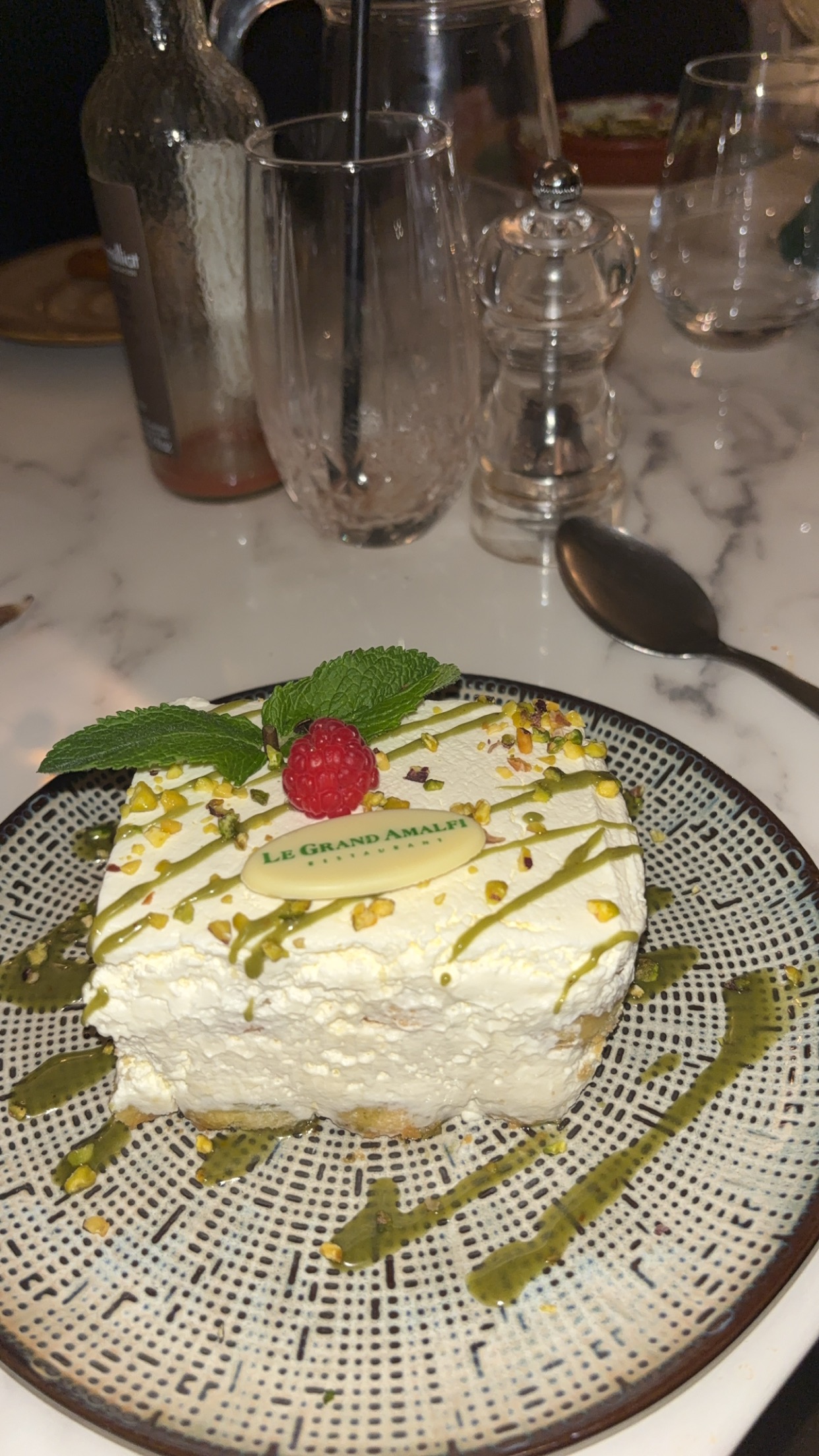Que dire à part que j’ai été absolument enchanté par mon expérience. Le plat de pâtes à la pistache était tout simplement un délice, avec une saveur riche et délicate. Un plat que j’ai dévoré comme en témoigne mes photos. Le dessert de crème brûlée était tout aussi remarquable, avec une texture incroyablement onctueuse qui fondait littéralement en bouche. J’aimerais vous parler également du service impeccable et de l'ambiance chaleureuse et accueillante. Merci à l’équipe pour ça j’ai passé une soirée agréable. Je recommande vivement Le Grand Amalfi !!