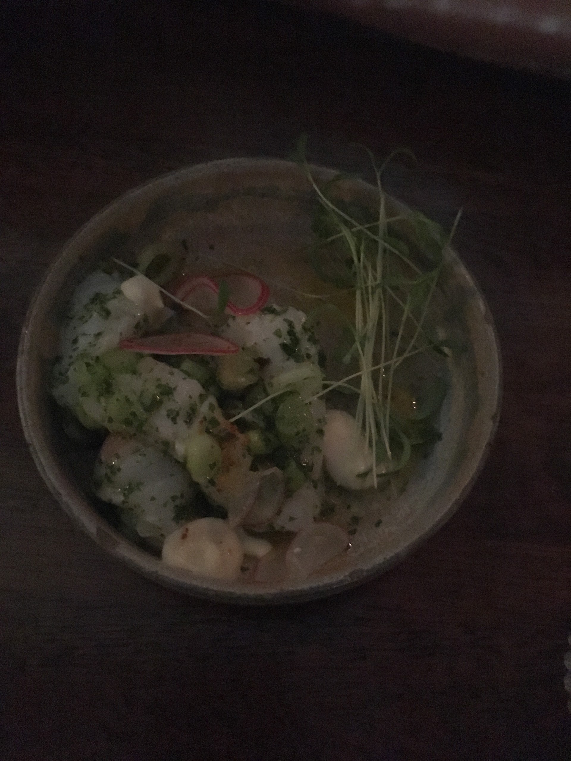 Incroyable. Les points forts étaient sans aucun doute les frites de pois chiches et le ceviche de thon blanc aux pêches, mais tout était tellement bon