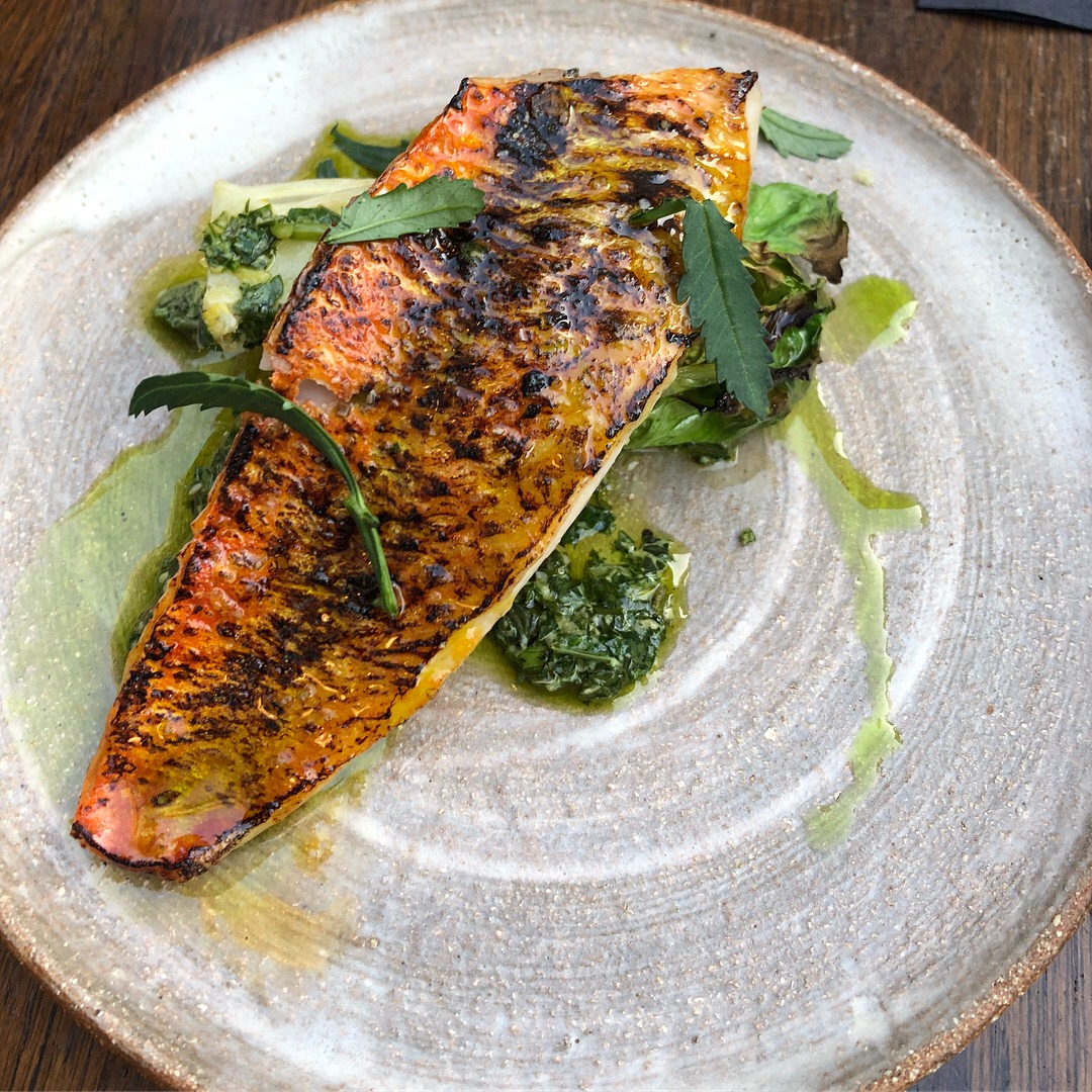 Un pur régal ! On commande sans trop savoir à quoi s'attendre une tête de Saint-Pierre. Arrivent une assiette et deux paires de gants. Nous dévorons la poiscaille sous les yeux ébahis du barman qui nous dit qu'une sériole a encore sa tête en cuisine. Elle finit dans notre assiette quelques minutes plus tard ! Entre le céleri rave au parmesan et la langue d'agneau le ragoût de poulpe et la betterave rôtie, nous sommes rassasiés... mais pas assez pour ne pas finir en beauté sur un sorbet rhubarbe plus frais que nature.