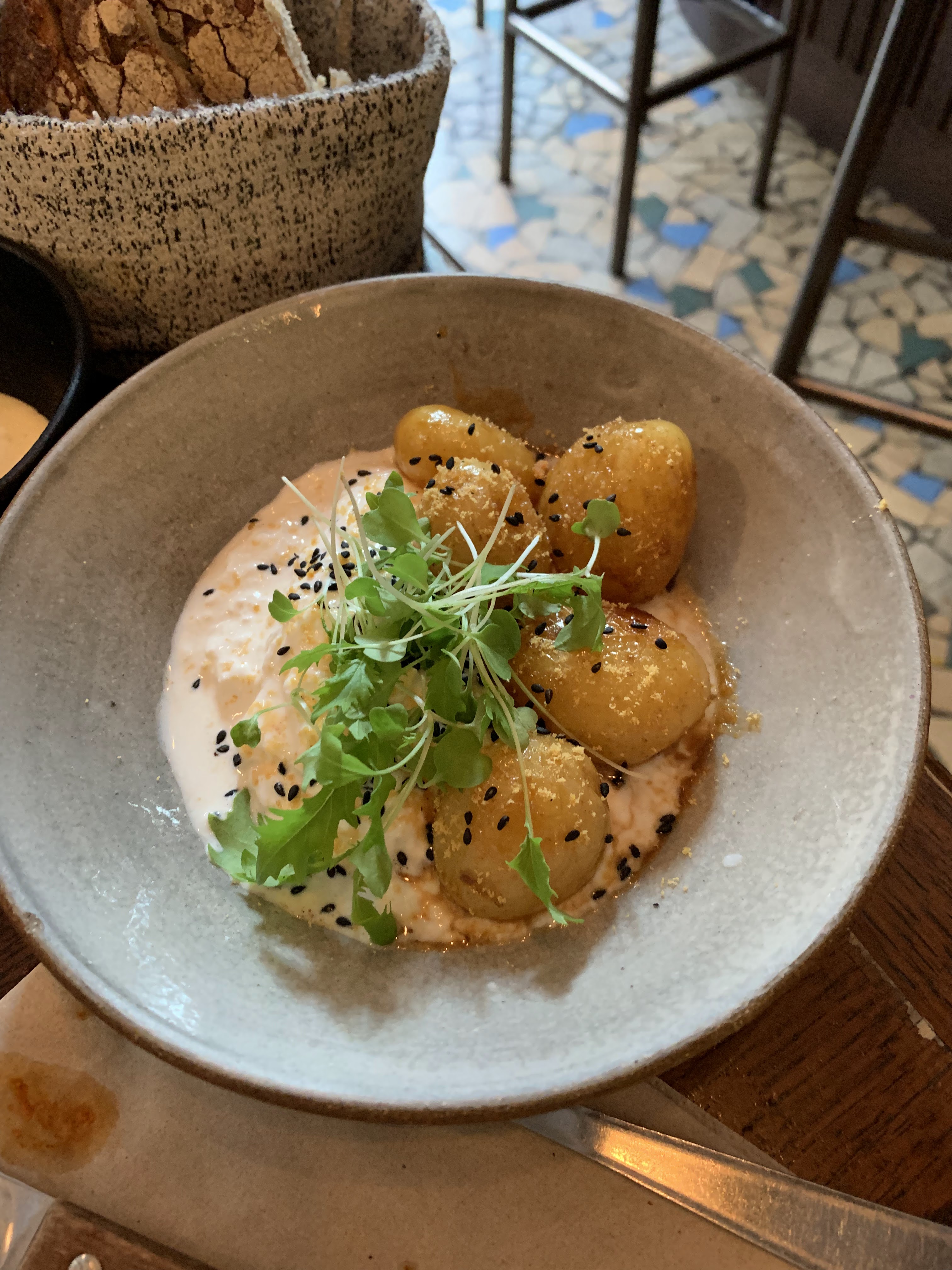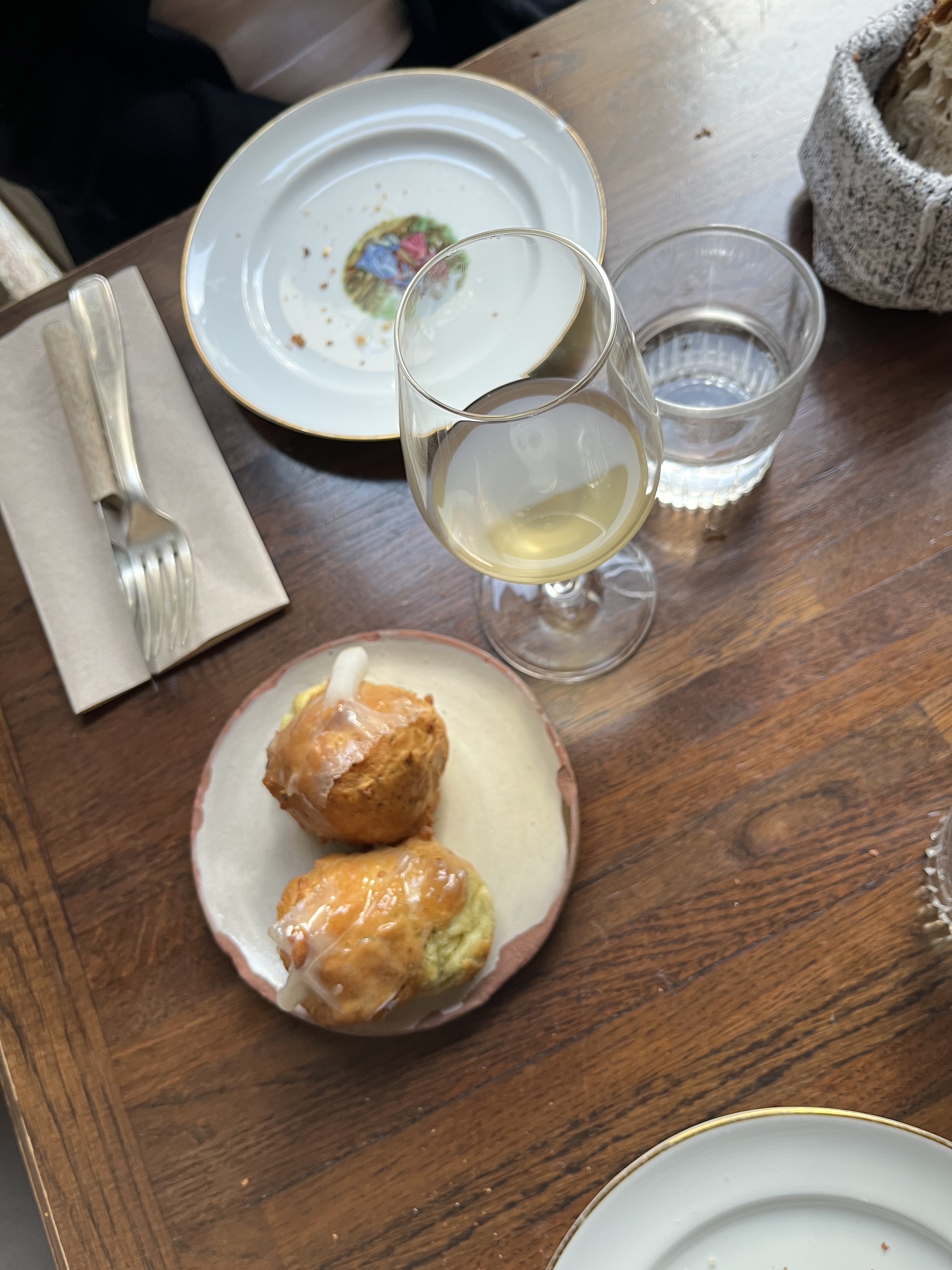Bel espace et décoration. Personnel branché et branché. Les plats étaient innovants et intéressants et les vins étaient délicieux. Mon préféré était les gougères au Lardo. Miam, j'en ai toujours envie.