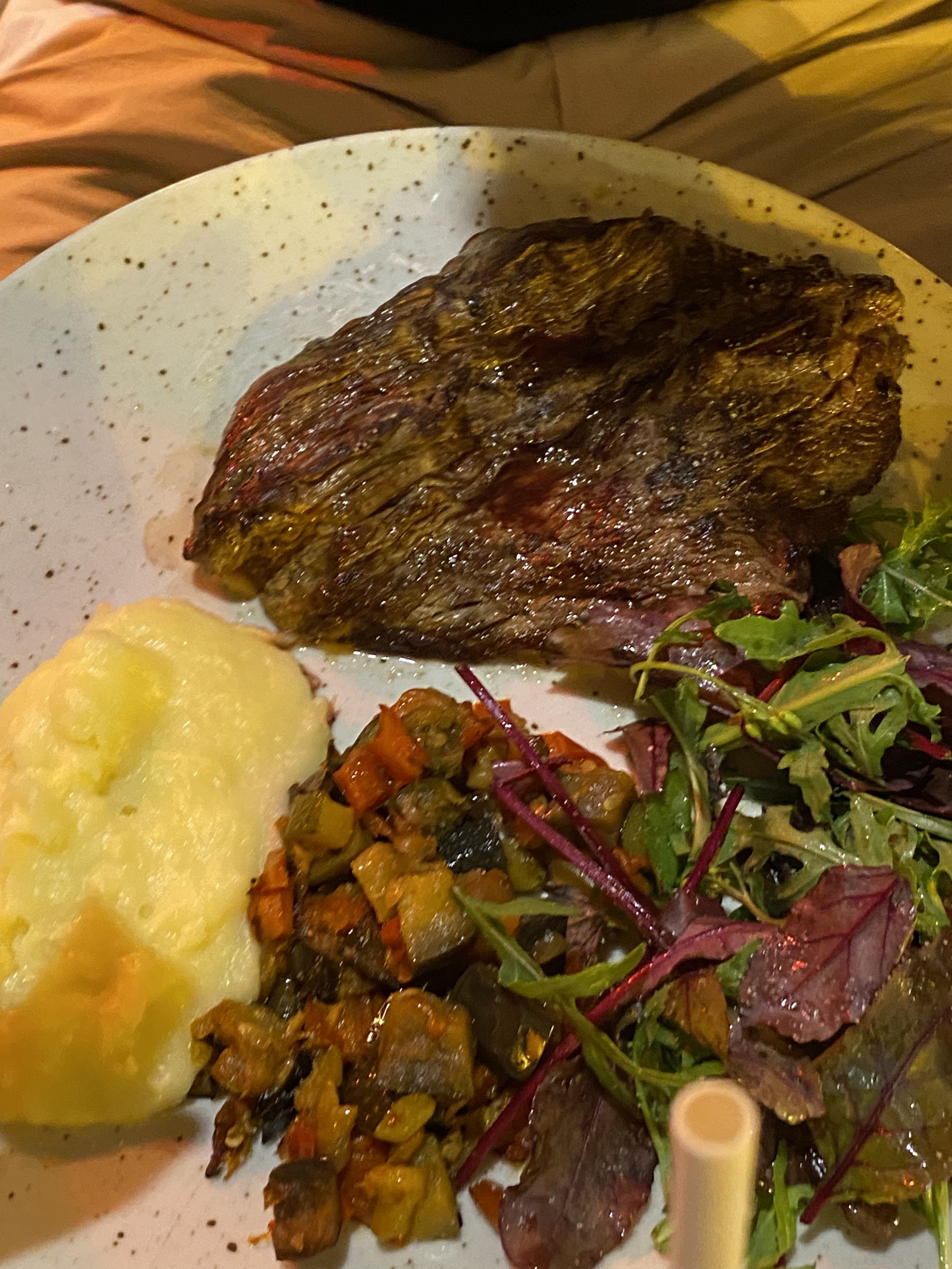 Ambiance agréable, service et personnel excellents, il est possible de goûter aux truffes. Mais le cuisinier et moi n'étions clairement pas d'accord sur le degré de cuisson de la viande. Le « médium » habituel s’est avéré franchement cru à l’intérieur.