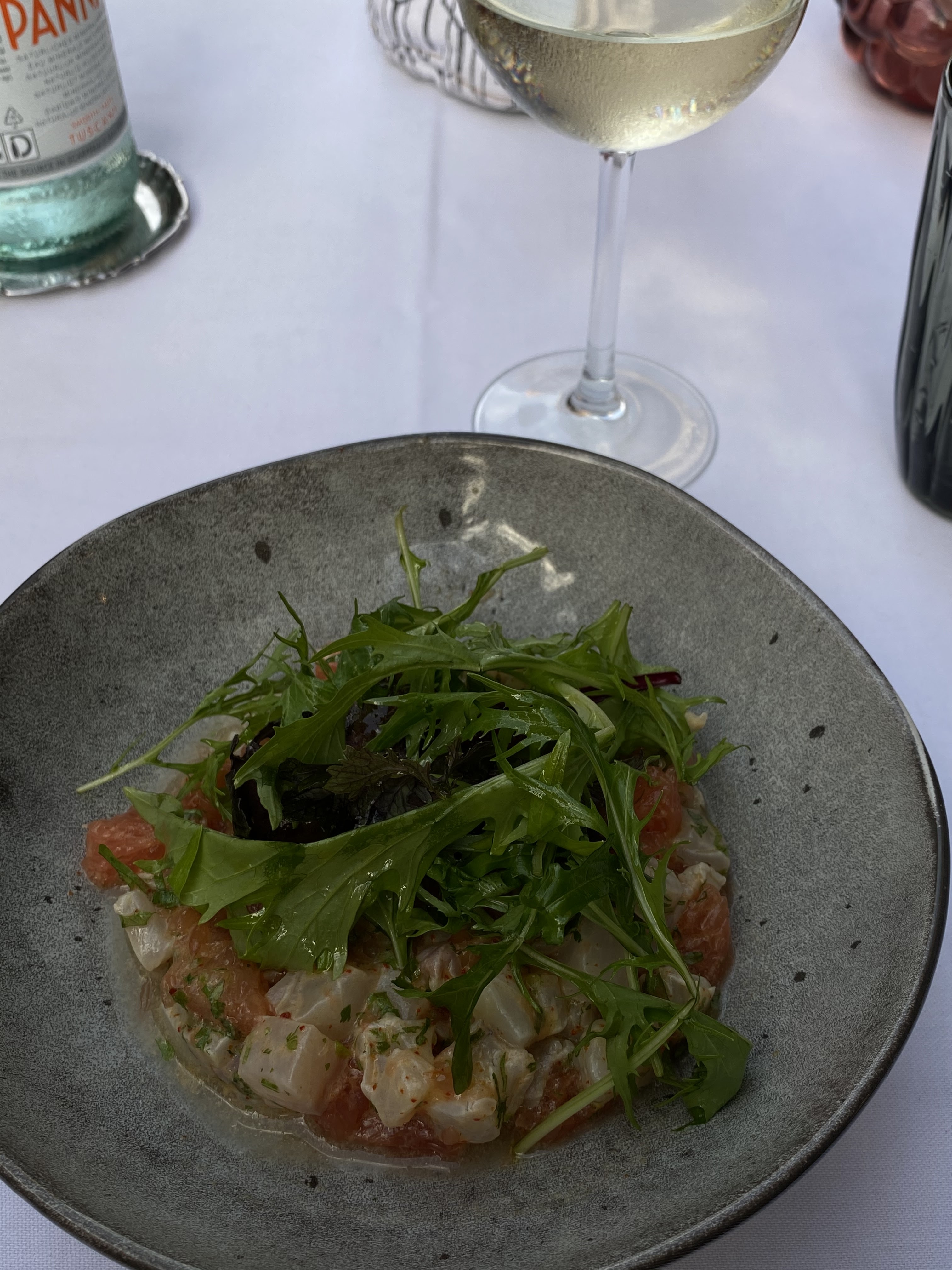 Très belle table classique et gourmande. Belle terrasse aérée. Service impeccable. Nous avons pris les ceviche daurade et loup. Très bien (sauf le pop-corn sans intérêt). L’entrée grand balcon (artichaut, foie gras, burrata, sandwich truffe) est superbe et copieuse pour partager à deux ou trois. Et le fraisier maison en dessert est juste super léger et aérien. Bref, nous recommandons vivement. Et nous reviendrons. Bravo à l’équipe !