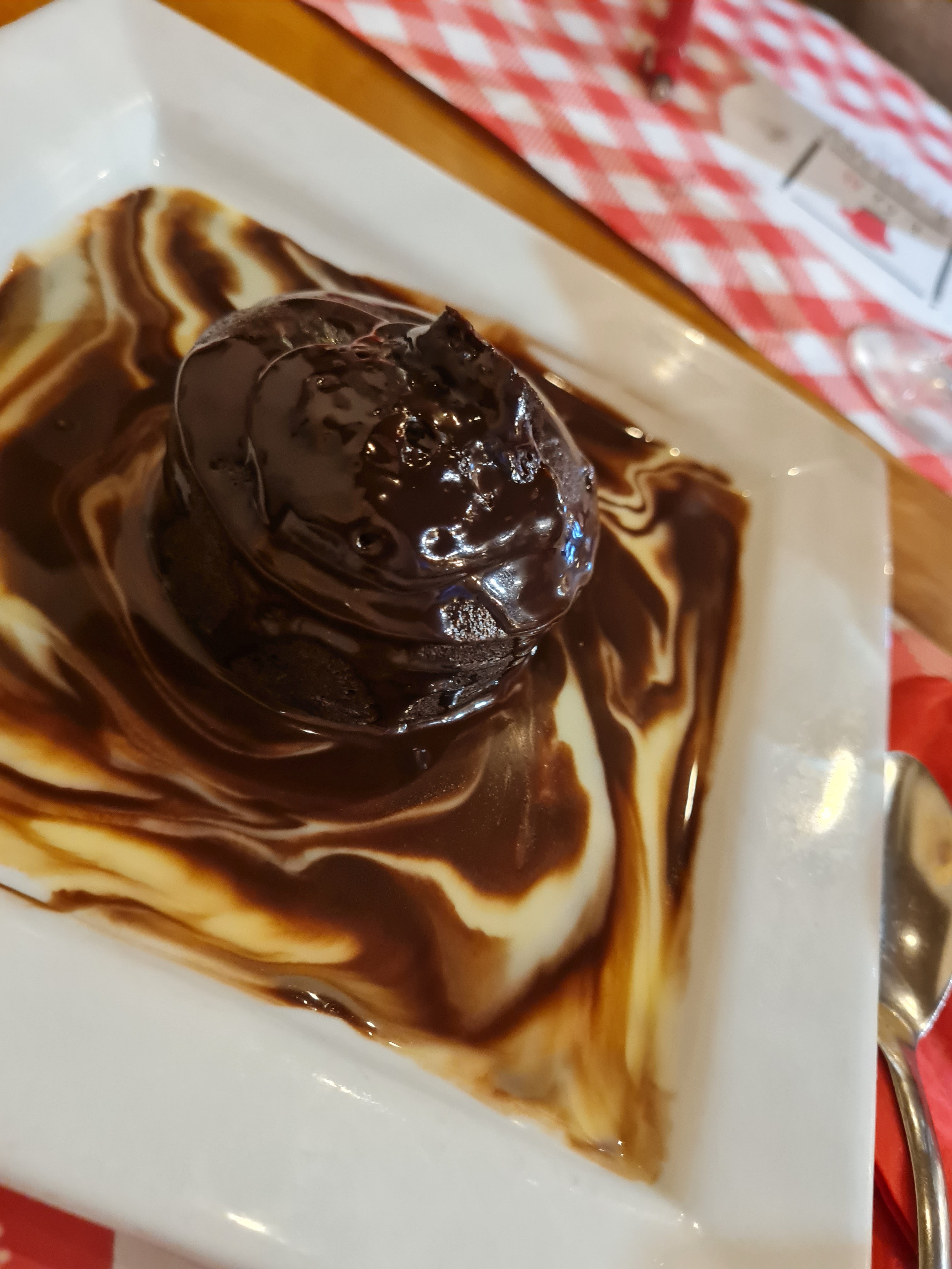 Dans l'ensemble, ça reste très basique Il y a beaucoup trop de choix, ce qui donne déjà un avant goût de la qualité des plats Le service est un peu long, il y avait un peu de monde mais ce n'était pas une cohue non plus Les plats restent mangeables mais ça ne donne pas envie de finir La pizza était assez compliquée à couper.. au moins, l'avantage c'est que les calories prises avec la pizza ont été dépensées pour la couper... Ça restera pour moi, un restaurant de dernier recours