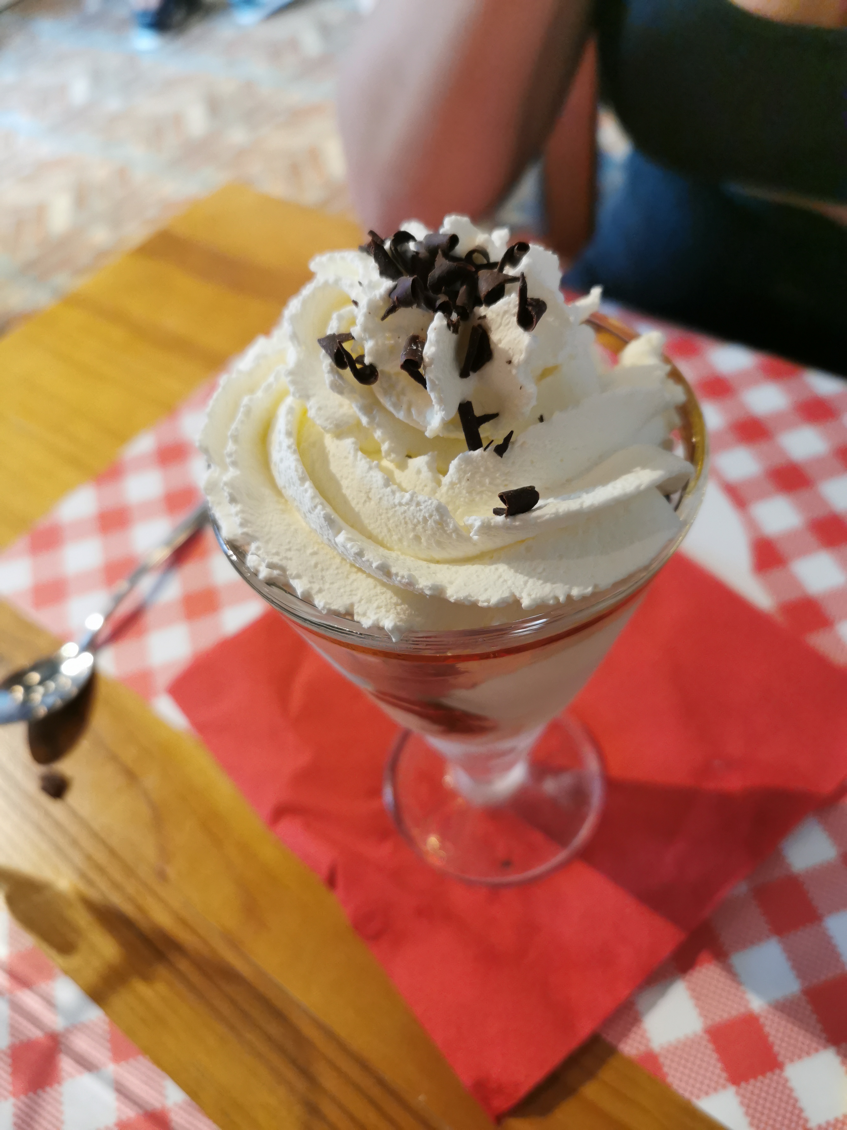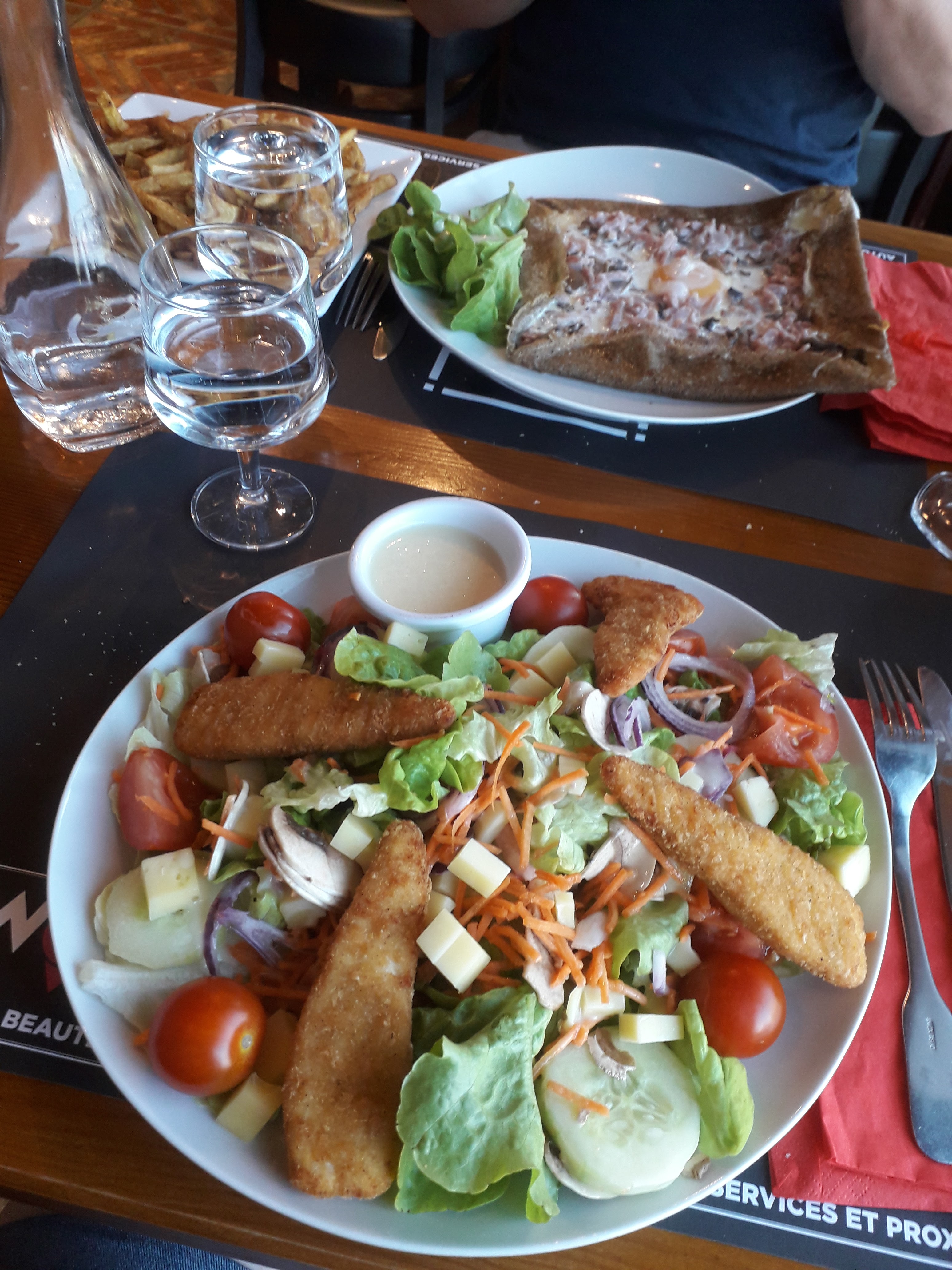 3 serveurs différents, de la terre dans l'assiette. Bref, une brasserie. Sinon la salade était plutôt conséquente et bonne. La glace également, la chantilly était intéressante.