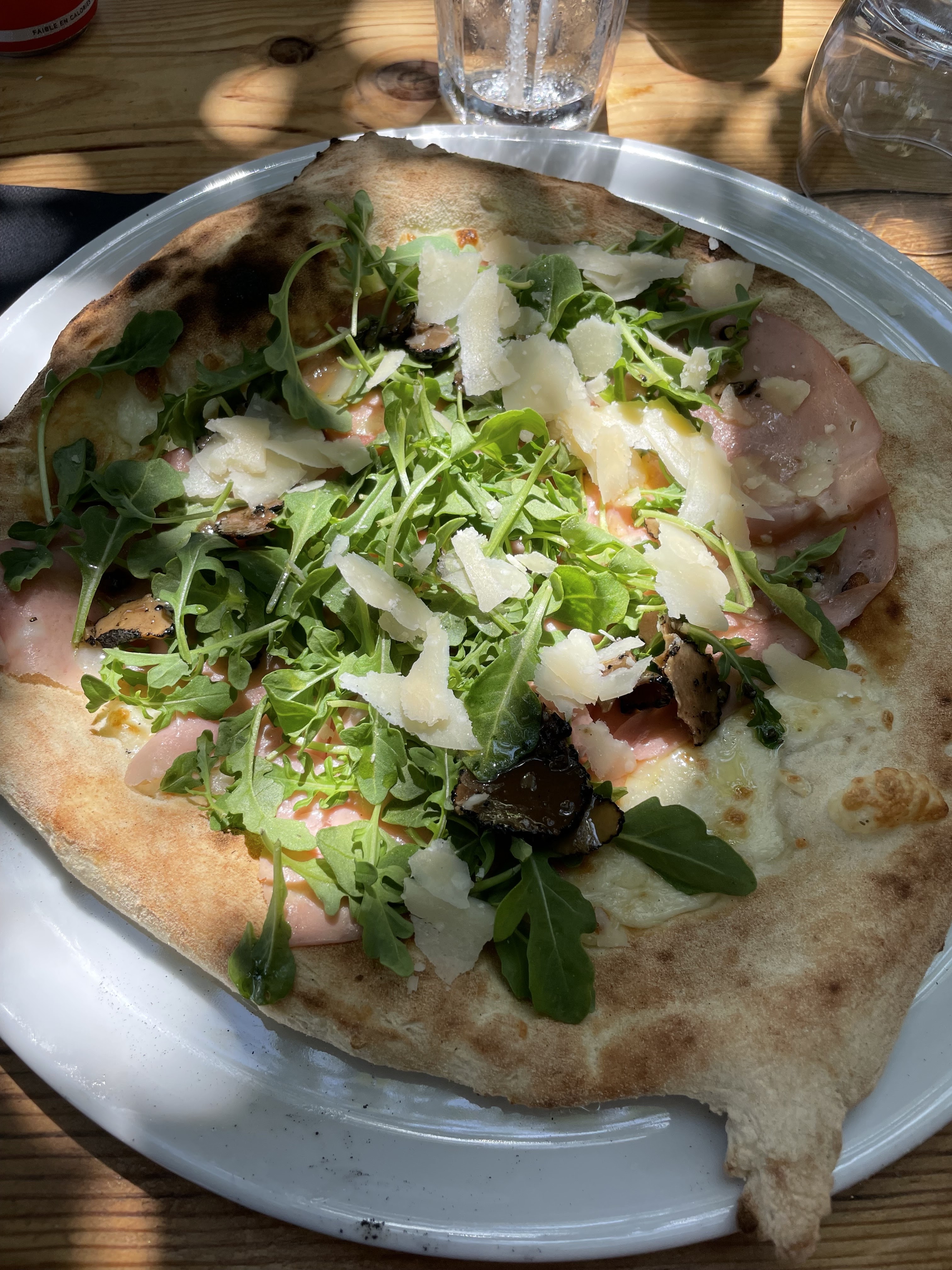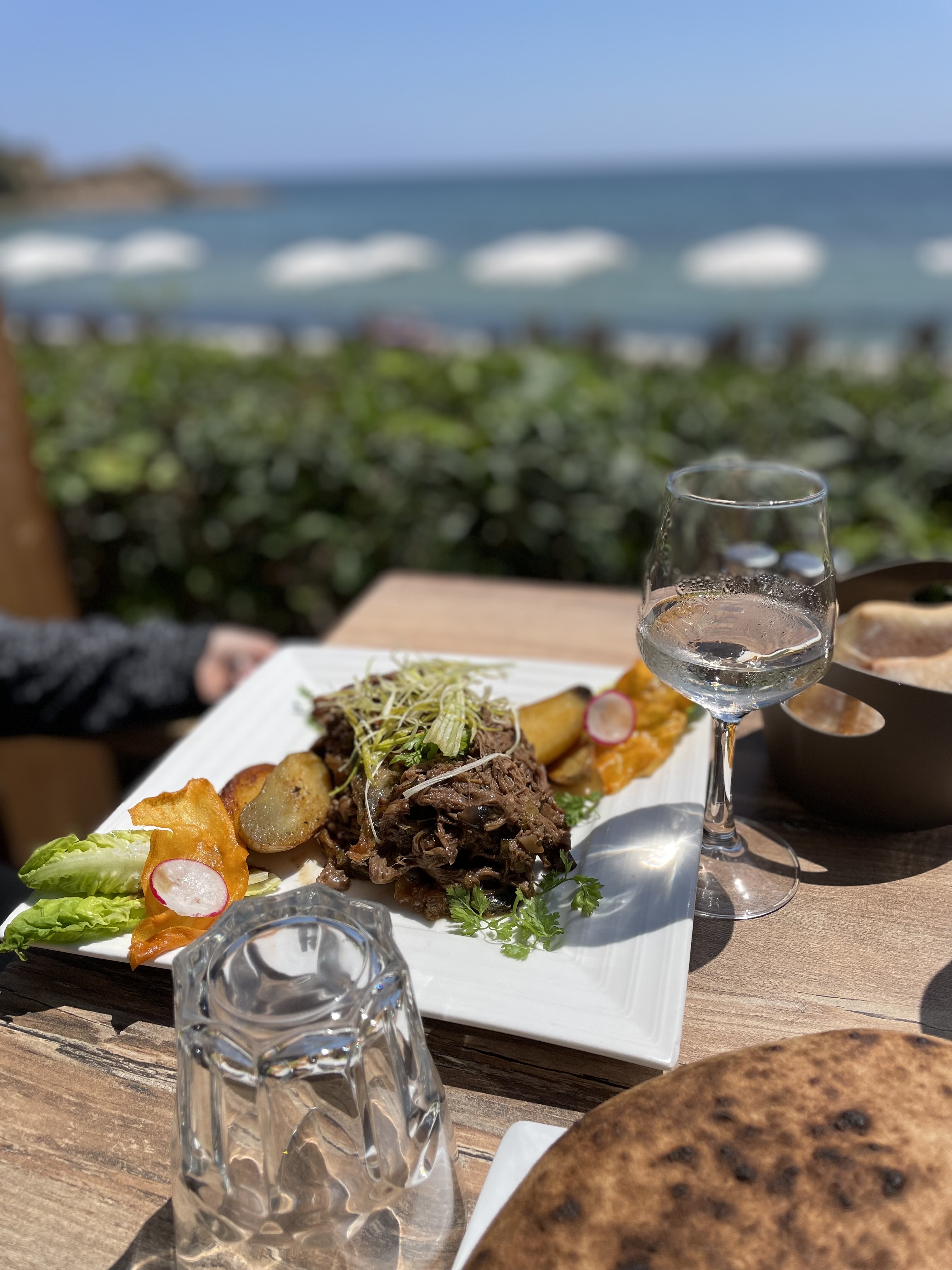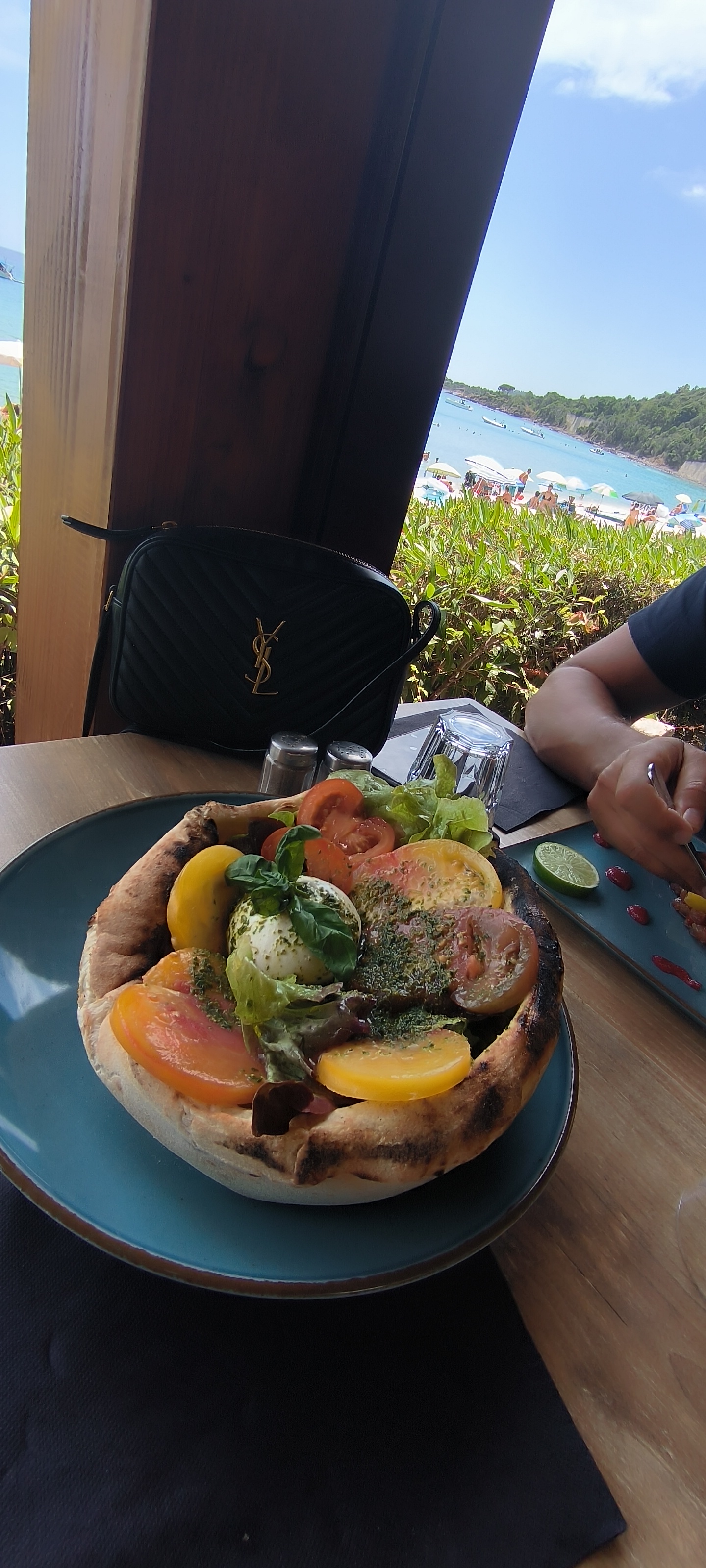 Les pizzas étaient délicieuses! Nous avons fait du kayak jusqu'à cet magnifique endroit et nous avions donc pas pris de t-shirt. Nous avons été refusé d'entrer dans le restaurant qui se trouve au bord de la plage où plein de gens sont en maillots de bains... Dommage que nous ayons pas pu manger sur place mais les plats avaient l'air succulents.