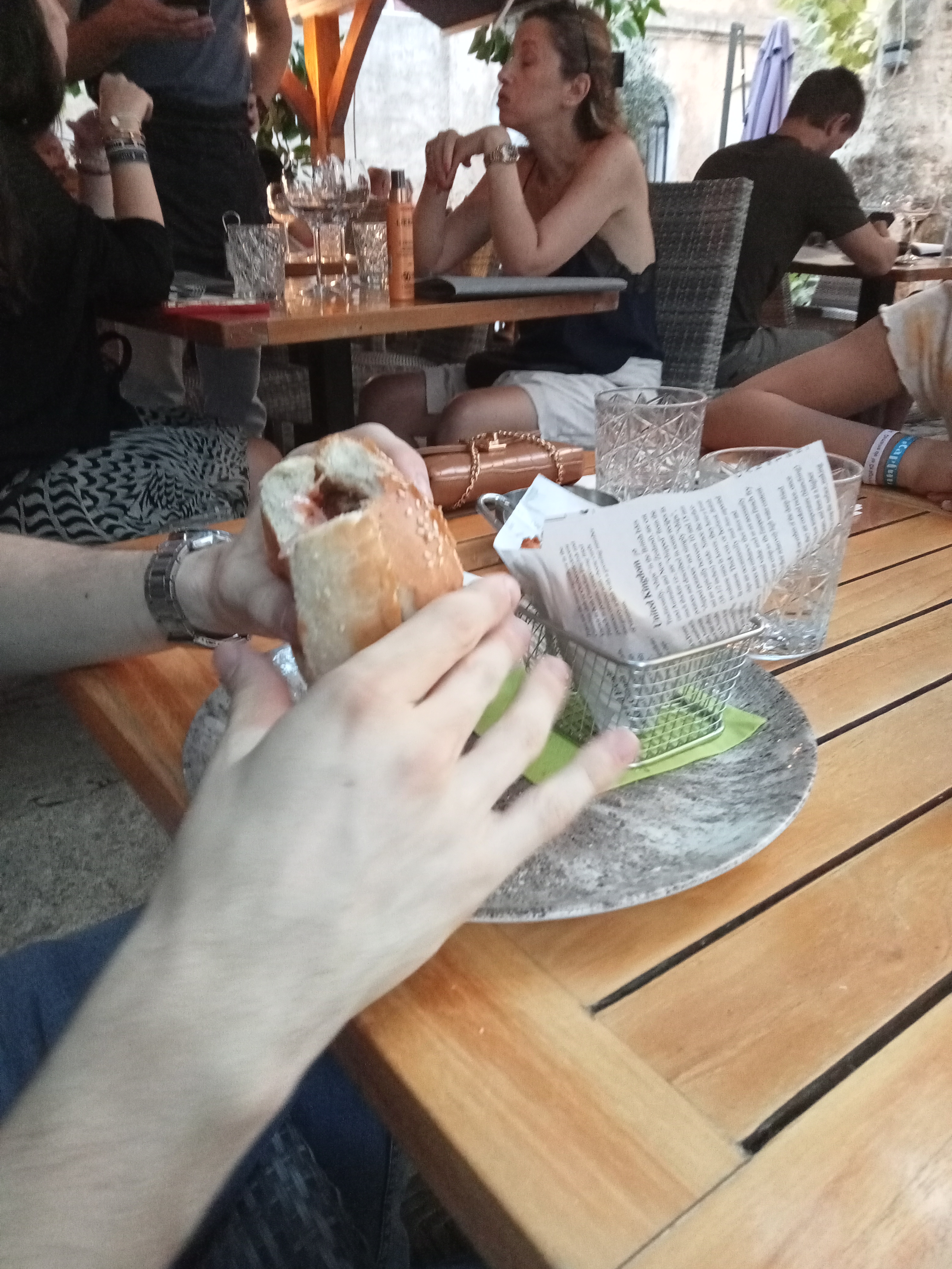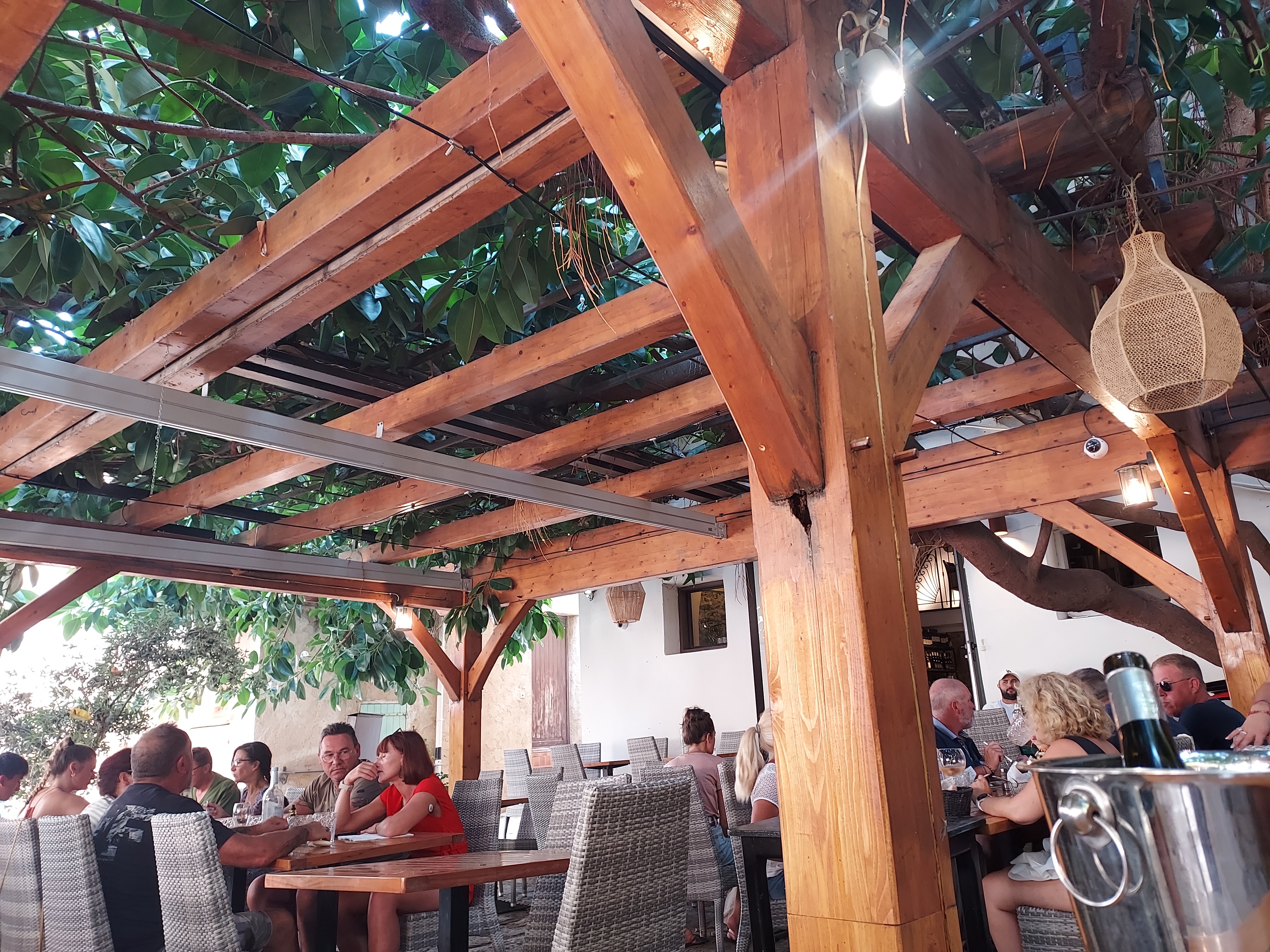 En famille à 3, arrivée vers 13:30 mi août. Magnifique terrasse ombragée naturellement, serveur et serveuses très agréables. Rapport qualité prix OK. Dressage des assiettes inspirées des gastros à part le burger mais service plutôt bistro. Ce décalage (dressage/service) est anecdotique. Nous recommandons pour le lieu et la qualité.