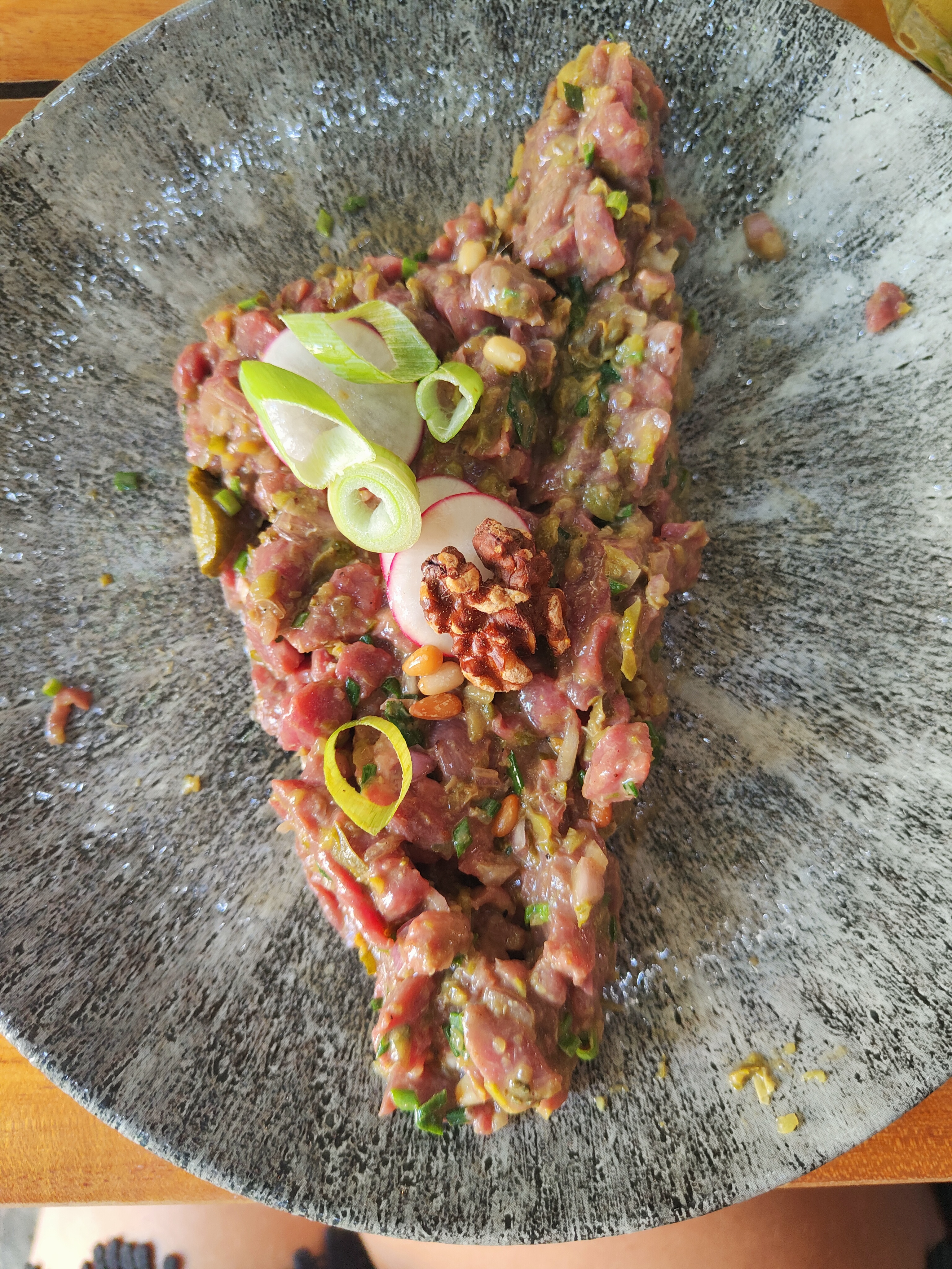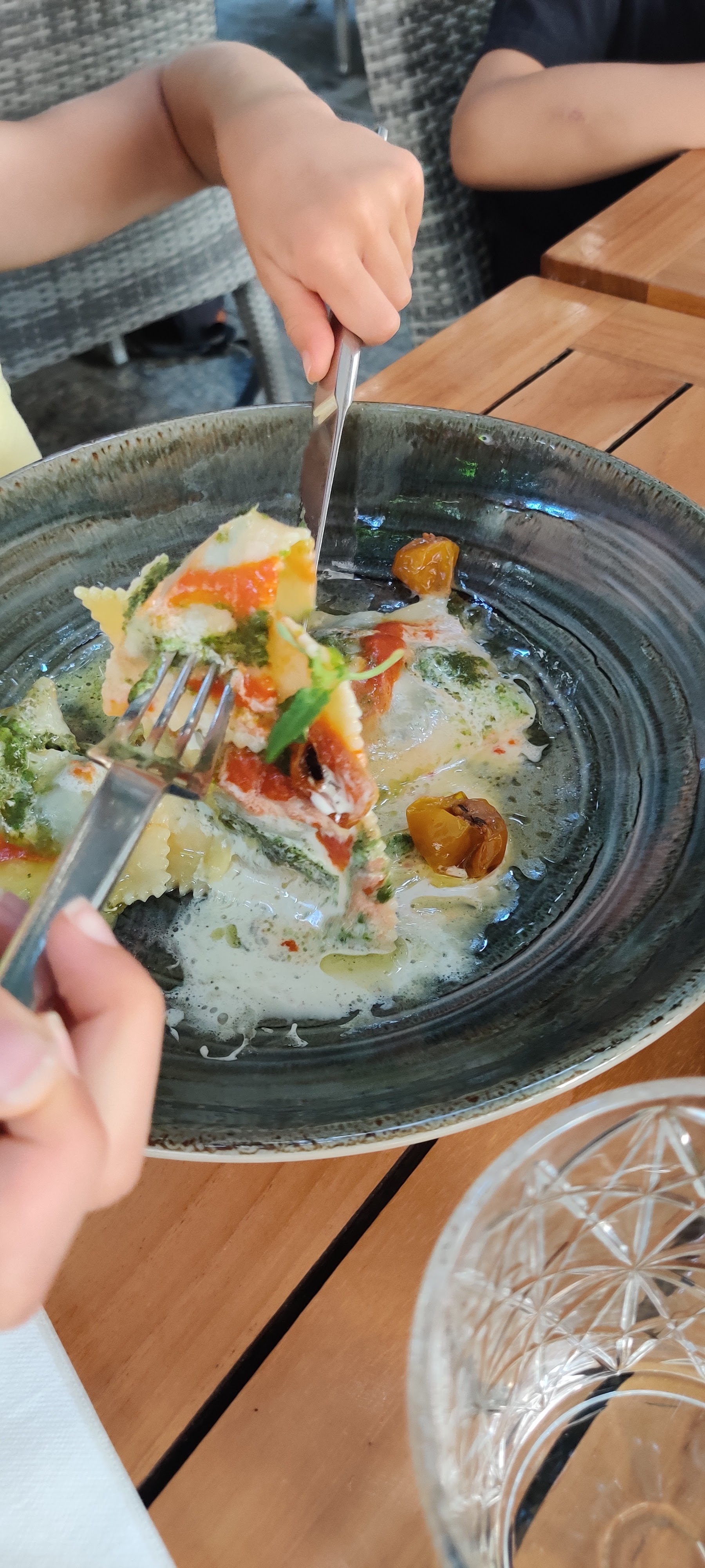 Le meilleur tartare au monde découpé devant vous! Les raviolis sont parfaits !nous avons pris ceux aux gambasses et à la ricotta! Les pâtes au pesto sont aussi extra. Les desserts sont top et les serveurs sont super sympa! L'endroit est magique sous les arbres 🌳! Vous pouvez y aller les yeux fermés!