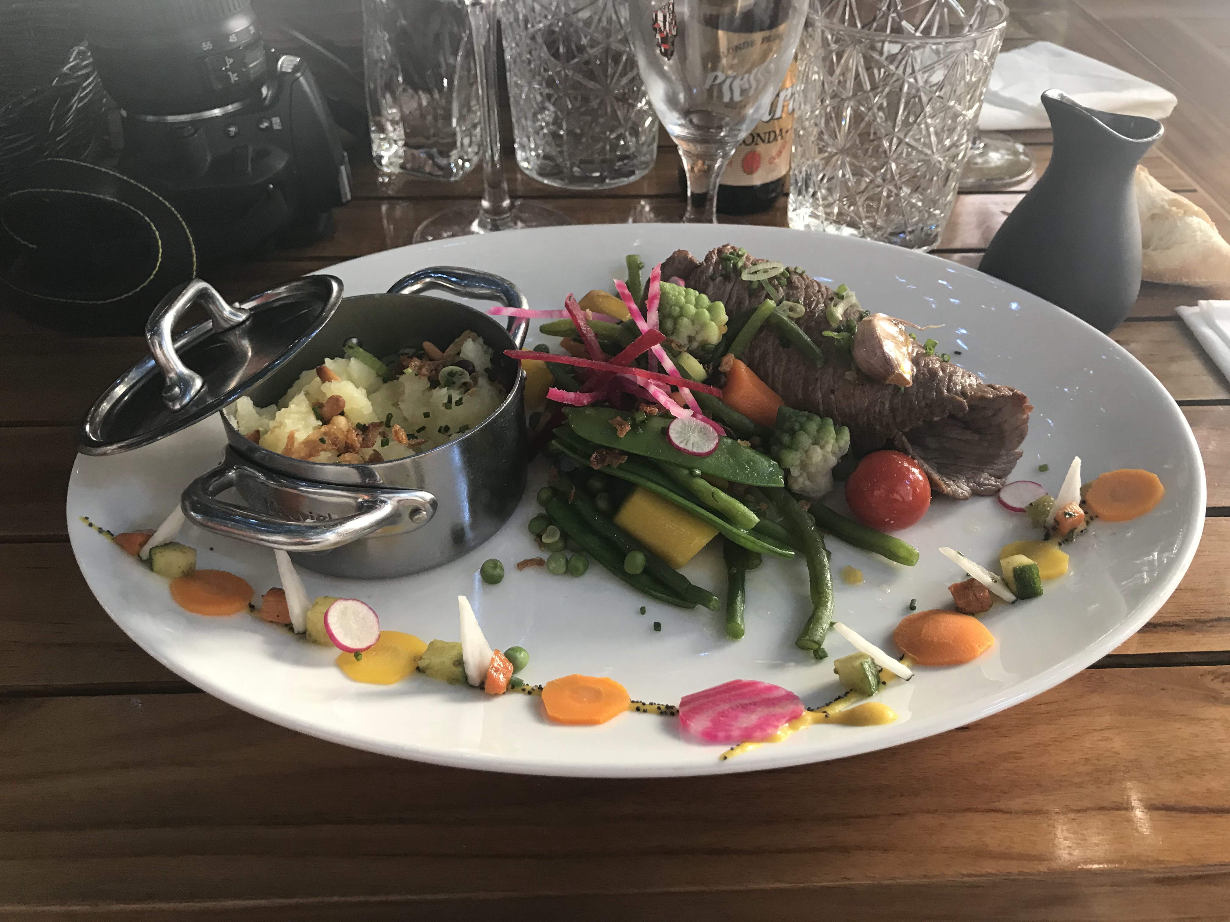 Très bon moment passé dans un lieu ombragé et agréable : les plats aux noms les plus simples sont raffinés et excellents, et le service est aux petits soins !