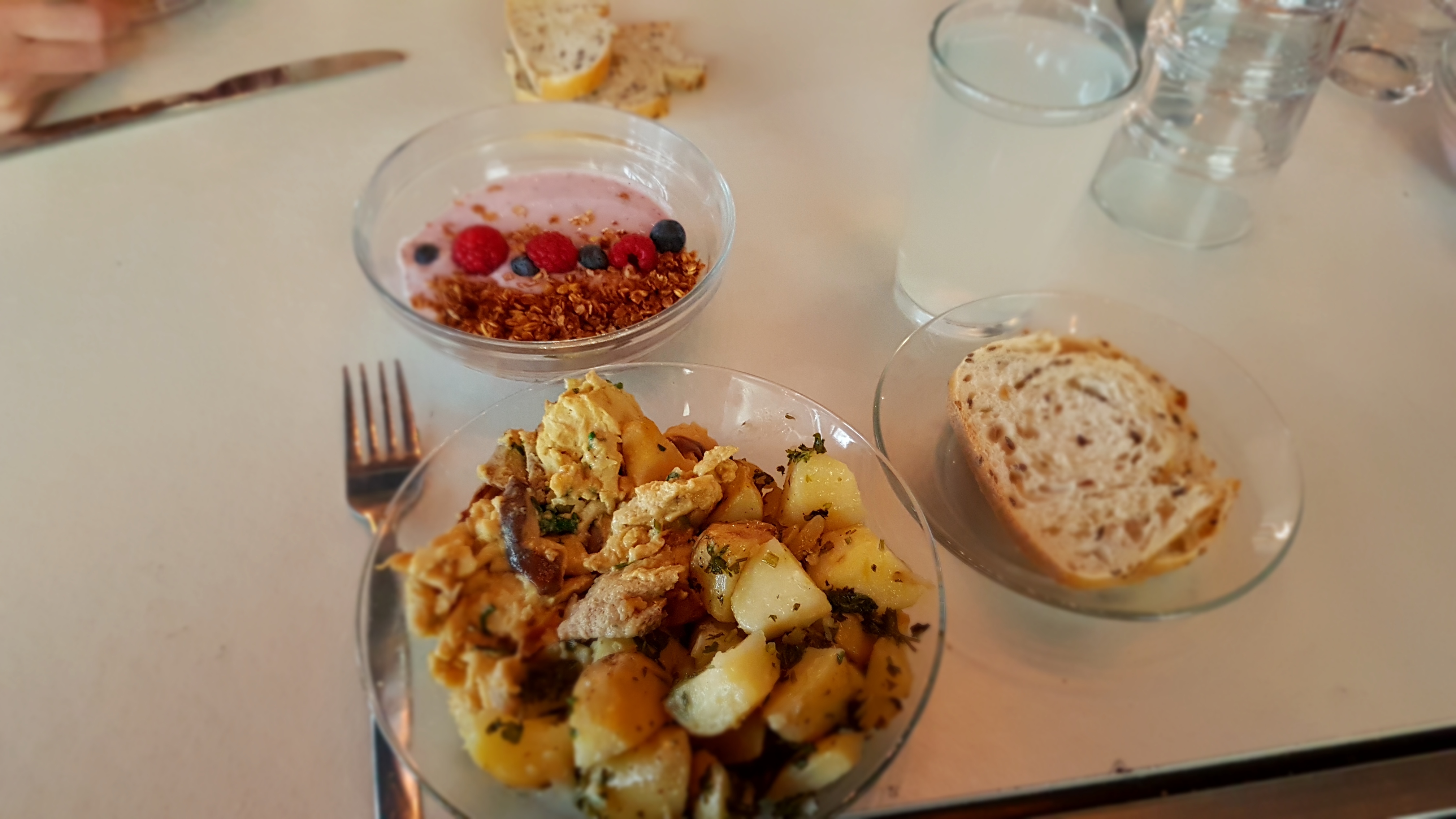 Brunch complet à 18€: jus pressés, brioche, plat chaud, dessert, boissons chaudes et salades à volonté. Cuisine simple mais c'est bon. Ambiance cantine, self service, beaucoup d'espaces entre les tables. Pas le brunch le plus romantique mais je recommande pour les groupes/familles.