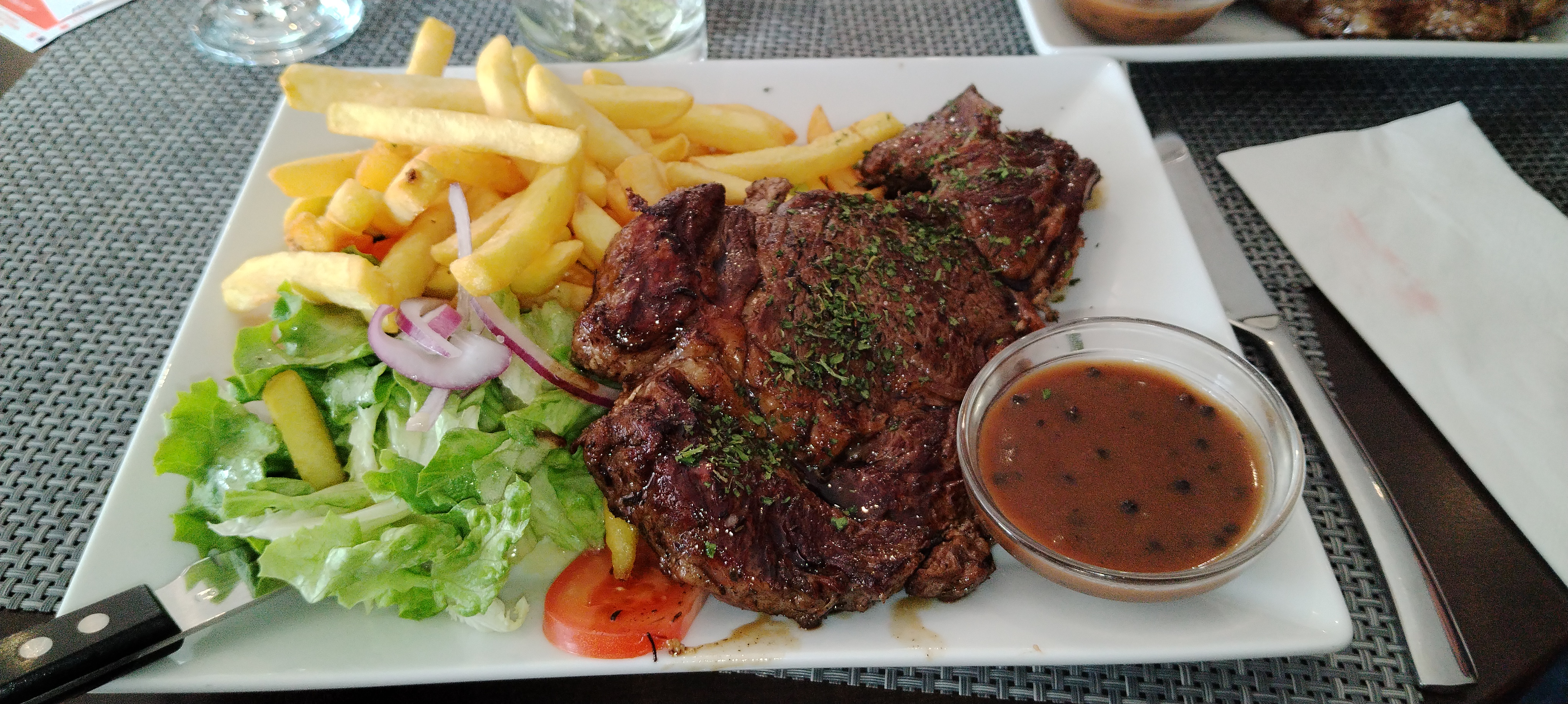 Bonjour. J’ai déjeuner dans ce restaurant. Le personnel est très agréable et serviable. Ils m’ont aider à trouver un taxi. Concernant la nourriture, je me suis régalé. Bonne journée.