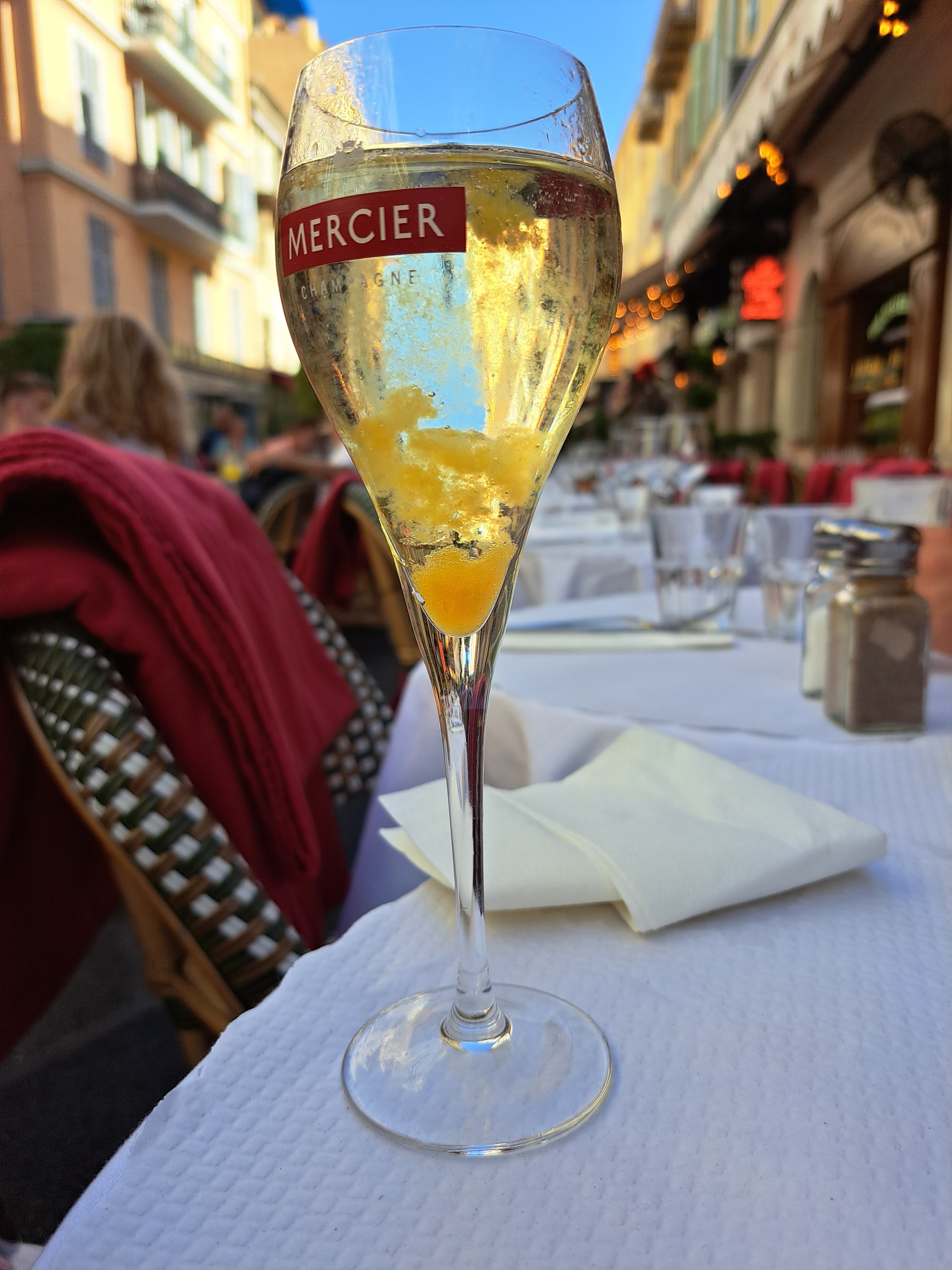 L'emplacement idéal dans le quartier piéton de Nice, un bon service et une expérience de café français très classique avec observation des gens !