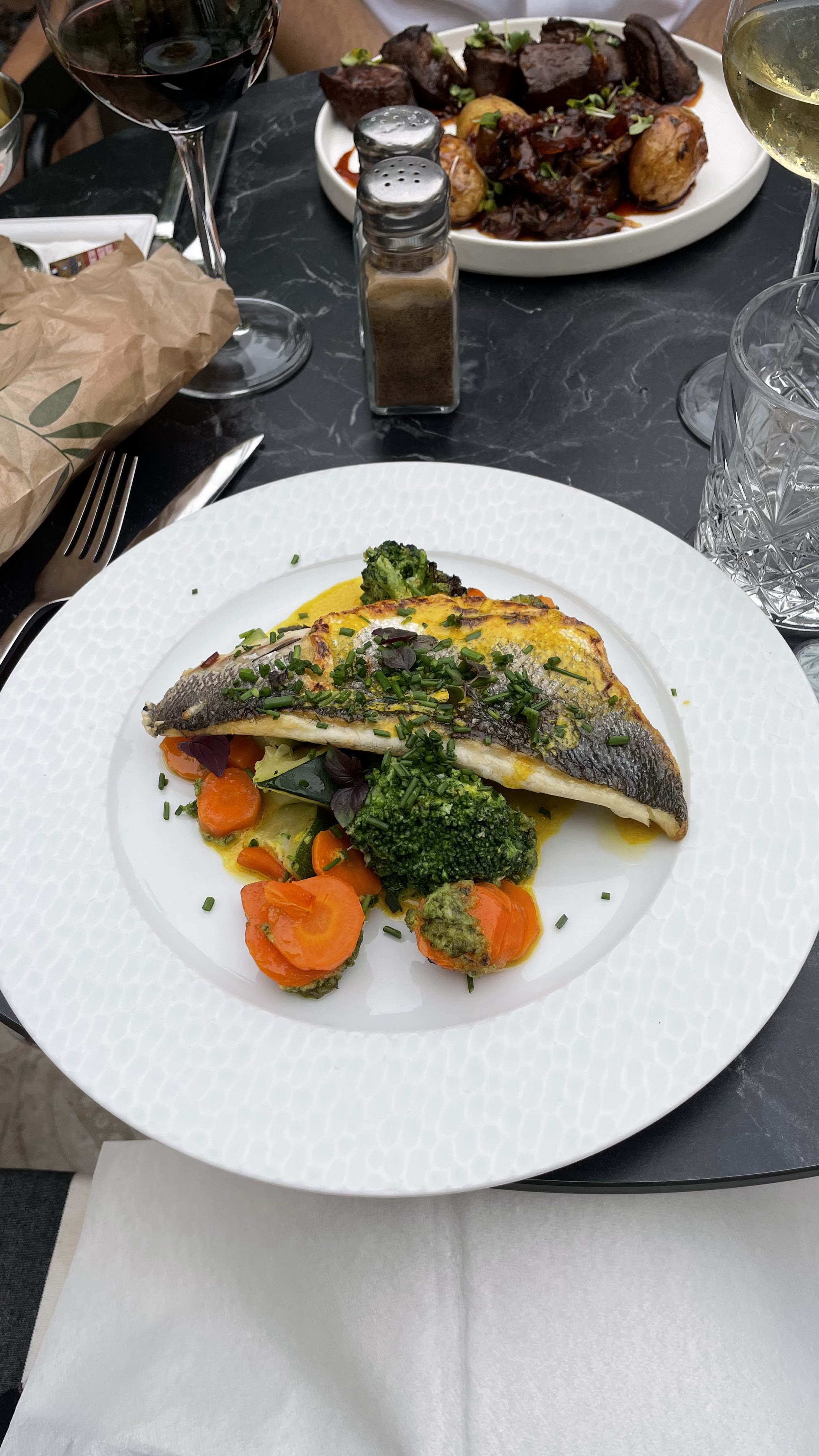 Nous avons pris un bon repas, quoique cher, assis sur la terrasse à l'étage à l'arrière du restaurant, belle sélection de fruits de mer disponibles, carte des vins complète, la nourriture était bonne, le service était correct, nos boissons ont été oubliées et ne sont arrivées qu'après l'arrivée de la nourriture. , il y a aussi beaucoup de monde ici.