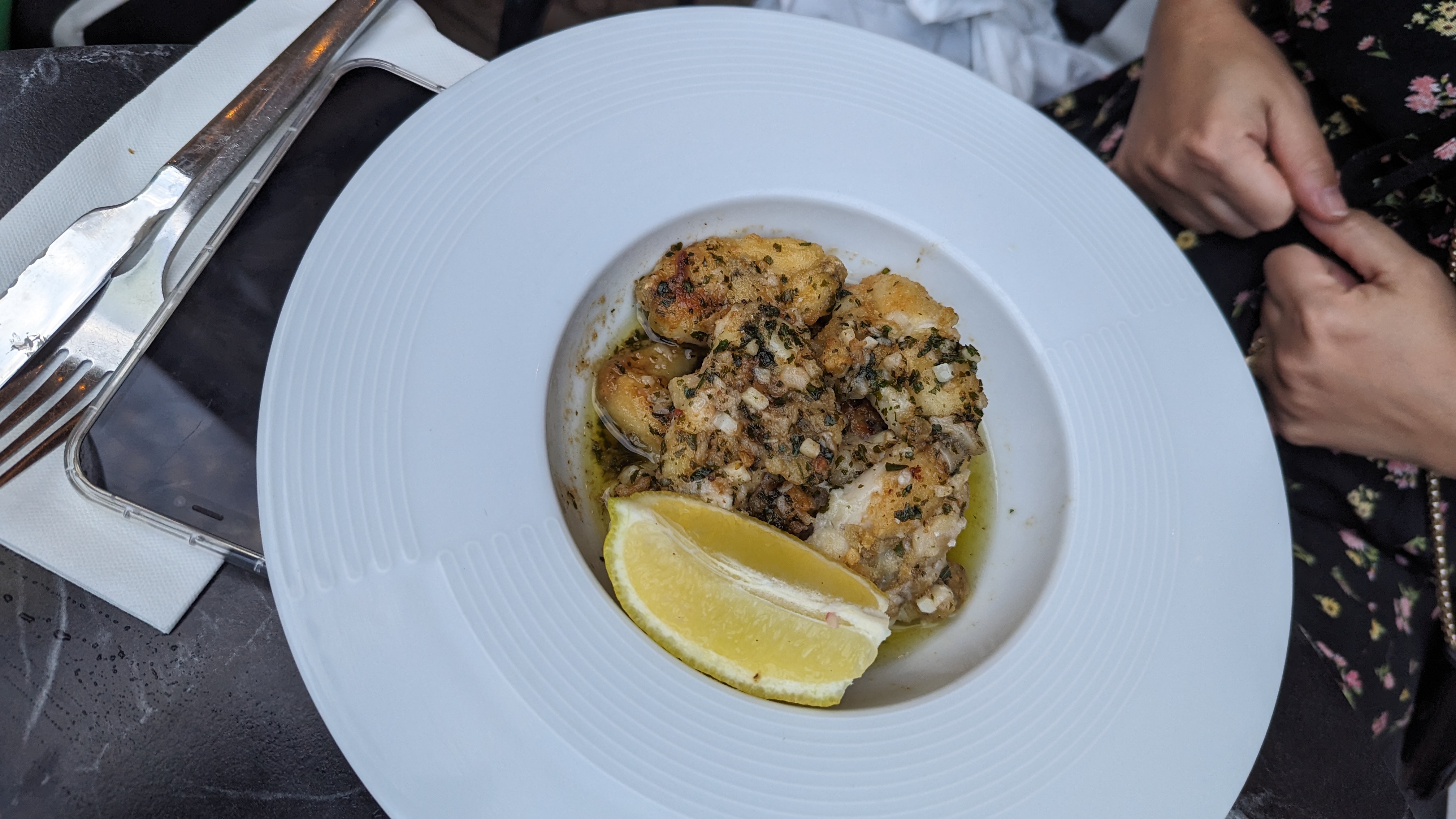 Nous sommes allés dîner tard dans la nuit et avons été bien accueillis. Le toit à l'étage était fermé mais était magnifique. Le service était un peu lent mais très sympathique. Deux boissons, une entrée, un dîner et un dessert pour moins de 100 € constituaient un excellent rapport qualité-prix pour l'expérience. L'escargot était le clou de la soirée.