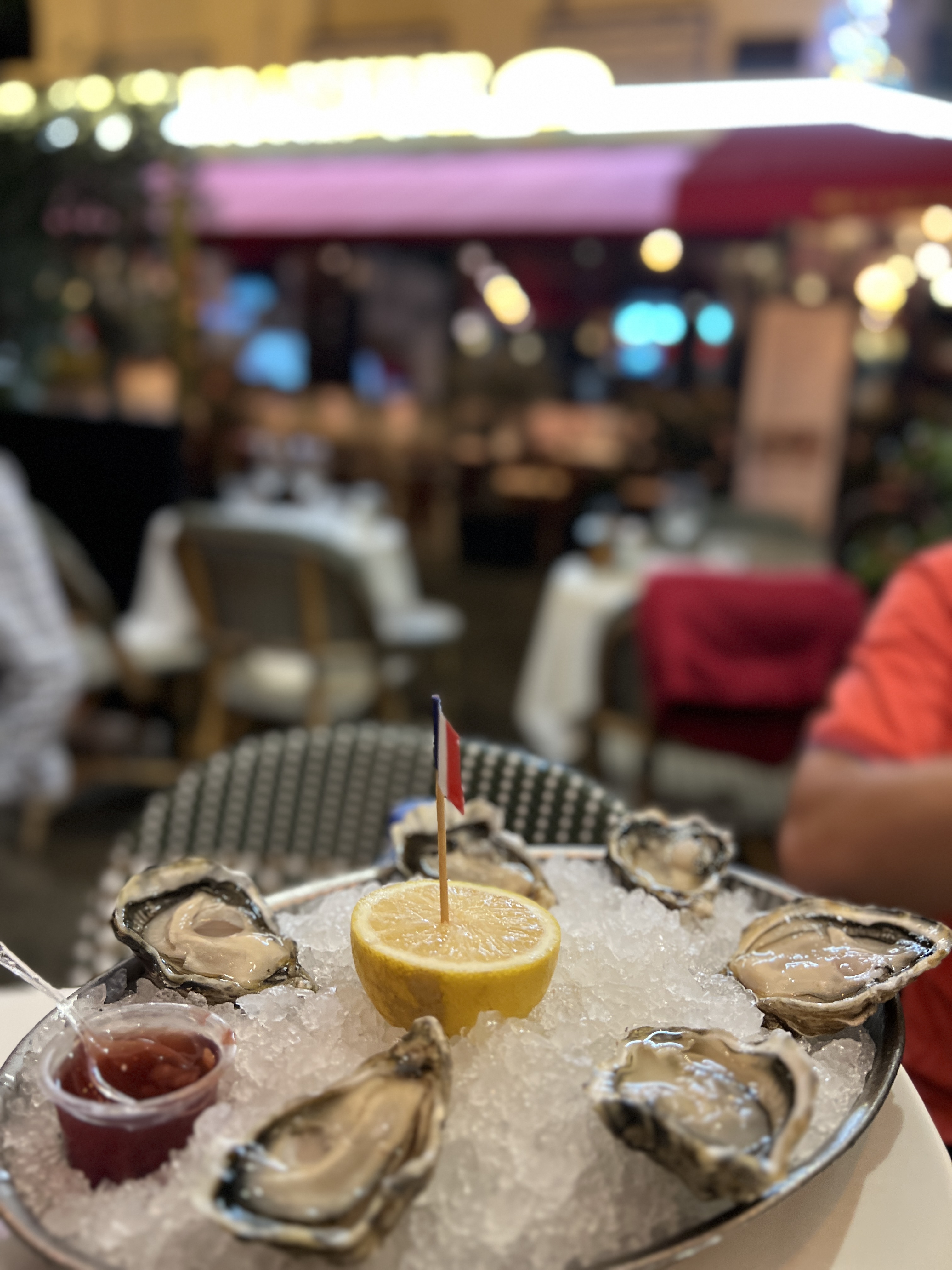 Visité le Grand Café de France sur recommandation. Et c'était une excellente recommandation ! Nous avons dégusté des huîtres et un verre de vin blanc pour le déjeuner. Les huîtres étaient délicieuses, le service était très sympathique. L'emplacement est magnifique, un très bon restaurant. Je reviendrai certainement chaque fois que je reviendrai à Nice.