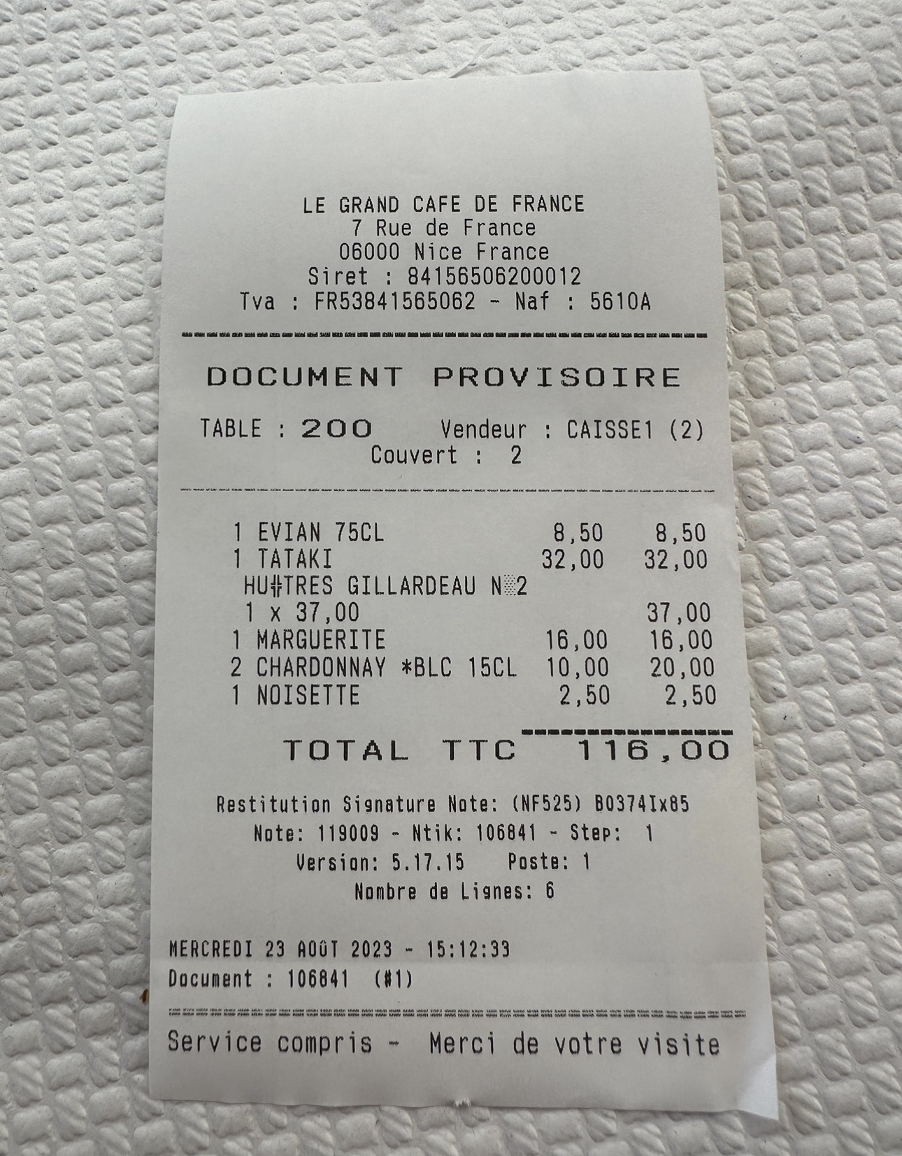J’ai passé un très bon moment sur la terrasse ensoleillée du grand café de France, un grand merci à Nargis pour son service et son sourire. Je reviendrai !