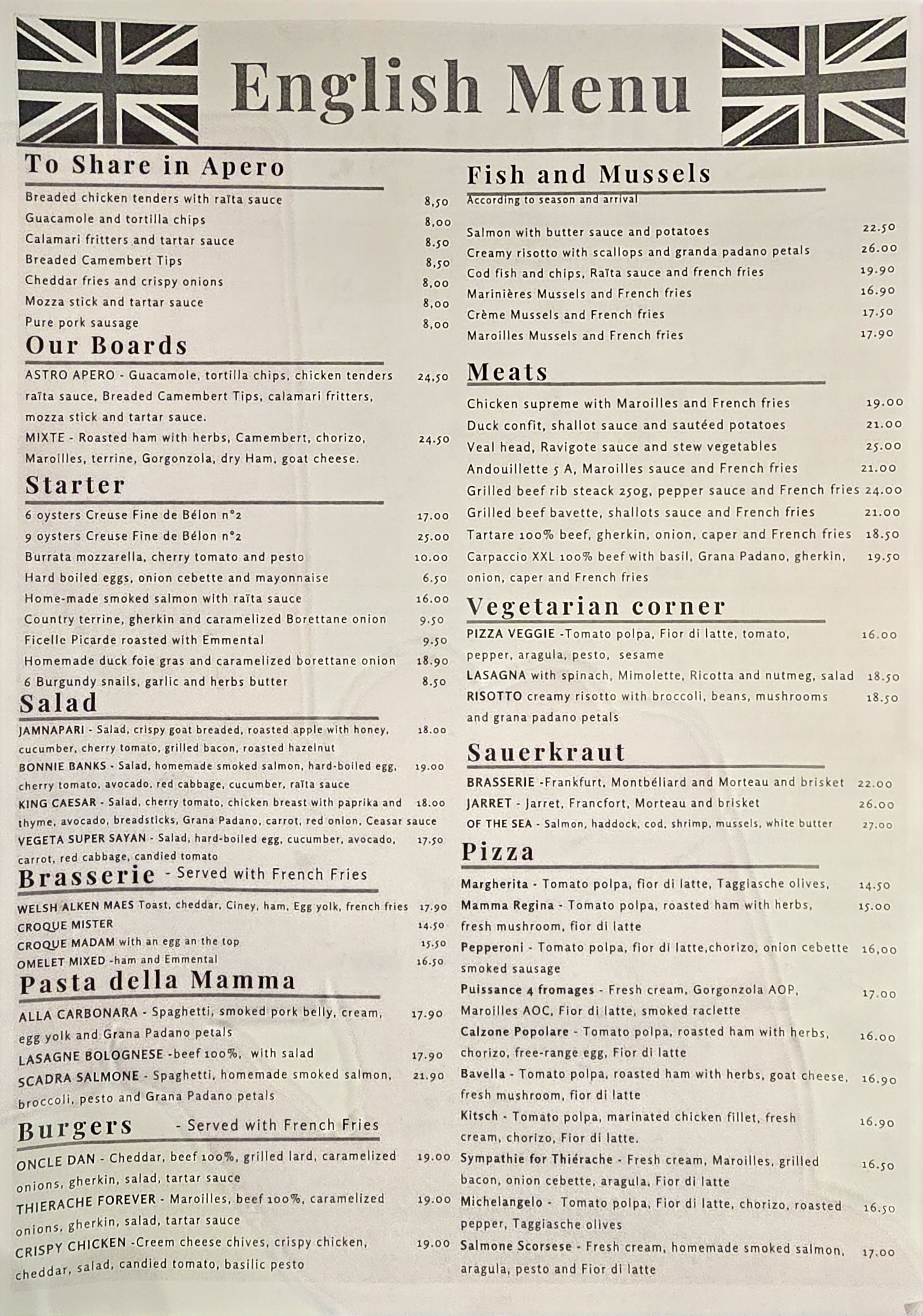 J ai été se dimanche déçu 😞 pris choucroute de mer moule crevette poisson sec et quant on va pour payer on nous compte des bières plus chère pas compris du tout