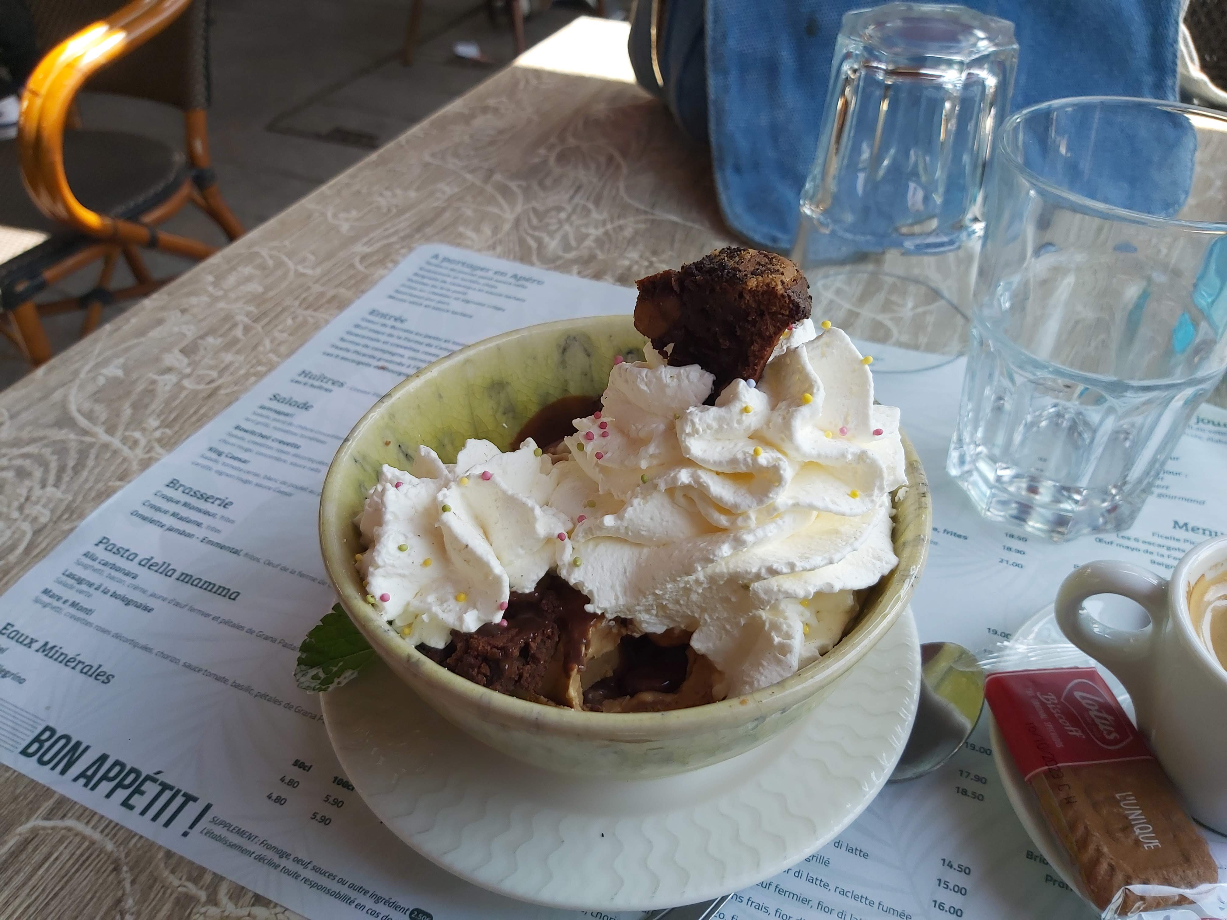 J’y ai pris un bon café viennois avec tiramisu. Rien à dire sur la boisson, par contre pour le tiramisu peu mieux faire.