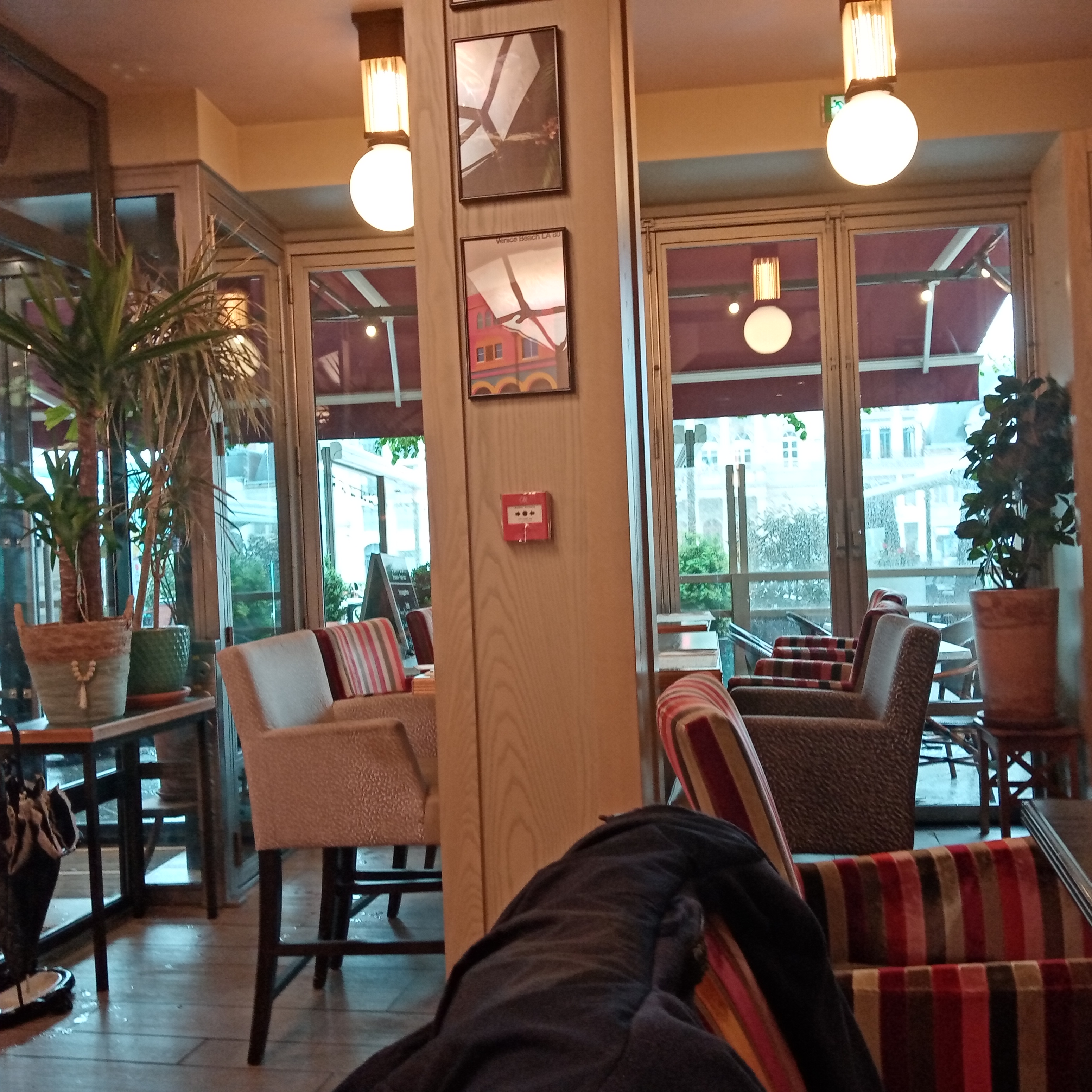 Assis en terrasse. Il a fallu aller chercher un serveur à l intérieur pour être servi. Une fois servi l addition n était pas correcte puisque nous étions en happy hours et le serveur n avait pas l air au courant. Pas terrible.