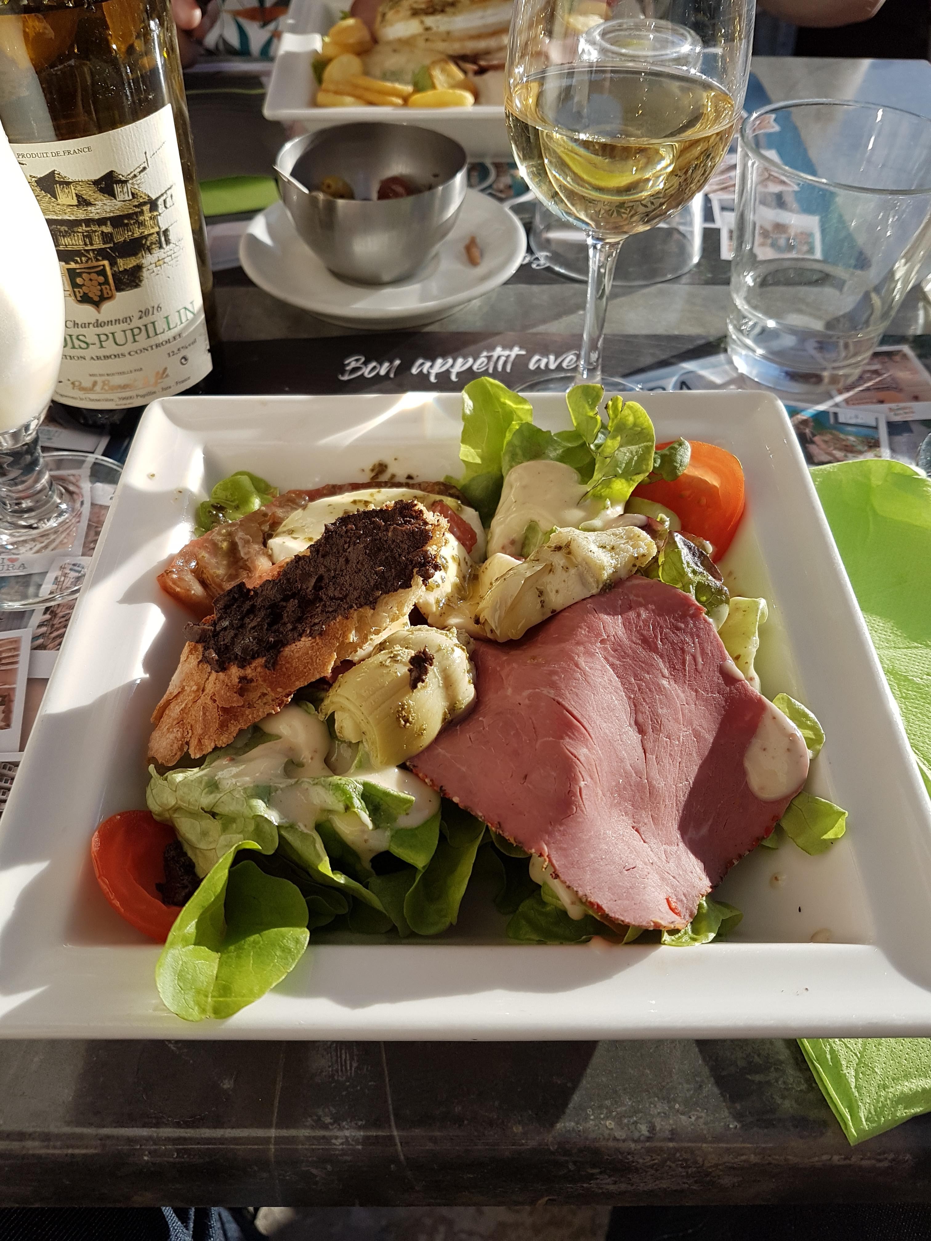 Bon accueil et un service correct avec un personnel agréable. Un cadre sympathique dans un bâtiment historique. J'avais pris 1 salade comtoise avec 1 verre de Savagnin +1 café gourmand monsieur. Le tout était bien présenté copieux et appétissant. Moi je recommande bien que pour d'autres ce fût une déception.