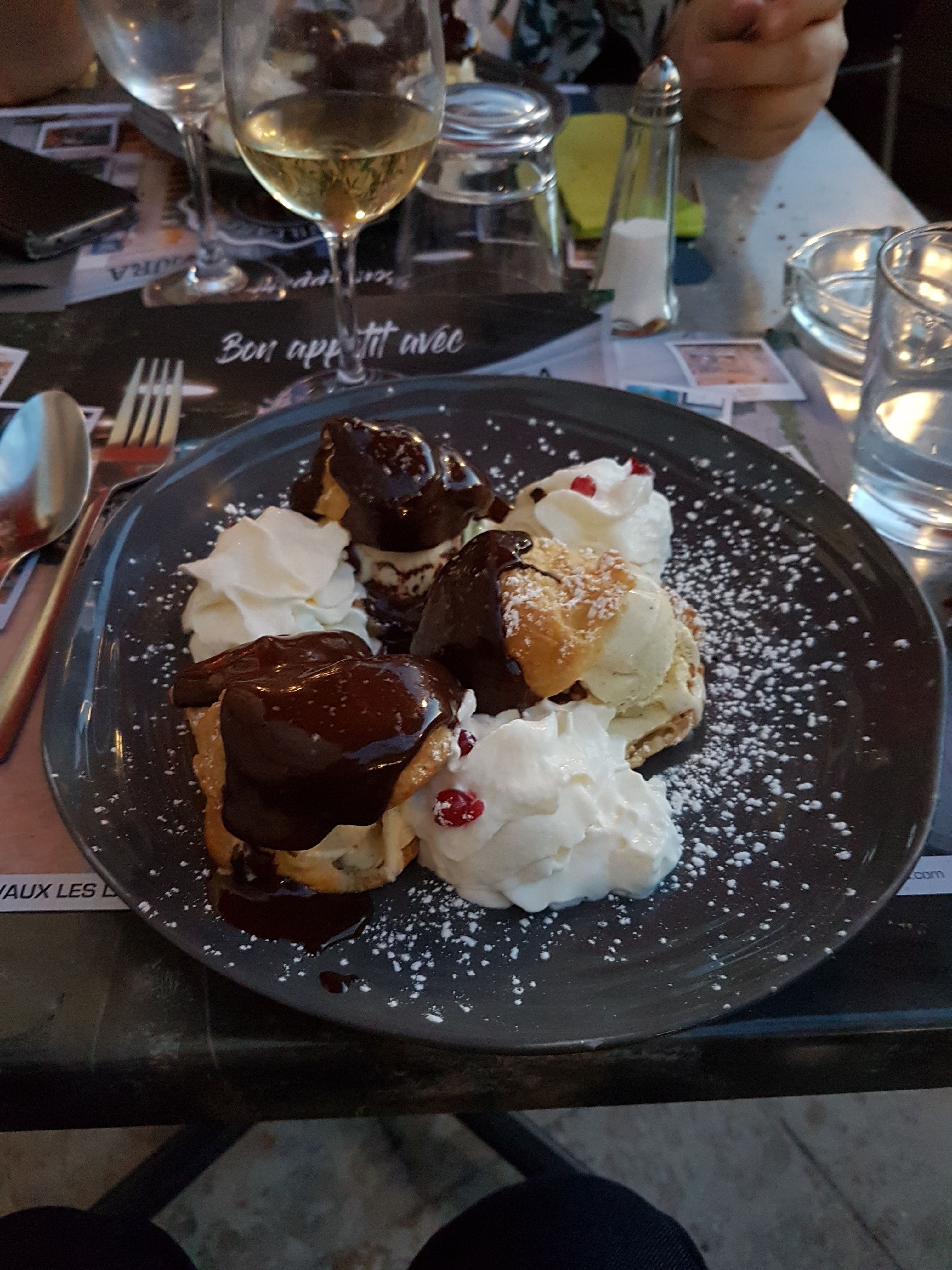 Envie de manger une glace ce dimanche ensoleillé. 1/4 d'heure d'attente puis encore 10 minutes pour avoir une cuillère donc la glace à moitié fondue et le chocolat ( bon d'ailleurs ) froid Pas de verre d'eau, pas de serviette. 7,90e pour 1 seul chou . Serveur gentil mais débordé....