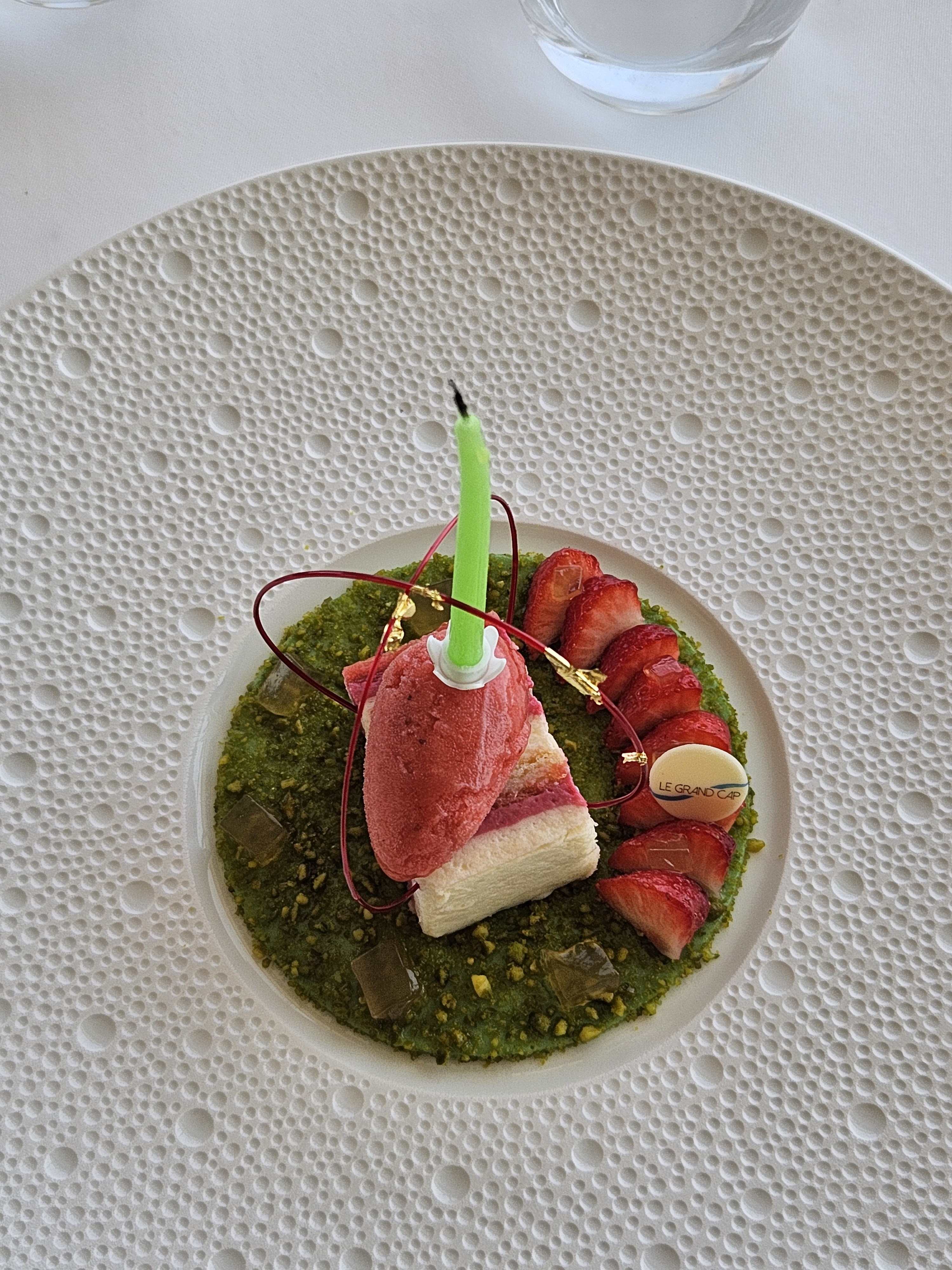 De la haute voltige ,visuellement et gustativement une expérience inoubliable, de plus c est servi dans une vaisselle très raffinée assortie à ce que l on mange . J ai expérimenté pas de restaurants gastronomiques mais incontestablement le Grand Cap remporte de loin la palme d or à tous niveaux !!!