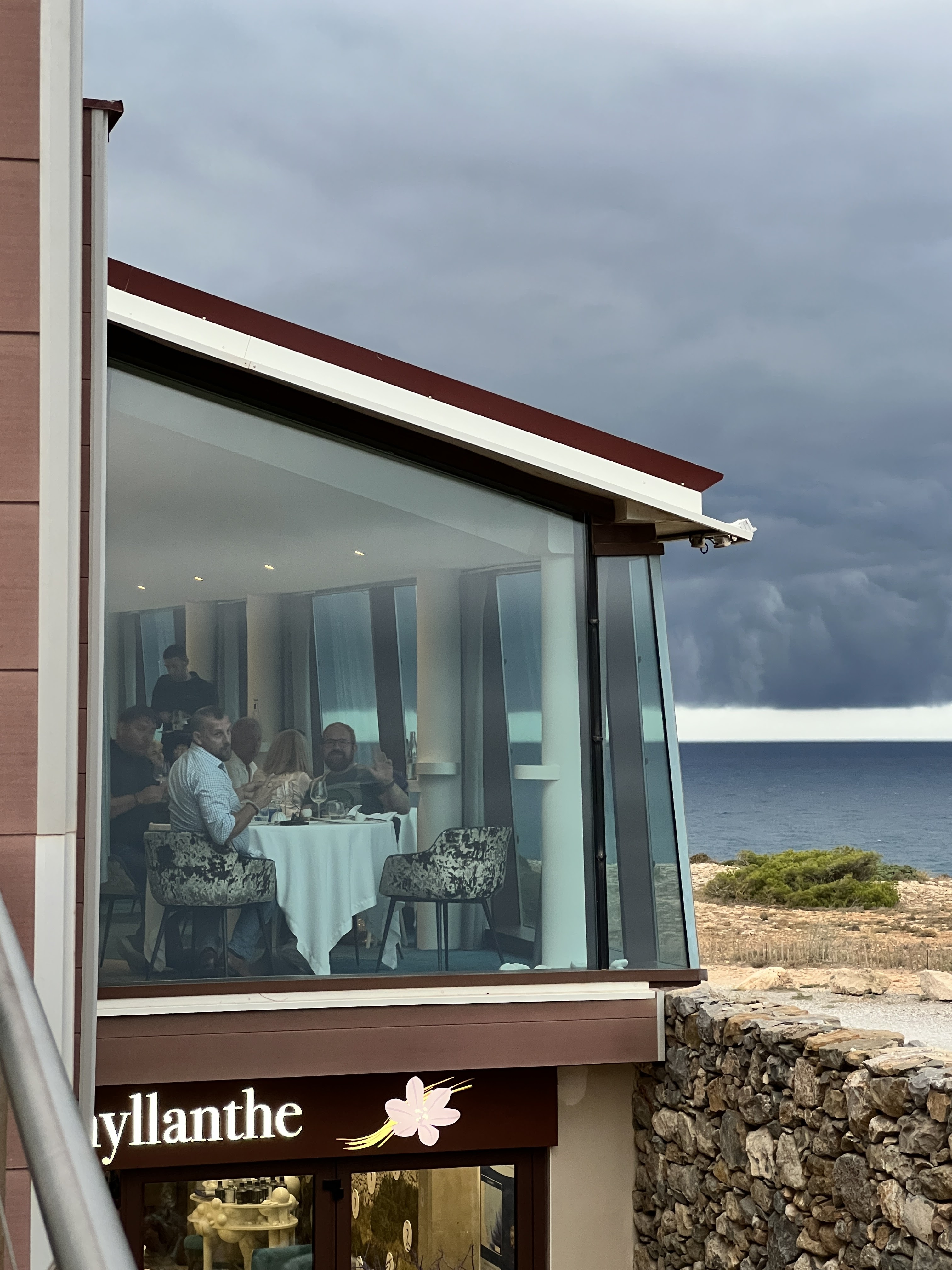 Arrivées très en retard en raison d un imprévu sur la route, nous avons été gentiment accueillies. Repas d excellence fin et raffiné, service attentionné ni rapide ni lent, que dire de la vue époustouflante et le bleu magnifique qui accompagnent votre repas. Un moment hors du temps qui mettra vos papilles en éveil.
