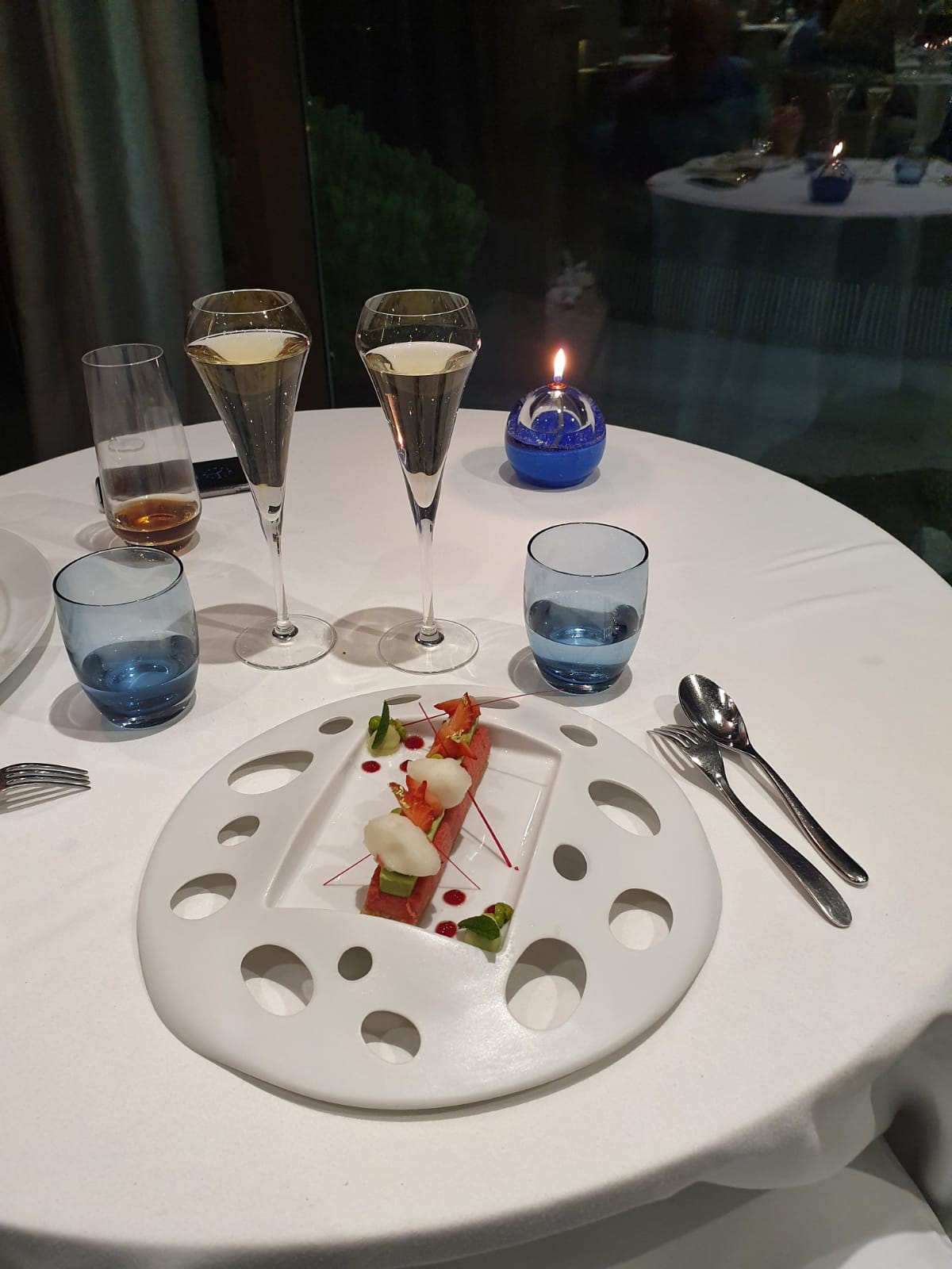 Le cadre est sublime. Il y a beaucoup de recherche et de techniques sur les mets proposés. Ceci dit, je n'ai pas adhéré l'assemblage foie gras/thon rouge mais cela n'engage que moi, néanmoins le plat était parfait. Le dessert était bon mais pas à la hauteur de mes attentes . Mais il y a tout de même un vrai travail établi si je peux le préciser alors bravo. À faire une fois je dirais bien-sûr. Belle découverte . Merci également pour le service attentionné mais qui manque de personnalité, trop classique, manque de relationnel à mon sens, car le temps est suffisant pour, mais qui vaut tout même un 5 étoiles.
