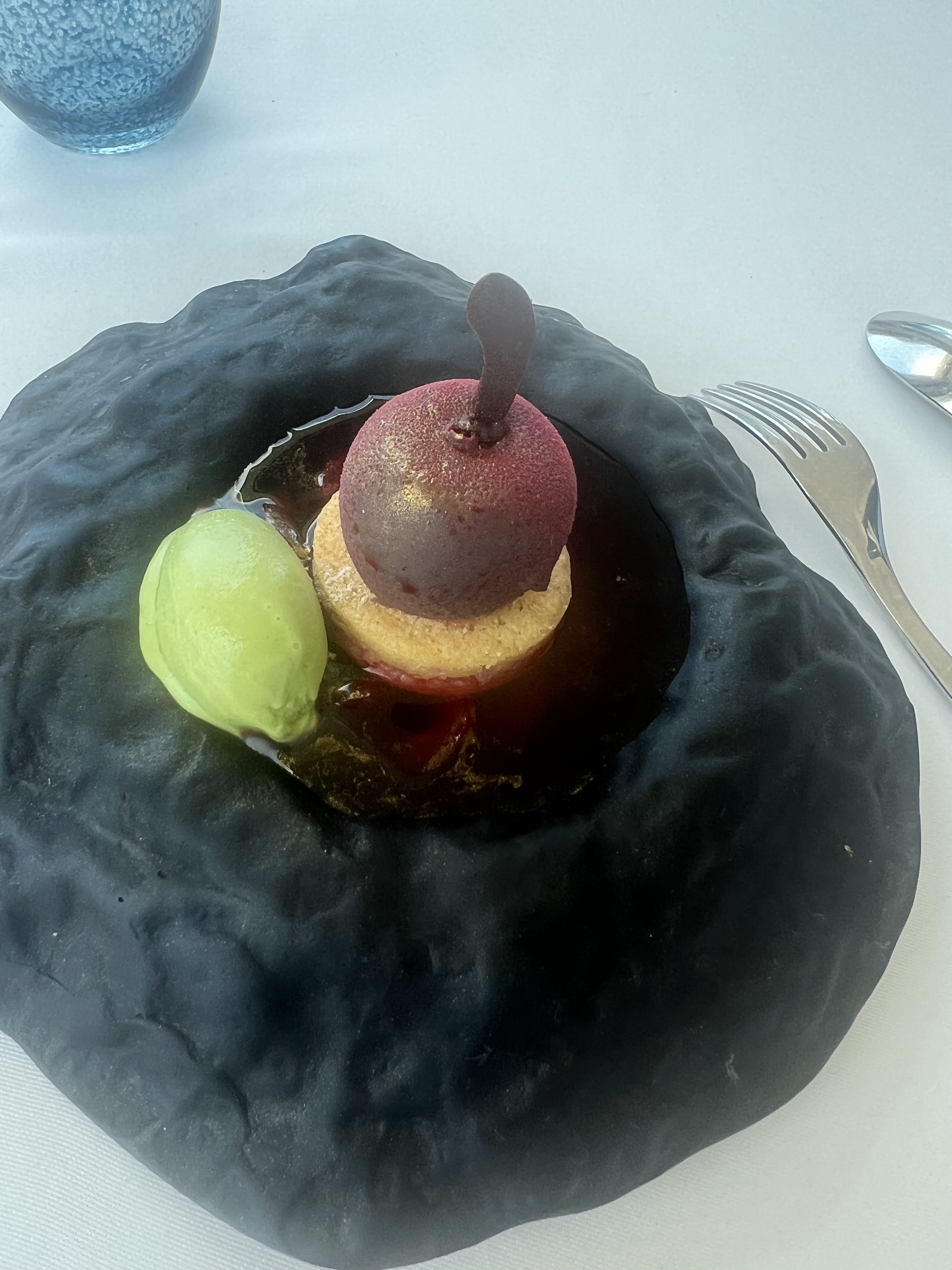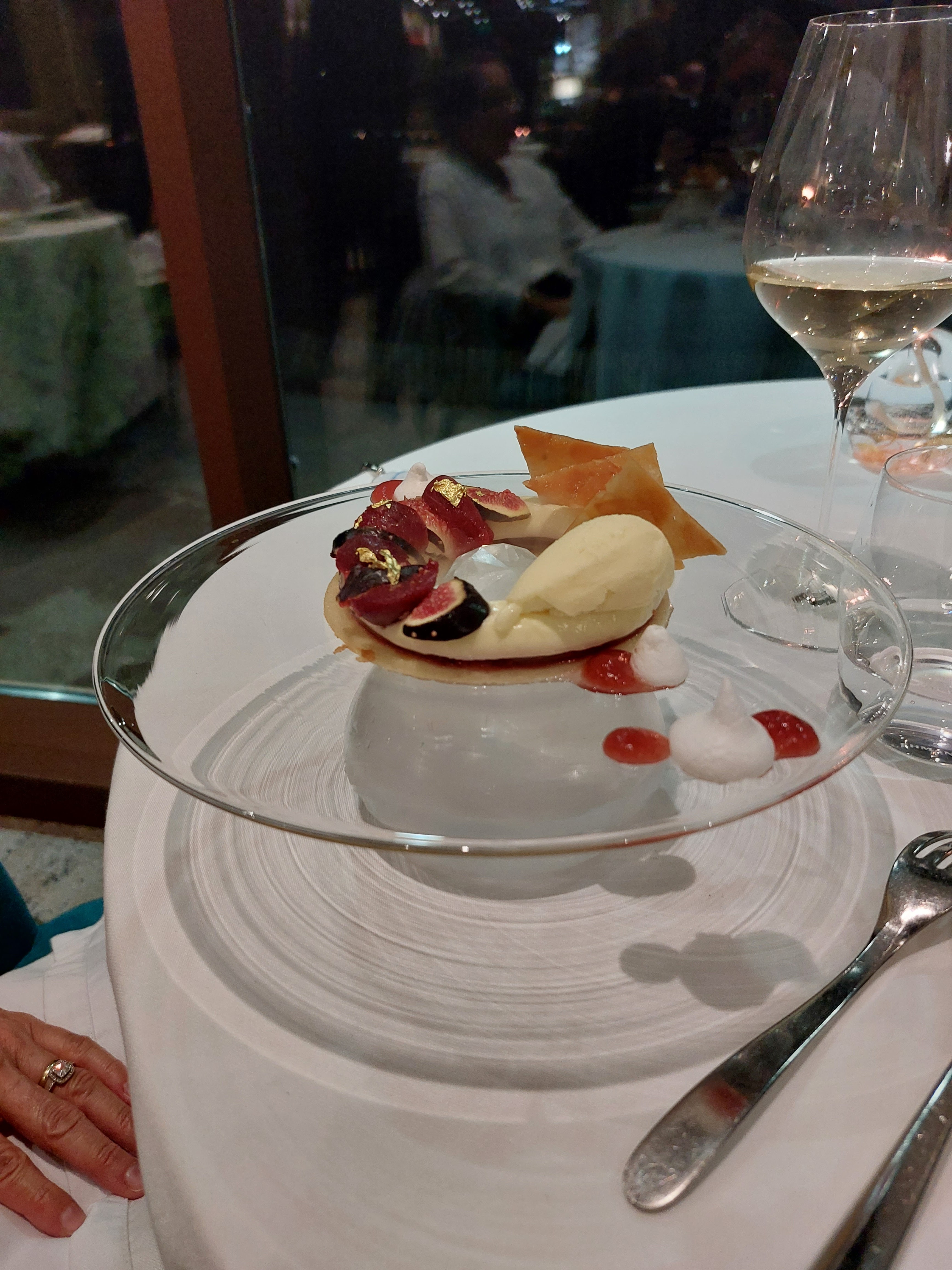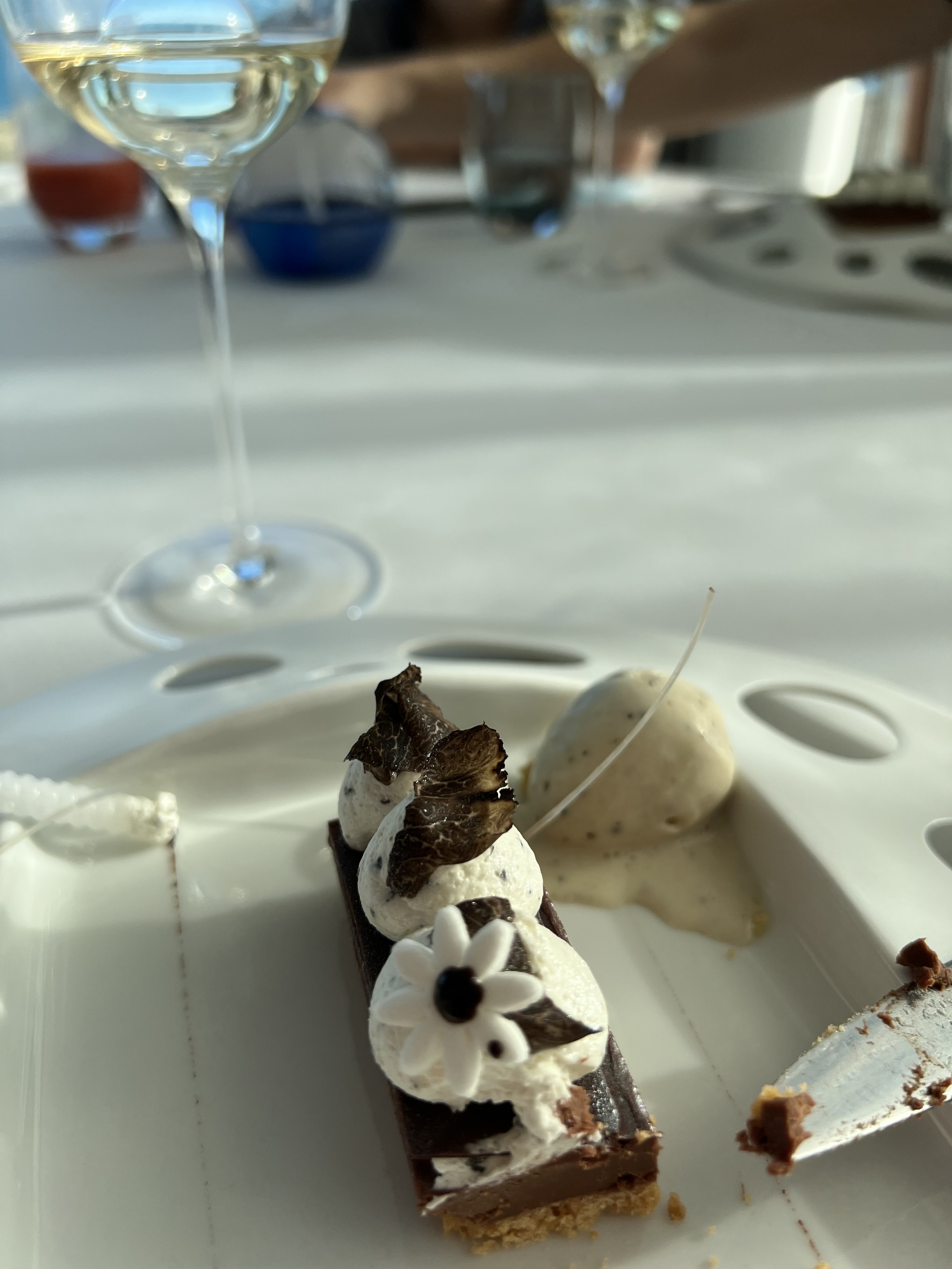 Un très bon moment La vue est superbe, les plats sont aussi beaux que bons, présentés dans une vaisselle magnifique (on mange aussi avec les yeux et la table est vraiment belle) le service est très bien également. Mention spéciale pour le chariot de mignardises j’ai adoré ! Aucune fausse note nous avons hâte d’y retourner