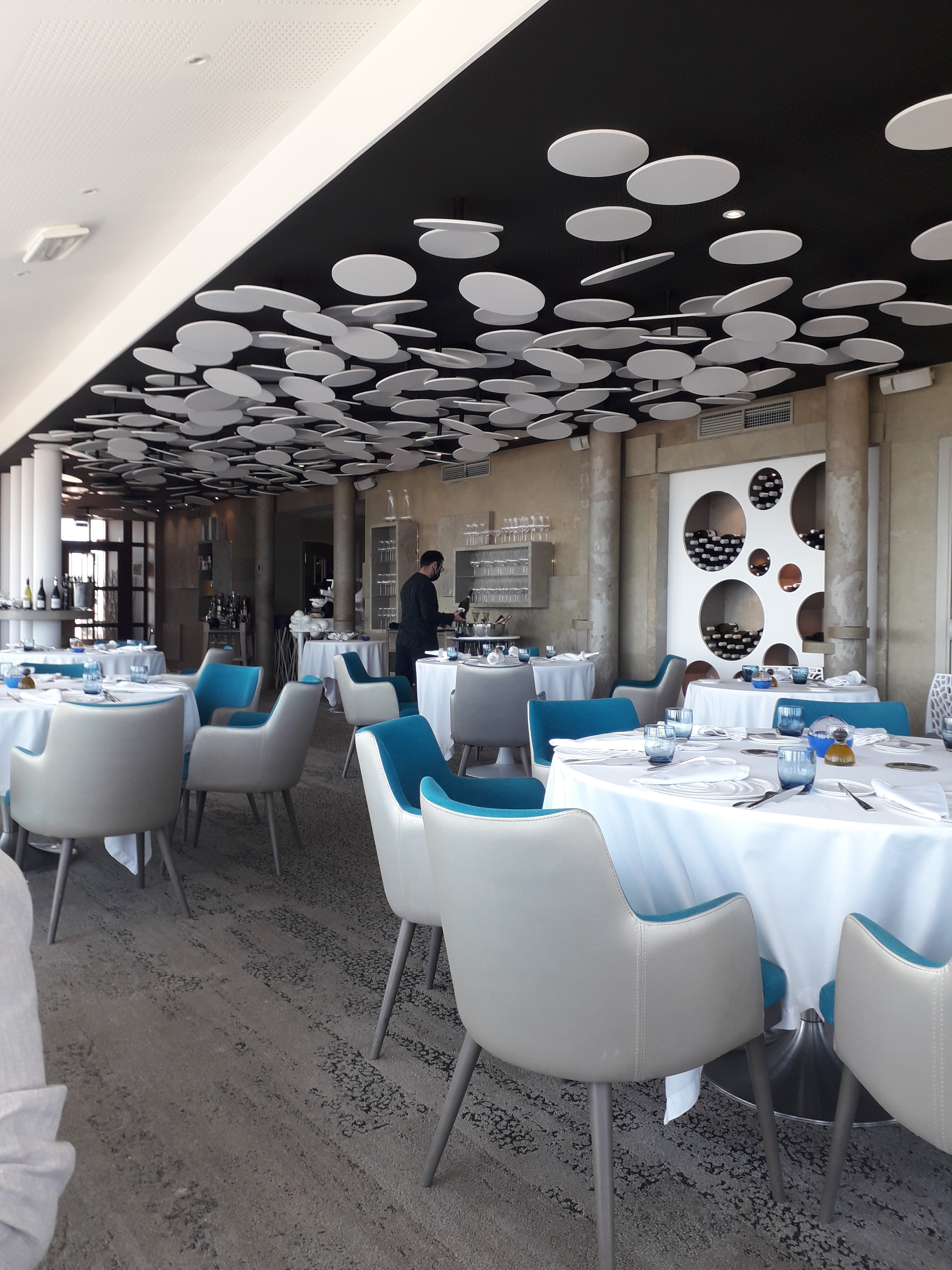 La Salle est très agréable tant sur le décor que sur l acoustique. Le Personnel de salle est très professionnel, souriant, sympathique. Mille et une surprise dans vos assiettes. Un délice. Que dire du panorama. Un 180 degrés sur le golf du Lion. Merci au Staff du Cap Leucate. Magnifique découverte à l occasion de notre 9ème anniversaire de Mariage. Sebastien et Anne.