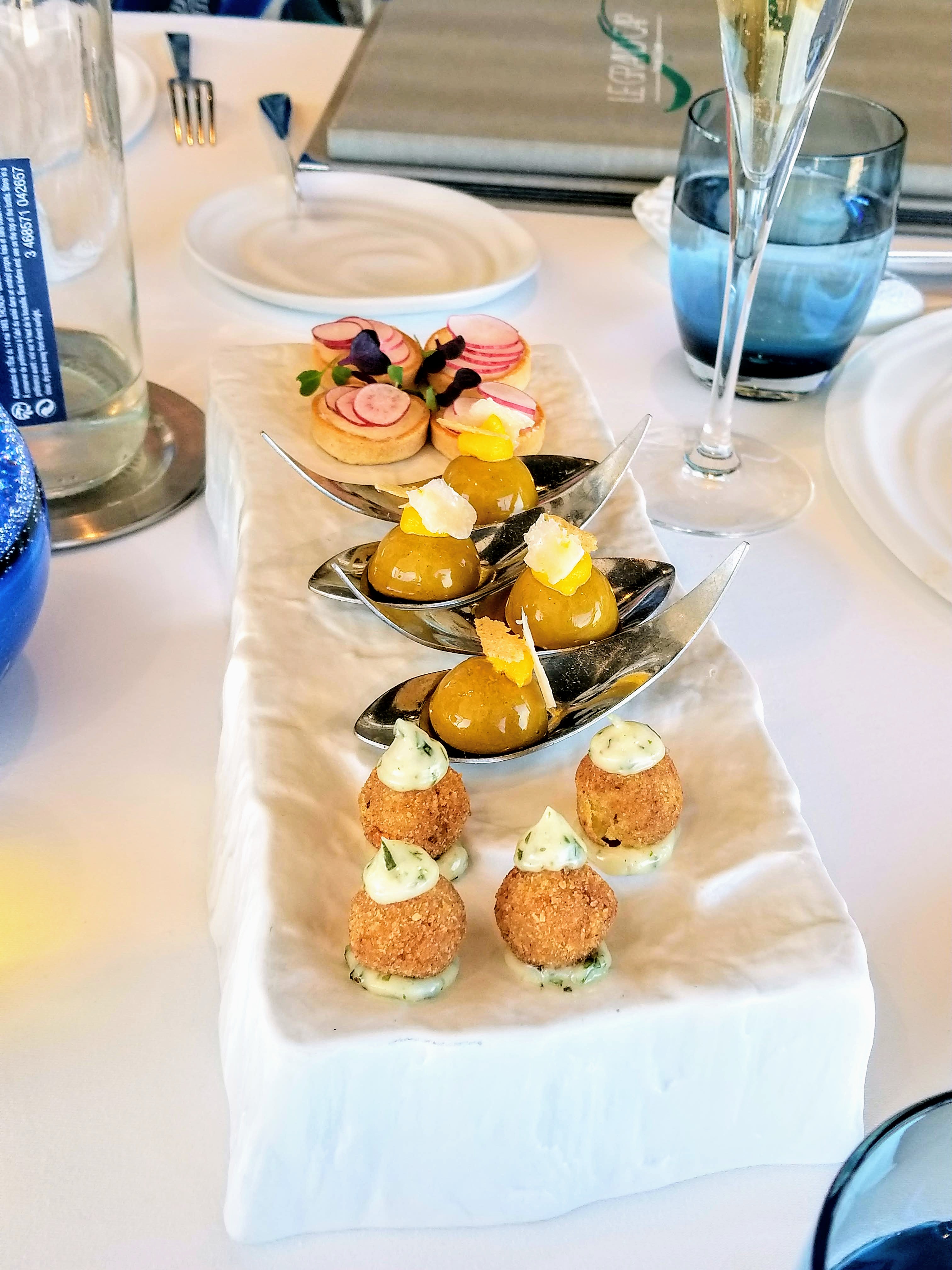 Moment magique de l'arrivée au départ. On se laisse porter par le personnel et les plats. J'adore la petite vitrine avec les sucreries.