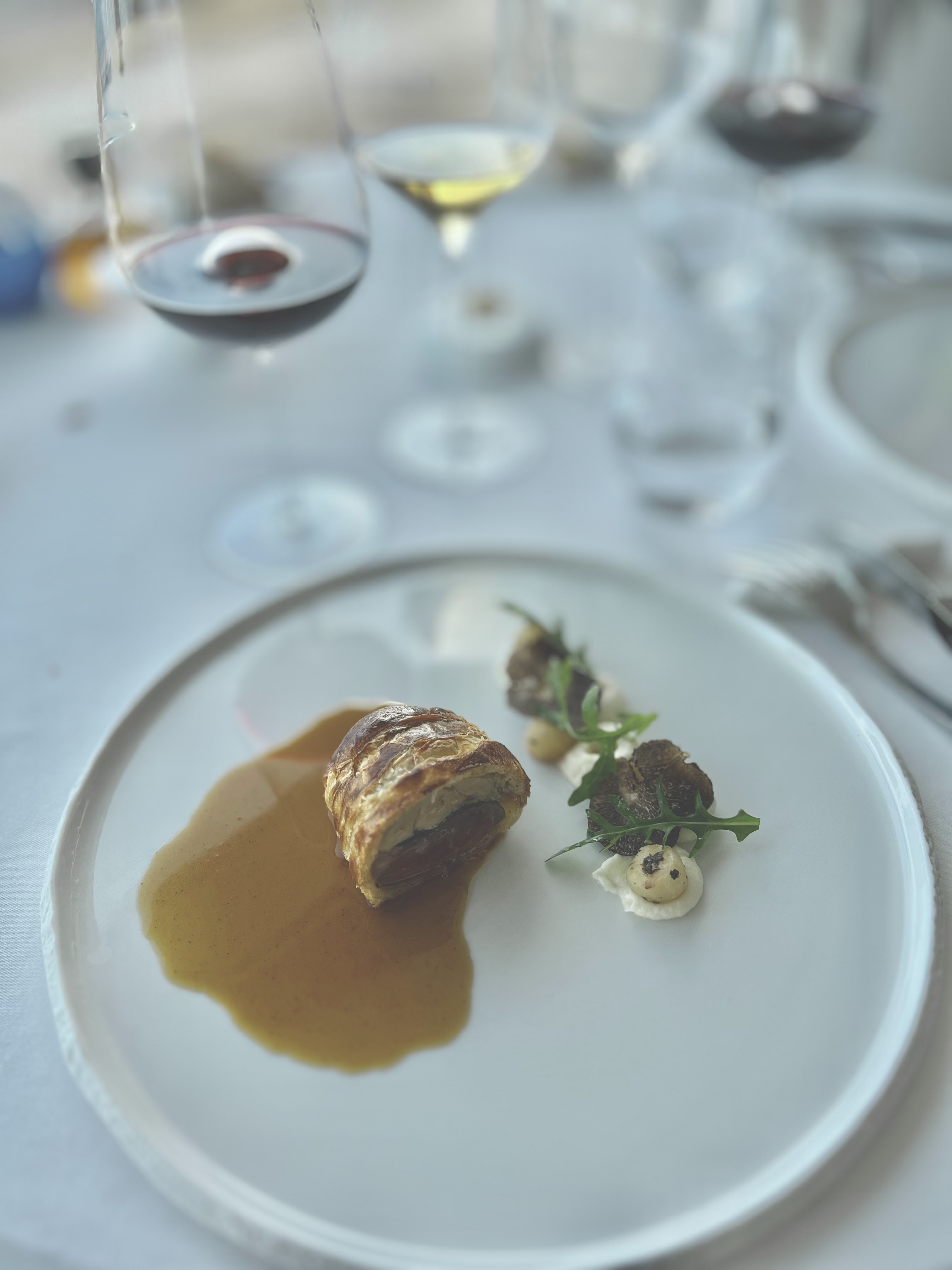 Nous nous sommes régalés du début à la fin, bien que j'ai calé sur le chariot de friandises... Tout est bon, fin et beau. Rien que la vaisselle nous donne déjà l'eau à la bouche. Le service impeccable et souriant. La vue est superbe.