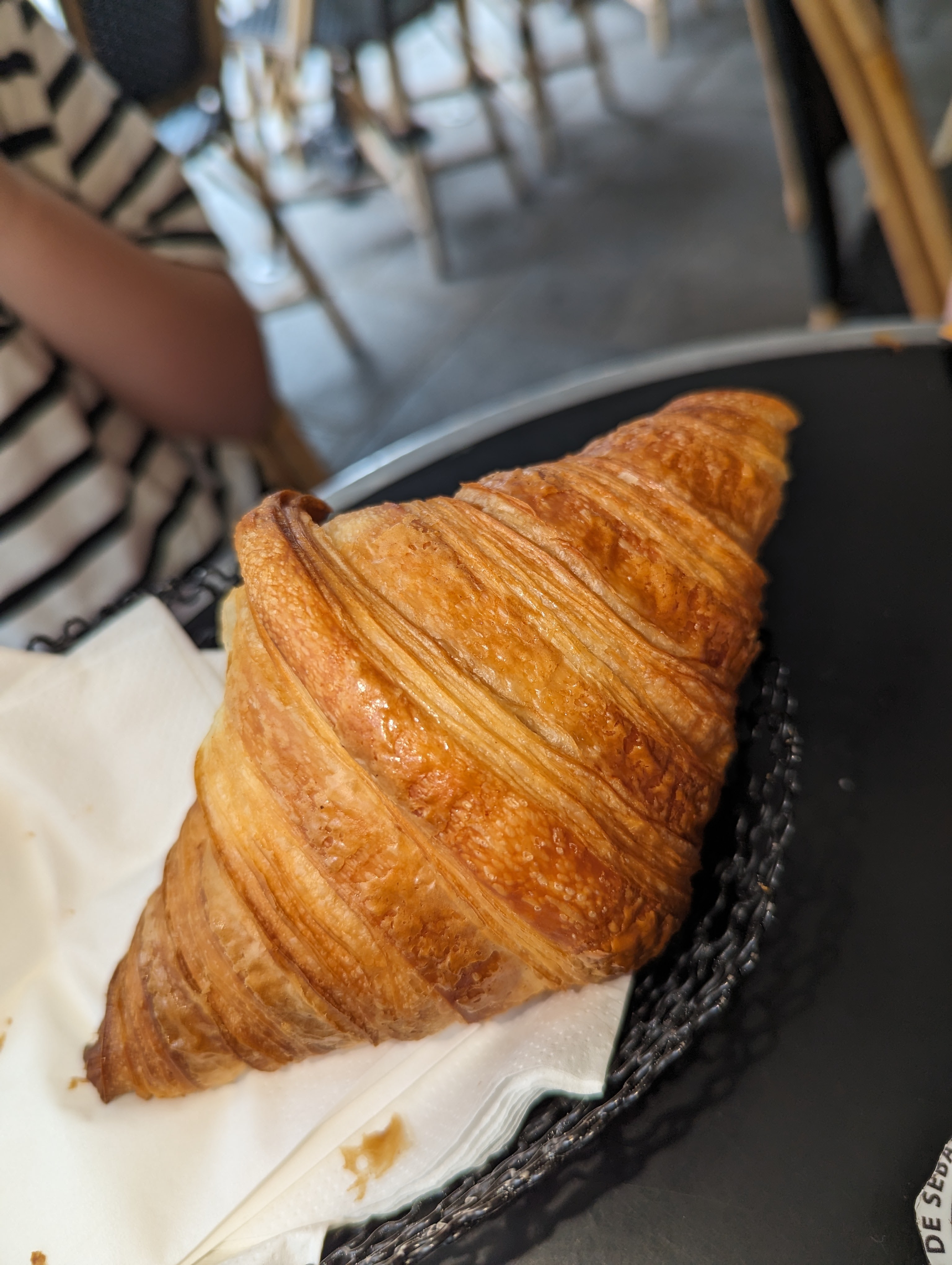 Je suis venu ici pour le petit-déjeuner et c'était un excellent rapport qualité-prix et délicieux. Le service était correct ! Nous avons commandé la formule, qui comprenait un croissant, du pain, du jus d'orange frais, une boisson chaude (mon fils a commandé un café crème), du bacon et des œufs, des fruits et du yaourt avec du granola. Mon fils a commandé le pain perdu (pain perdu) qui était super doux, savoureux et délicieux ! Le bacon était super parfumé et nous l’avons tellement aimé que nous avons décidé d’en commander également une taille réelle ! Une autre chose remarquable était le beurre pour le pain ! Si mignon et si parfumé et délicieux. Je recommande vivement cet endroit pour un petit-déjeuner ou un brunch abordable !