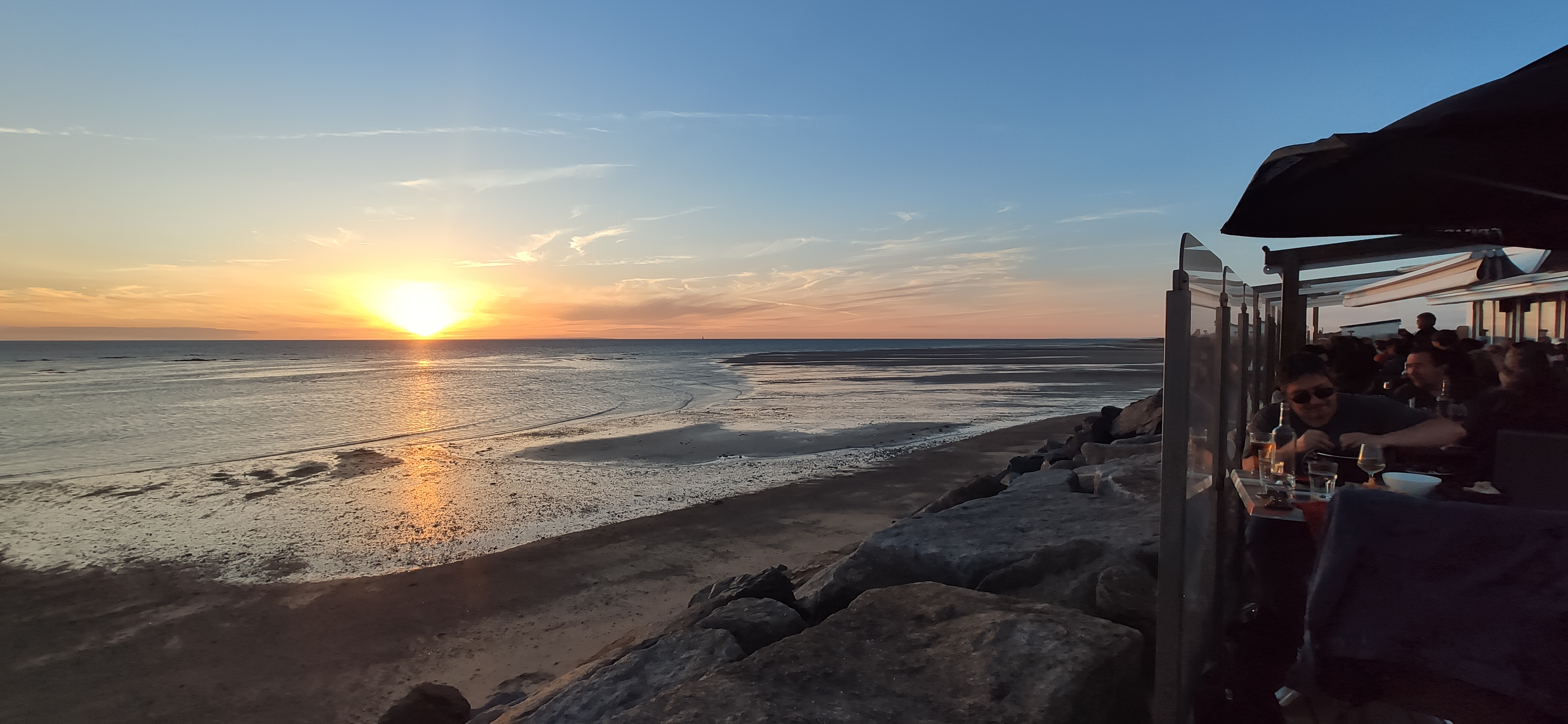 Toujours aussi bon, l'accueil a été très professionnel et je n'ai pas eu à attendre entre les plats. La musique fut en fond et le ciel bleu, ce qui est un plus avec cette belle vue directement sur la mer, puis un coucher de soleil agréable avec une vue sur la marée bien haute. J'ai très bien dîné de bons fruits de mer bien frais avec de bons verres de vins de Bordeaux.