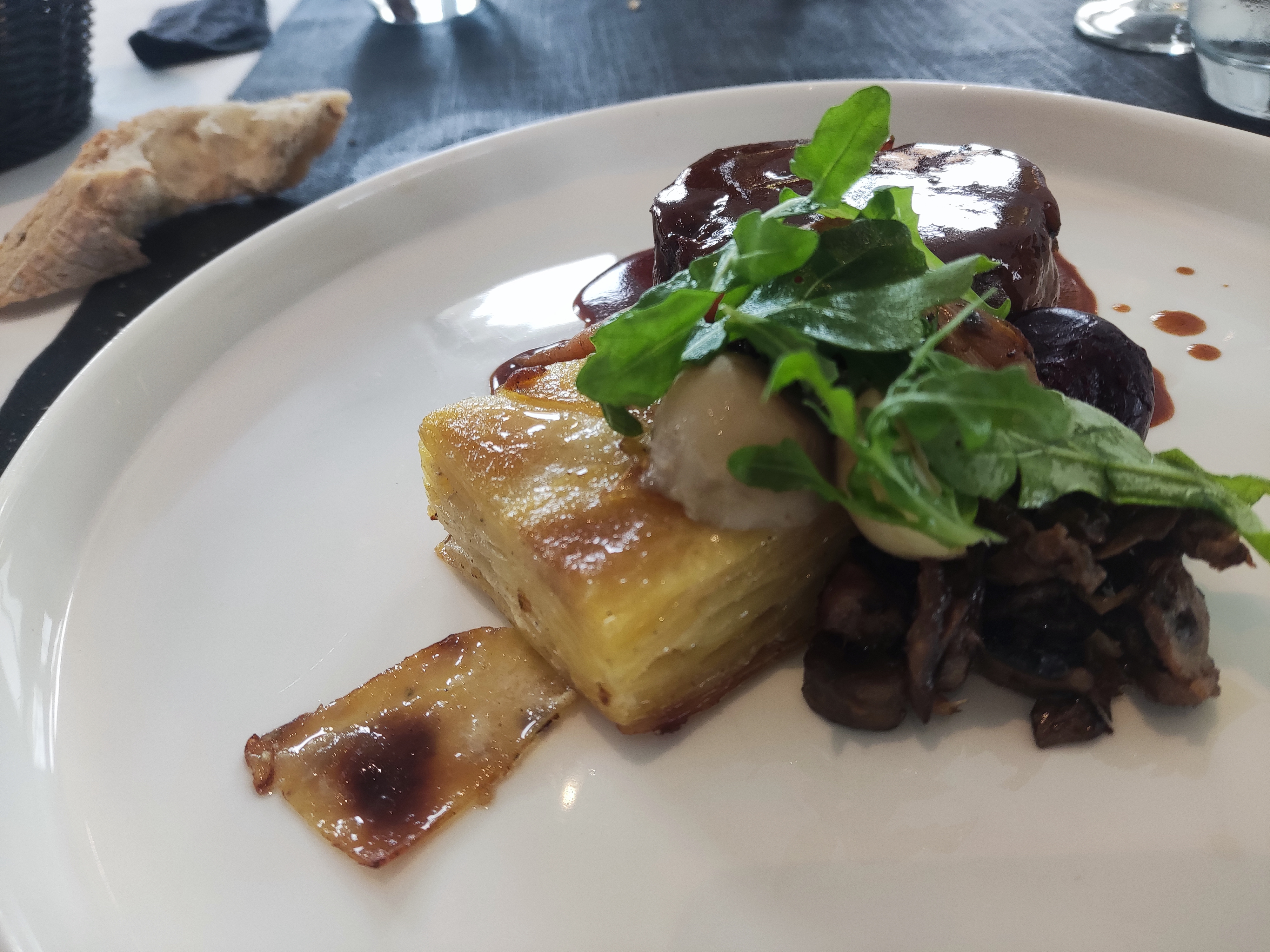 Des mets bien présentés, une entrée moyenne(bûchette de saumon faisselle et céleri rémoulade, cleri un peu fort et aneth trop présente), un plat correct ( épaule d'agneau et gratin dauphinois, la viande très bonne et cuisson parfaite, le jus d'agneau trop salé et le gratin dauphinois trop poivré), le dessert trop peu sucré ( tartelette aux fraises), et le dessert, c'est celui qui donne la note finale au repas en laissant une bonne impression générale même quand le reste n'a pas été à la hauteur, or là, dans notre société de régime ou tout devient allégé, le manque de sucre se fait cruellement ressentir sur la fin...le service quand à lui est irréprochable