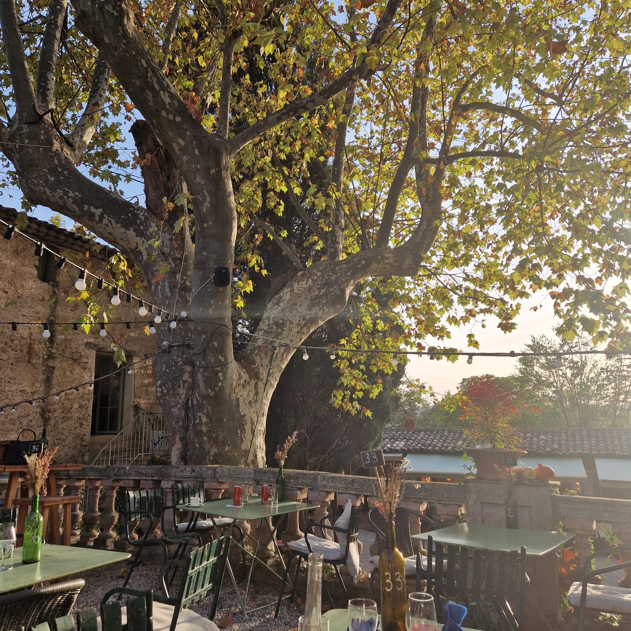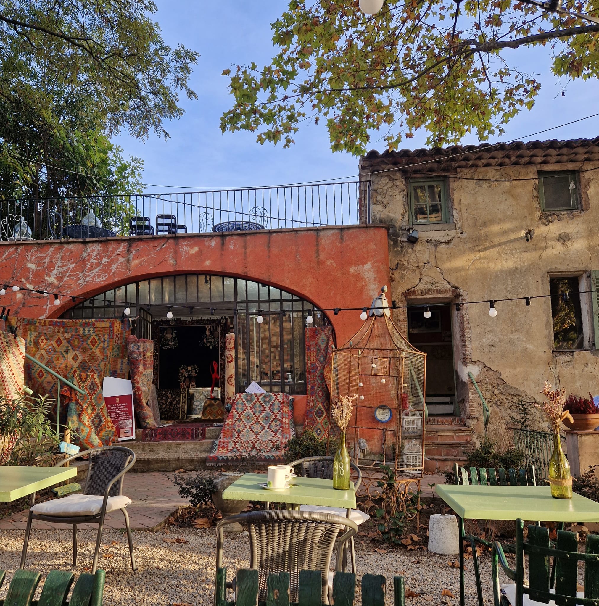 Lieu atypique, enchanteur, bucolique Restaurant très agréable sous les platanes, animation antiquaires et décoration très sympathique. A DÉCOUVRIR