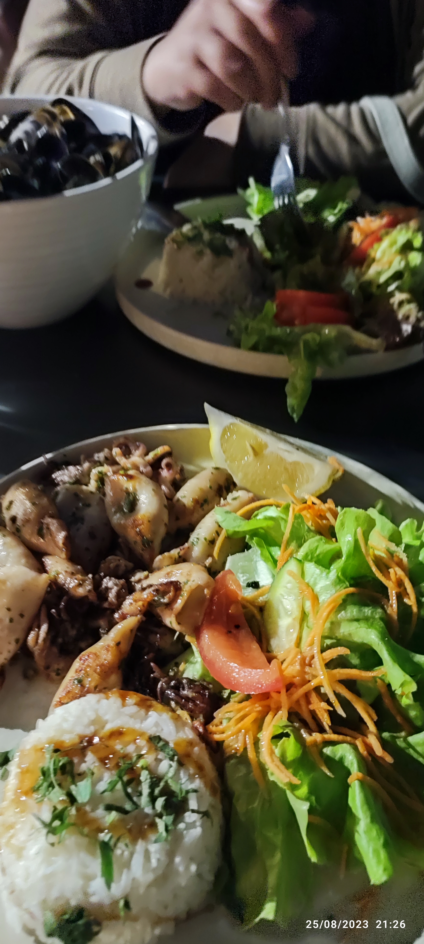 Dernier repas fin de vacances.... Des chipirons à la plancha : un vrai régal ! Une équipe au top, dynamique et souriante ! A la prochaine 🏖🌅 Excellent rapport qualité prix