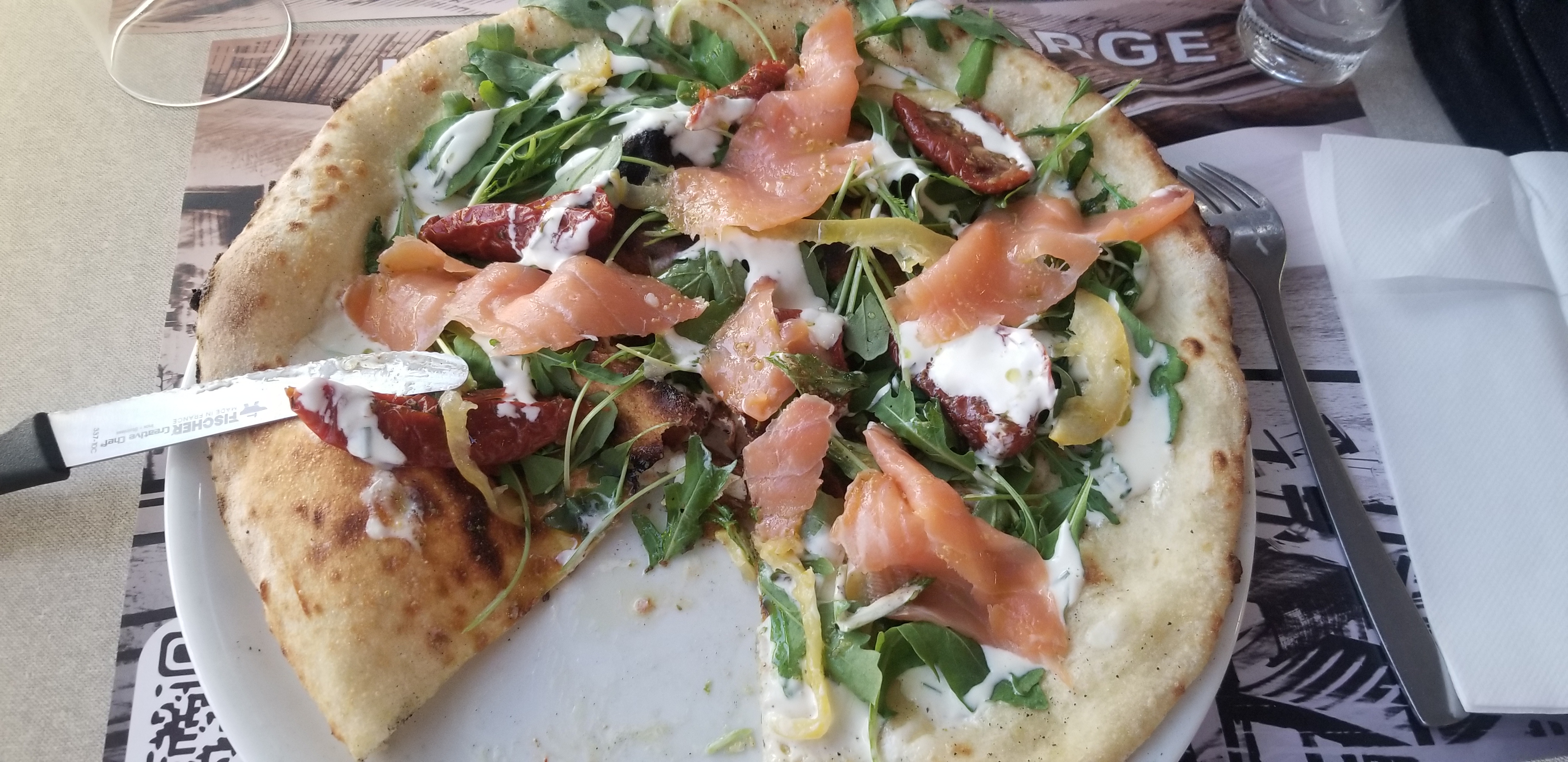 La vue est superbe, le personnel est très bien, attentionné sans être trop présent et je ne parlerais que des pizzas, elles sont excellentes , le tout avec un prix normal donc au final très bien