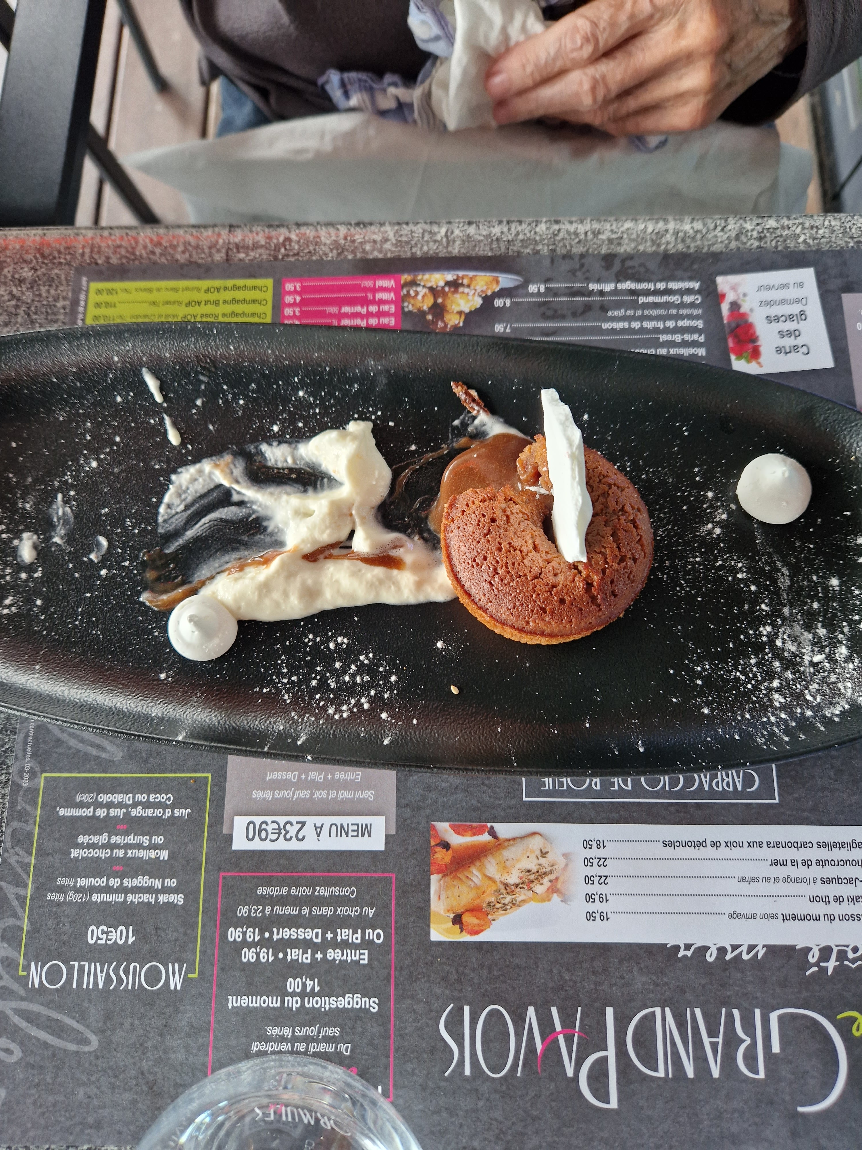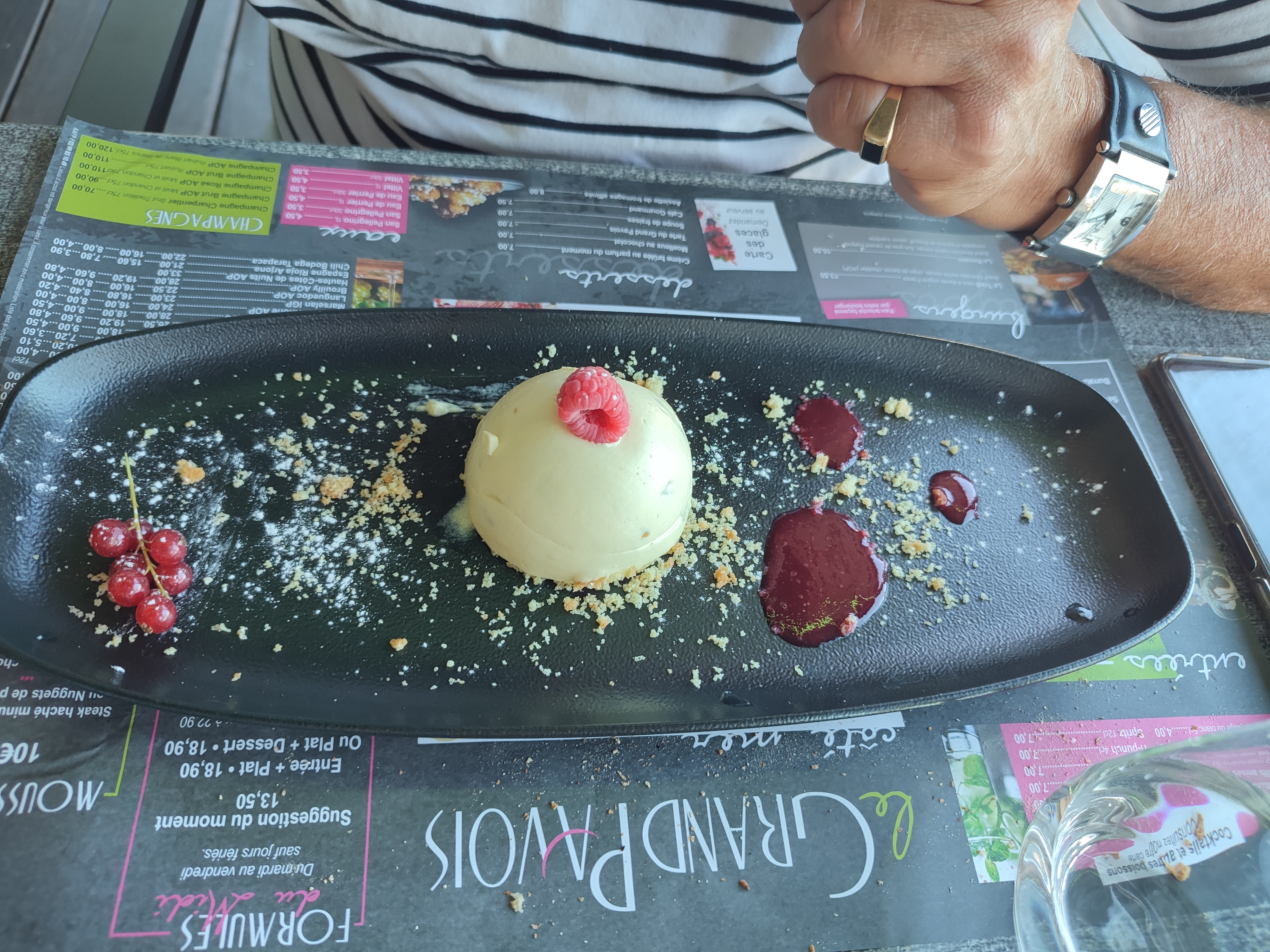 Repas du midi très bon que ce soit ce que l on mange ou le service tout était parfait et en plus il faisait très beau...
