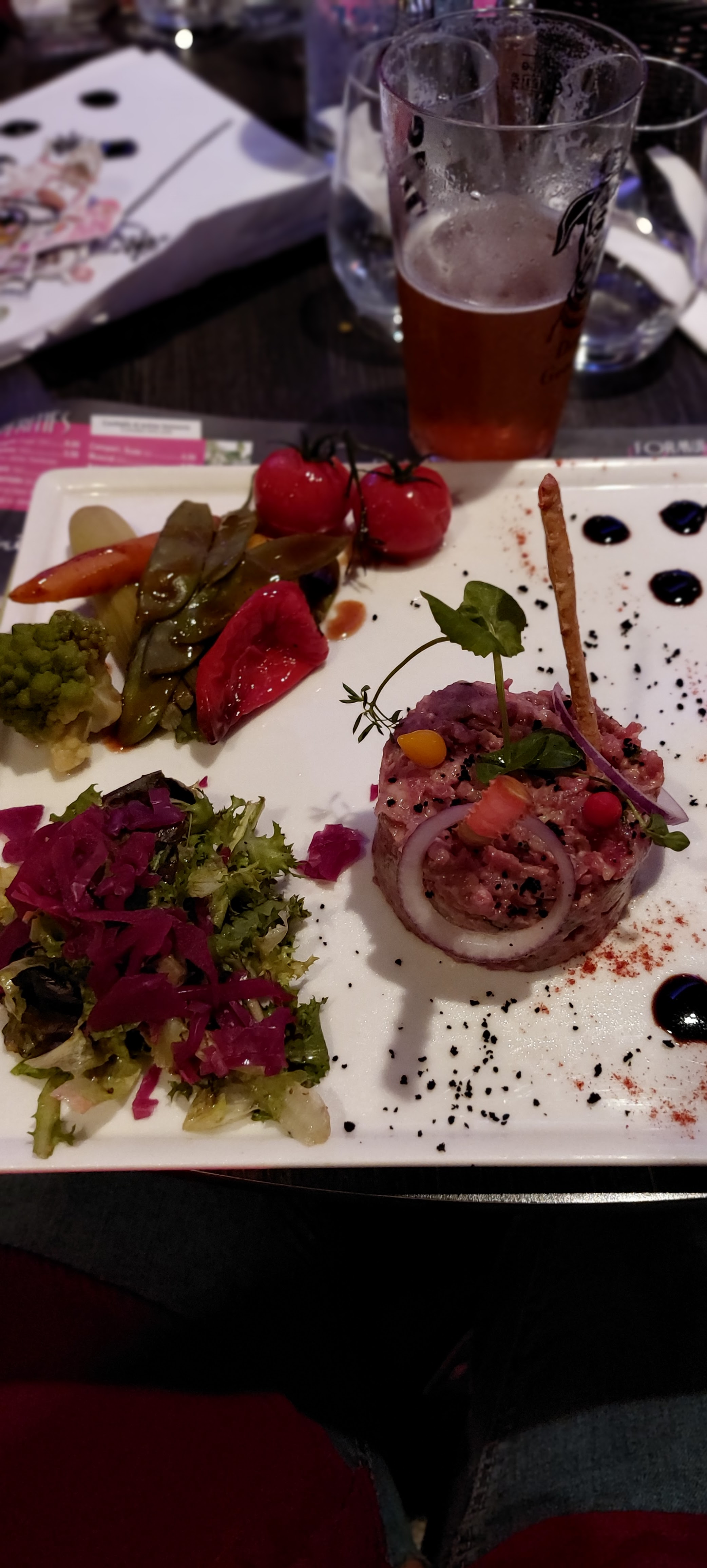 Très bon resto !! Attention, le menu n'est valable que jusqu'à 20h30, la bonne surprise c'est que même arrivés un peu à la bourre (vers 20h40) la serveuse nous à laissé le prendre. Les plats sont copieux, excellents, et bien présentés (tartare et pièce du boucher). L'ambiance est très sympa, dans un style un peu bar d'ambiance. À essayer de toute urgence !!