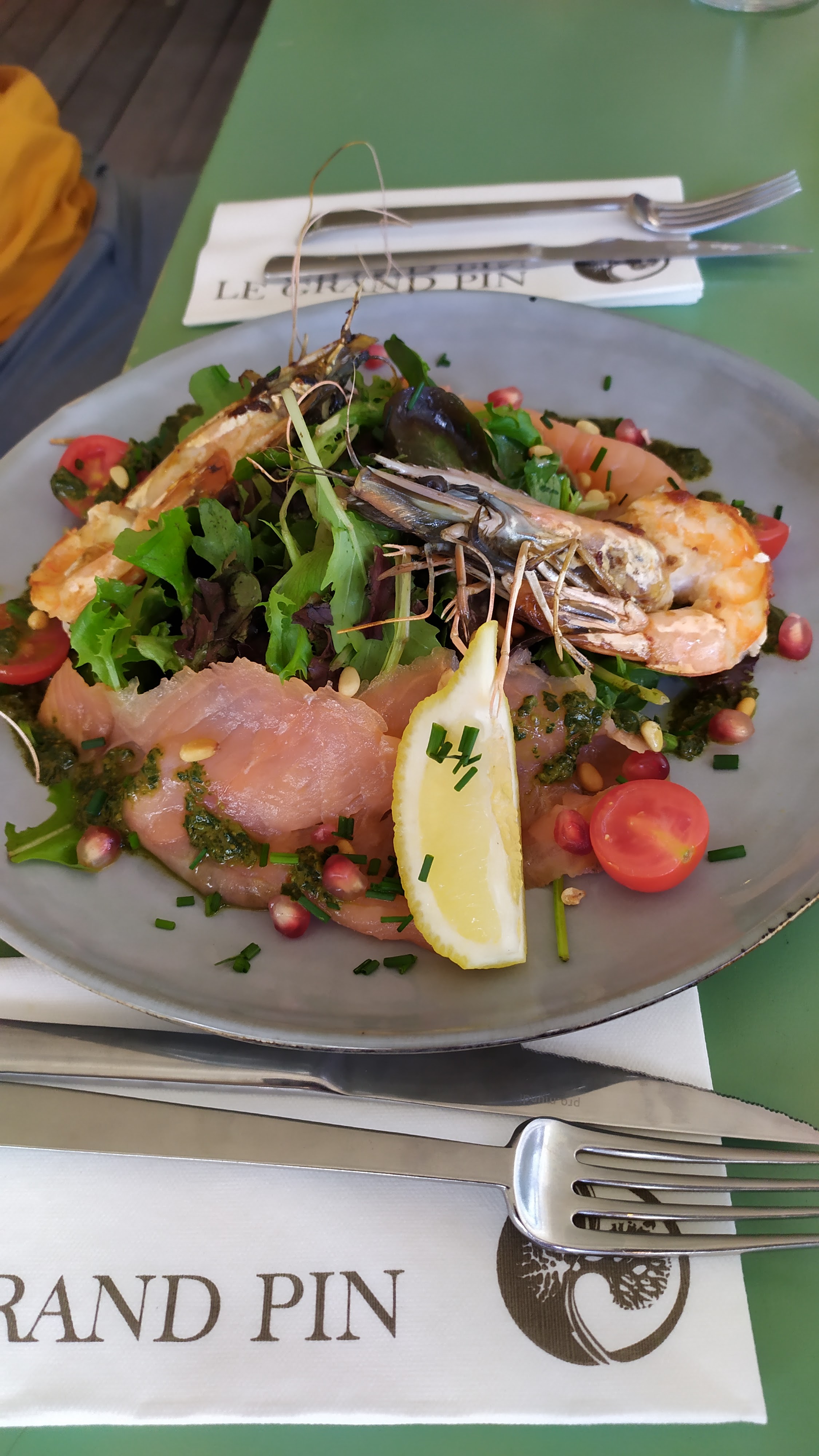 Le Grand Pin est un restaurant situé au bord de l'eau avec une vue magnifique. Vous y trouverez aussi bien du poisson que de la viande. Les plats sont copieux et très bien réalisés. Tout est préparé minute, nous avons demandé de modifier un plats et cela a été fait sans problème. Nous avons été très bien accueilli, le personnel est fort sympathique et professionnel.